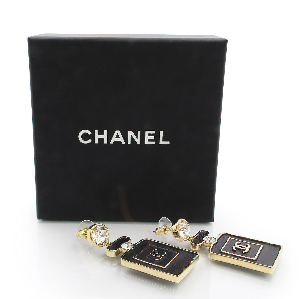 【新品・未使用品】シャネル CHANEL ラインストーン ココマーク パフューム 香水モチーフ スイング ピアス ブラック ゴールド ABA756 箱付