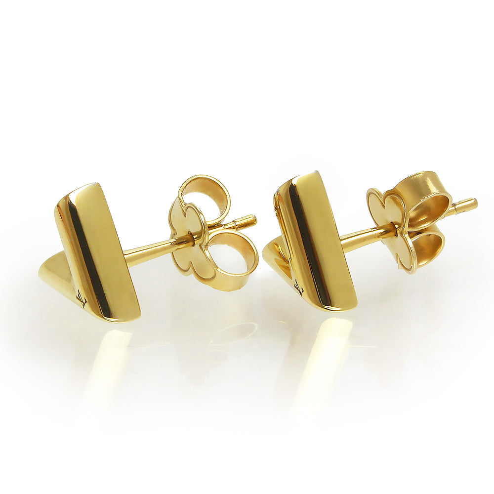 光沢感のあるゴールドカラーでタイムレスな「ピアス エセンシャル V」。ルイ・ヴィトンの幾何学的な「V」モチーフとLVの刻印を組み合わされた、多彩なコーディネートで活躍する洗練されたアイテムです。