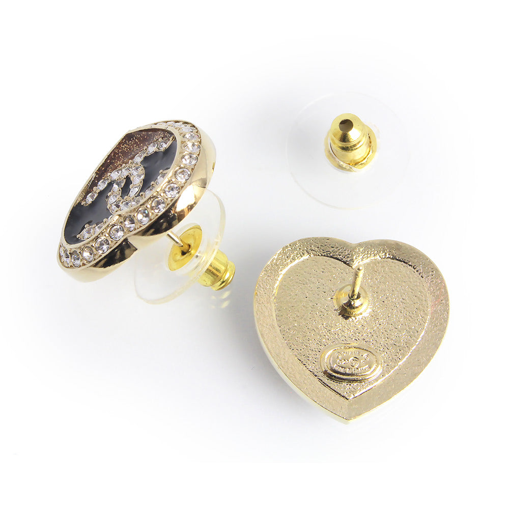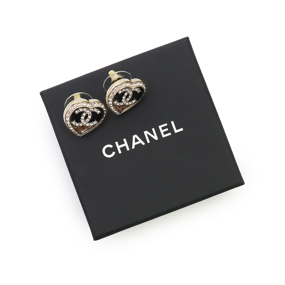 【新品・未使用品】シャネル CHANEL ハート ココマーク ラインストーン ピアス ゴールド ブラック ABB664 箱付