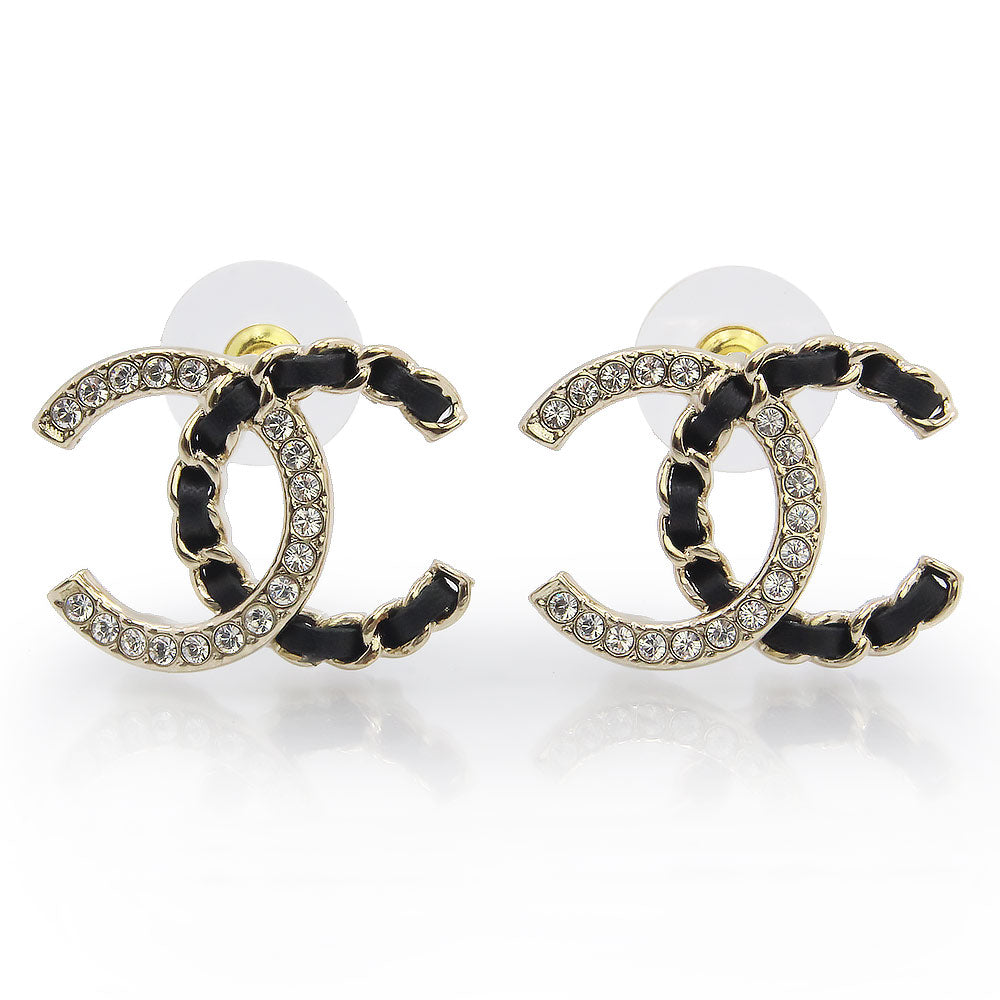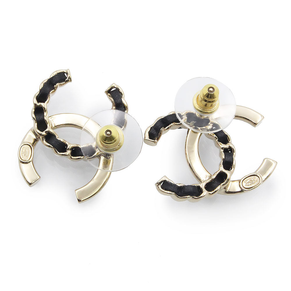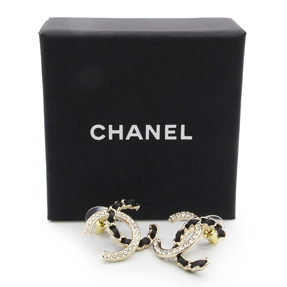 【新品・未使用品】シャネル CHANEL ココマーク チェーン ラインストーン ピアス メタル カーフスキン レザー ゴールド ブラック ABG274 箱付