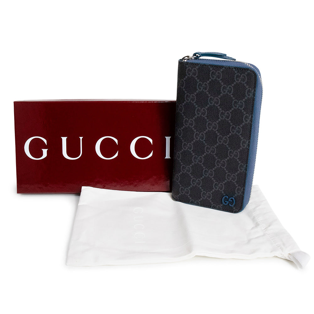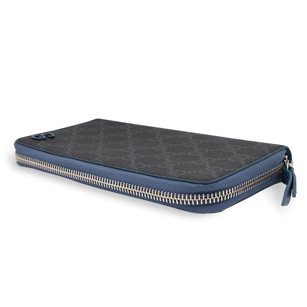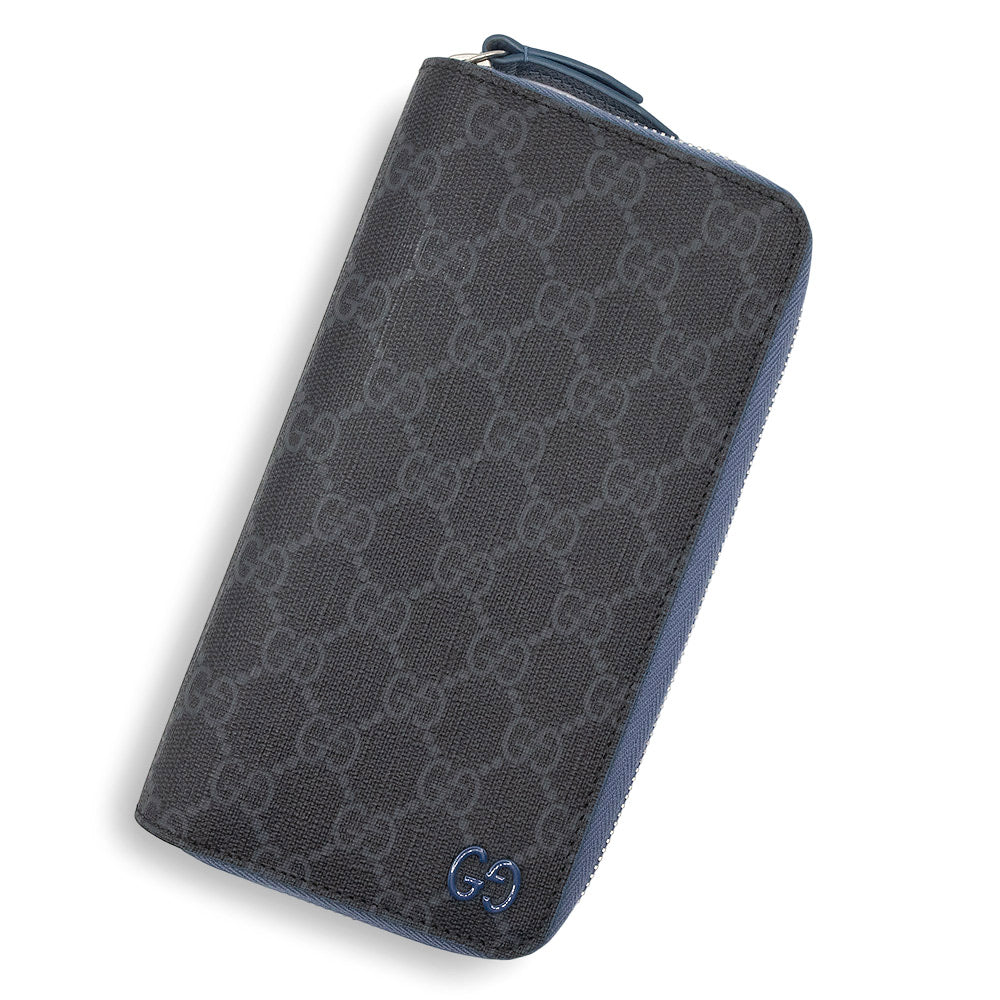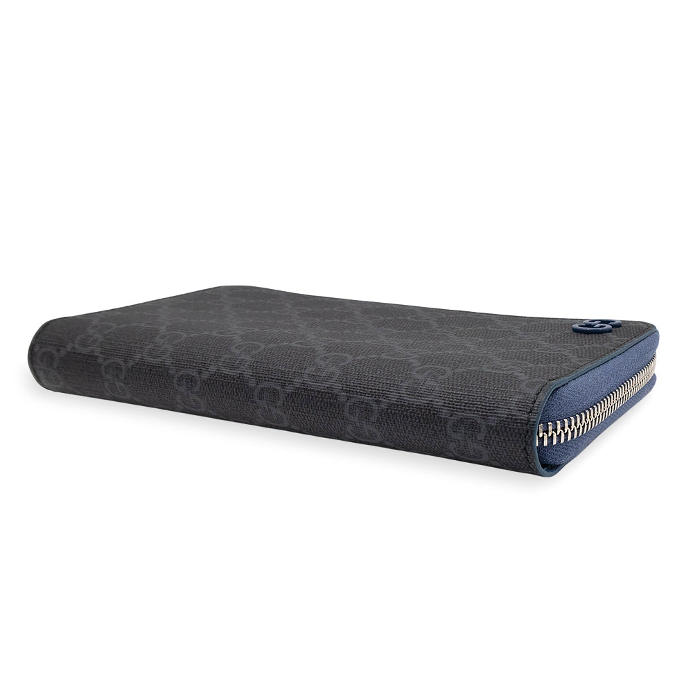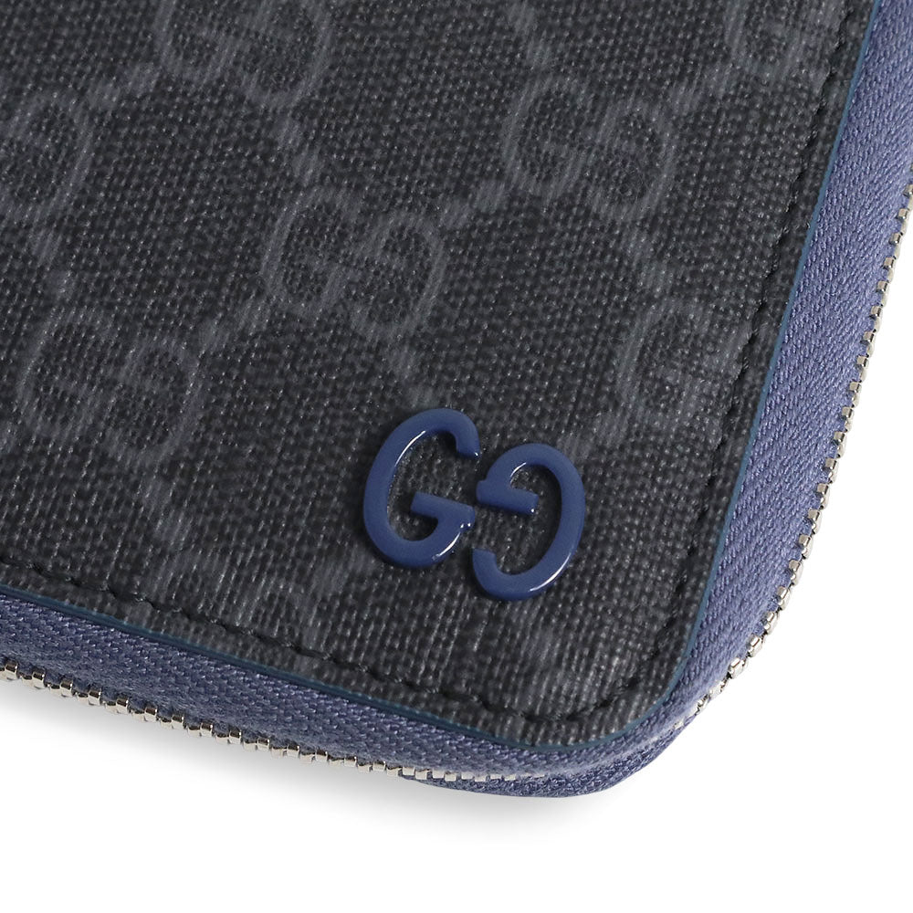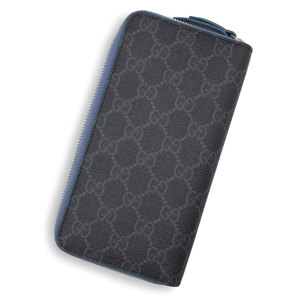 【未使用 展示品】グッチ GUCCI ジップアラウンドウォレット 長財布 GGスプリームキャンバス レザー バイカラー ブラック ブルー シルバー金具 822051