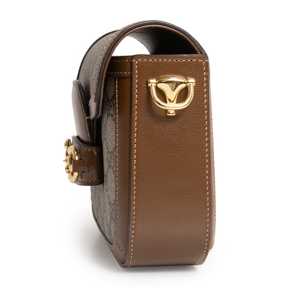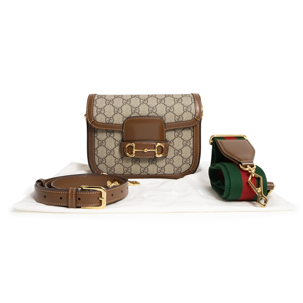 2種類のショルダーストラップによって表情をアレンジできる、GGスプリームキャンバスの『グッチ ホースビット 1955』ミニバッグ。レザーのトリムと同色のレザーストラップとウェブ ストライプのストラップが付いており、気分によって付け替えて楽しめます。 |
