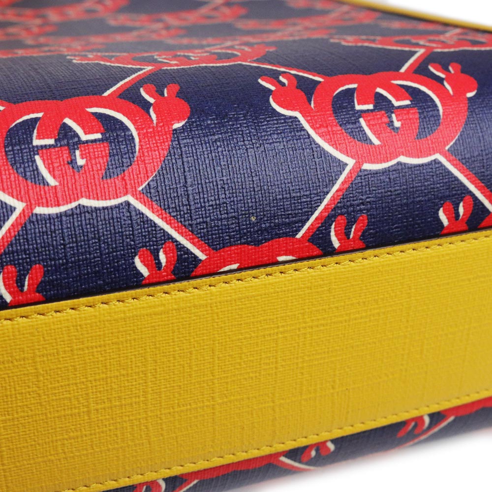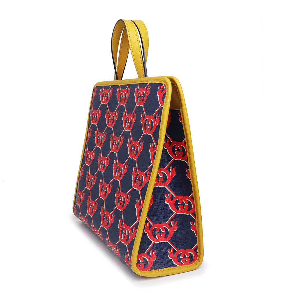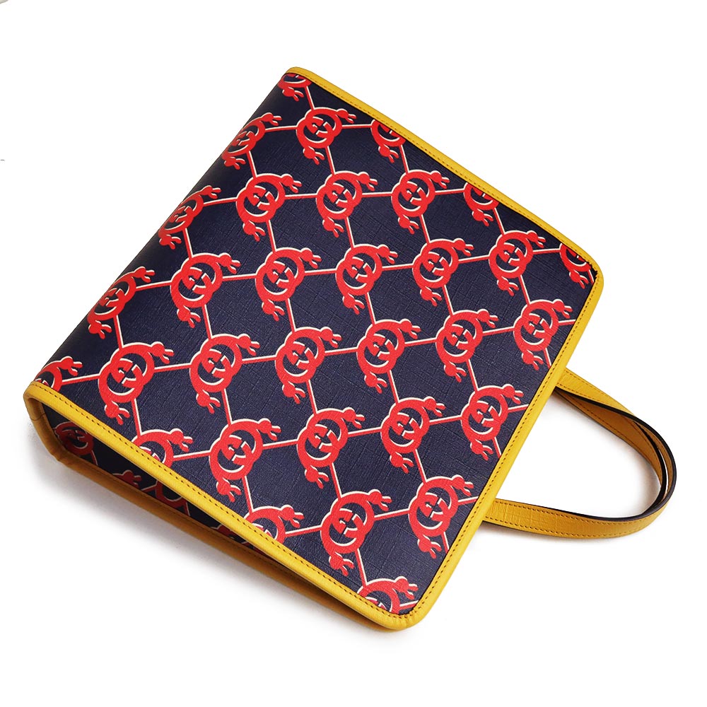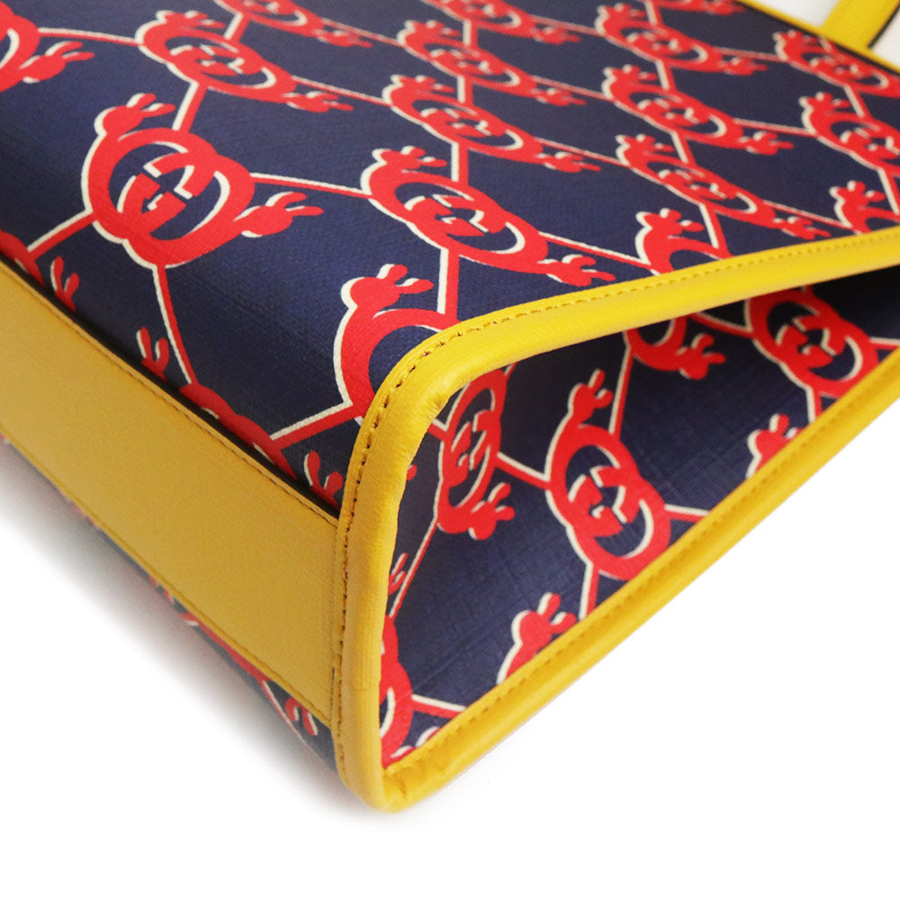 【未使用 展示品】グッチ GUCCI チルドレンズ インターロッキングG スネイル ハンドバッグ カタツムリ GGスプリームキャンバス レザー ネイビー レッド イエロー シルバー金具 605614