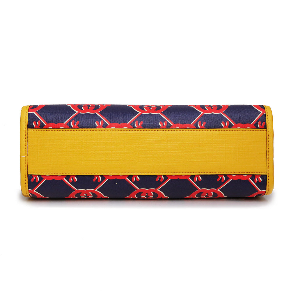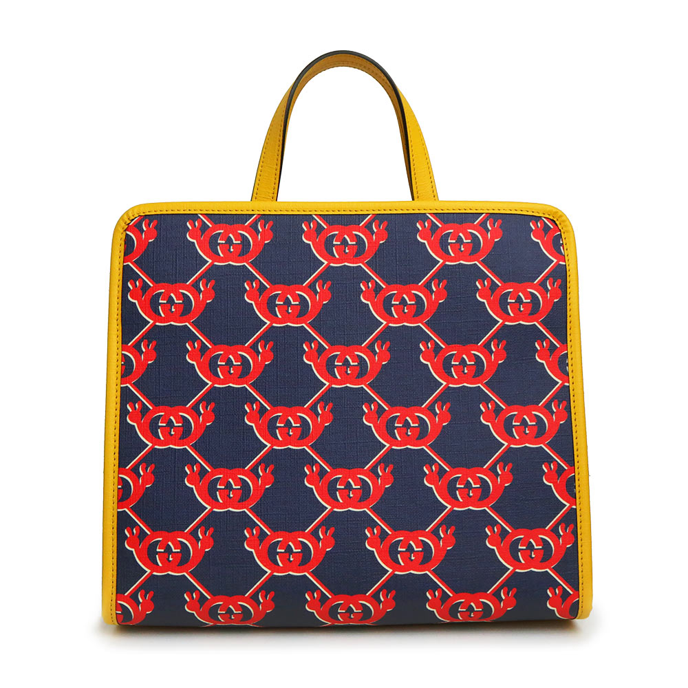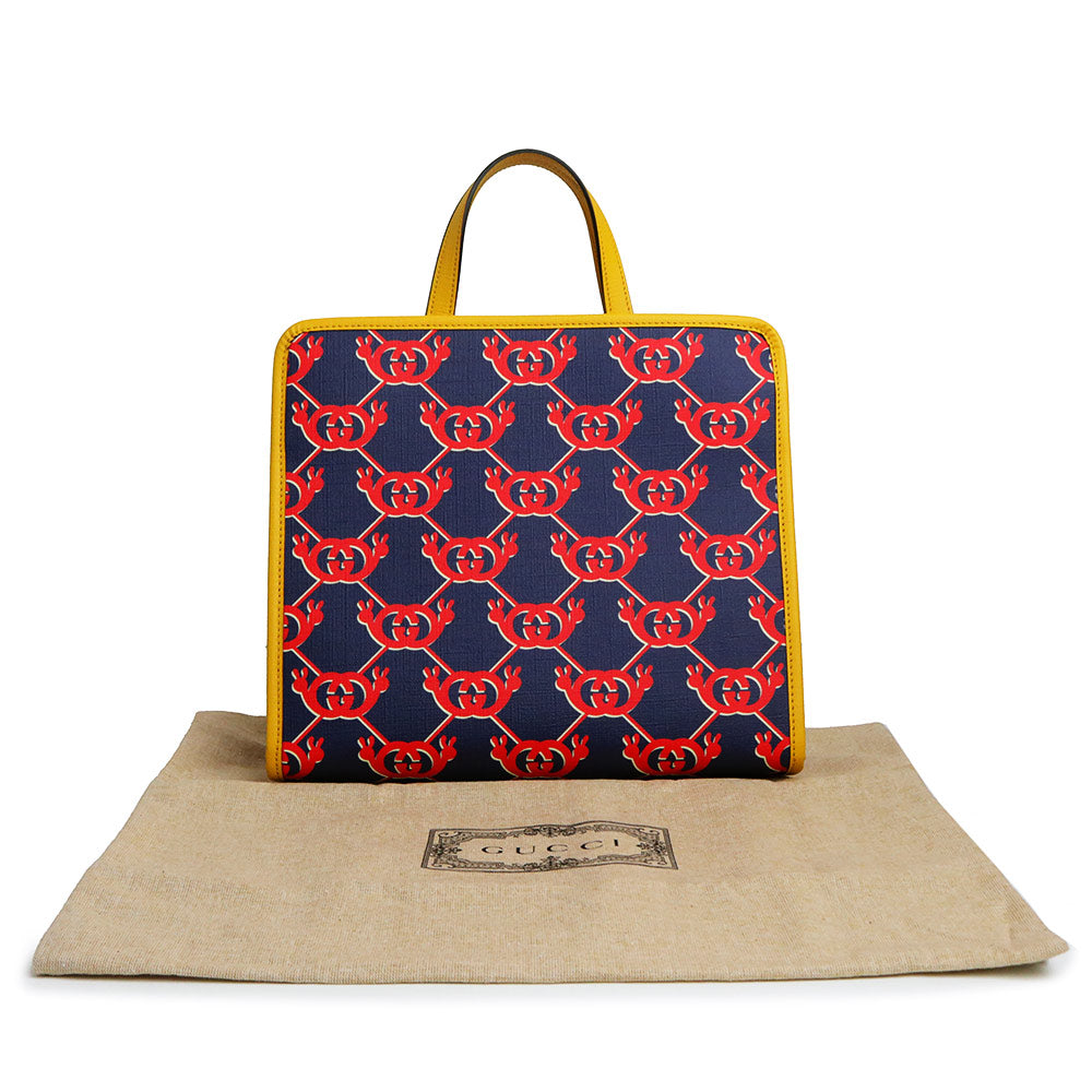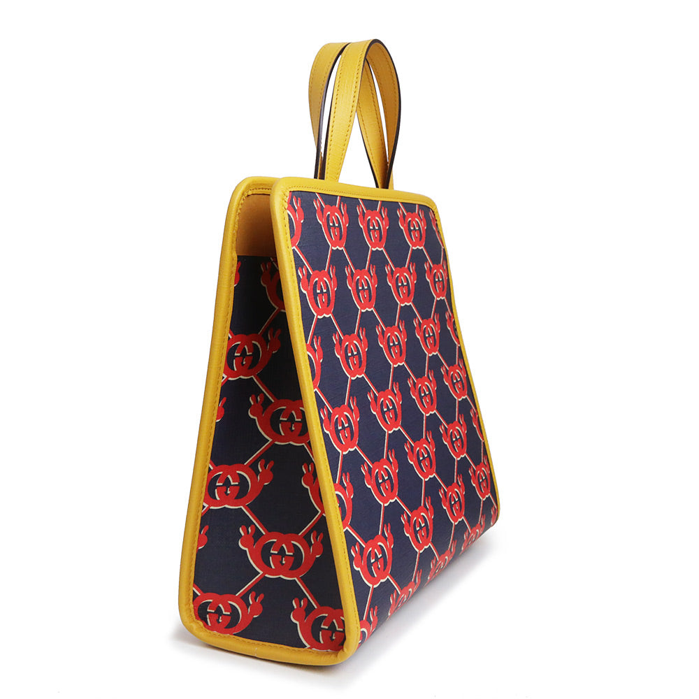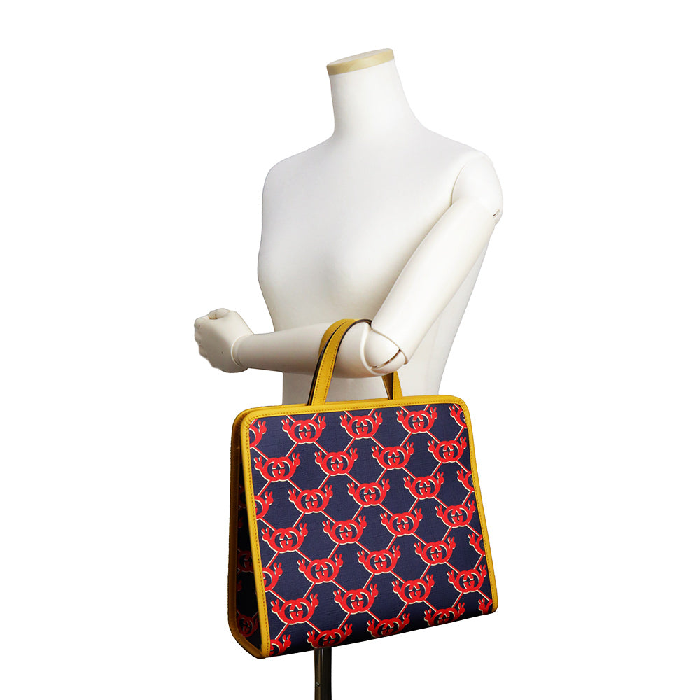 【未使用 展示品】グッチ GUCCI チルドレンズ インターロッキングG スネイル ハンドバッグ カタツムリ GGスプリームキャンバス レザー ネイビー レッド イエロー シルバー金具 605614