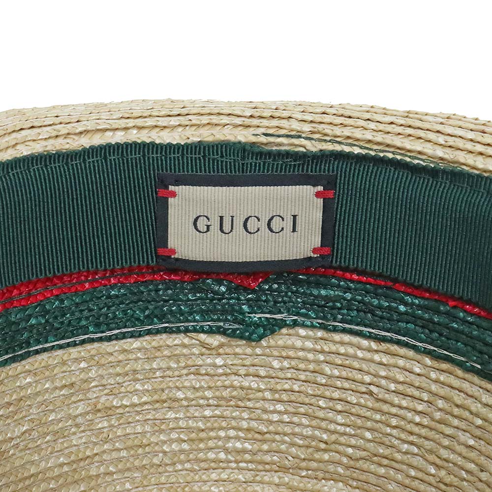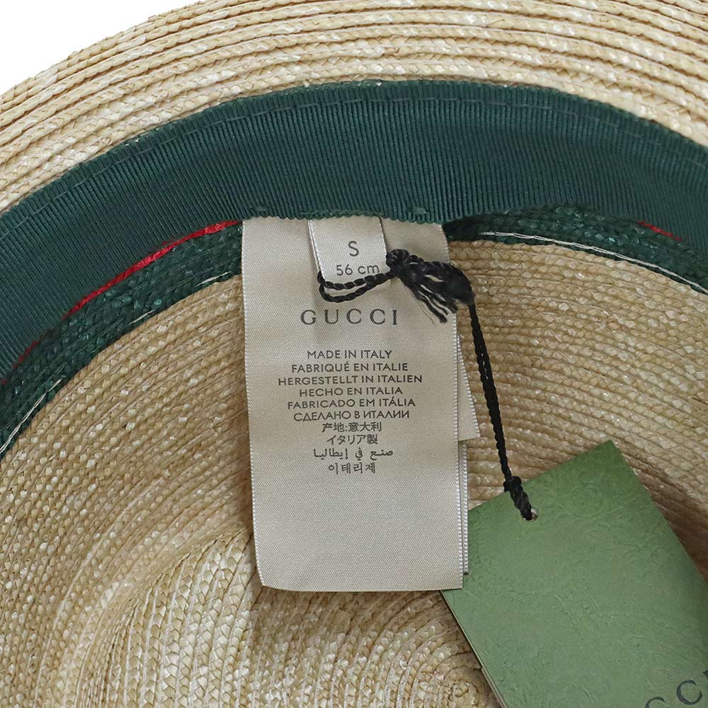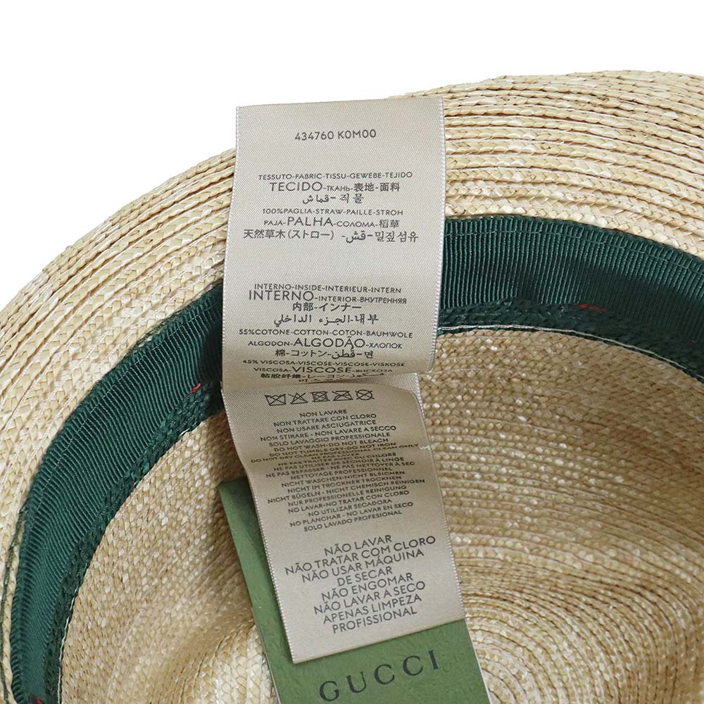 【新品・未使用品】グッチ GUCCI ウーブン ストロー ウェブストライプ ハット 麦わら 中折れ 帽子 #S 56cm コットン レーヨン ナチュラル ベージュ 434760
