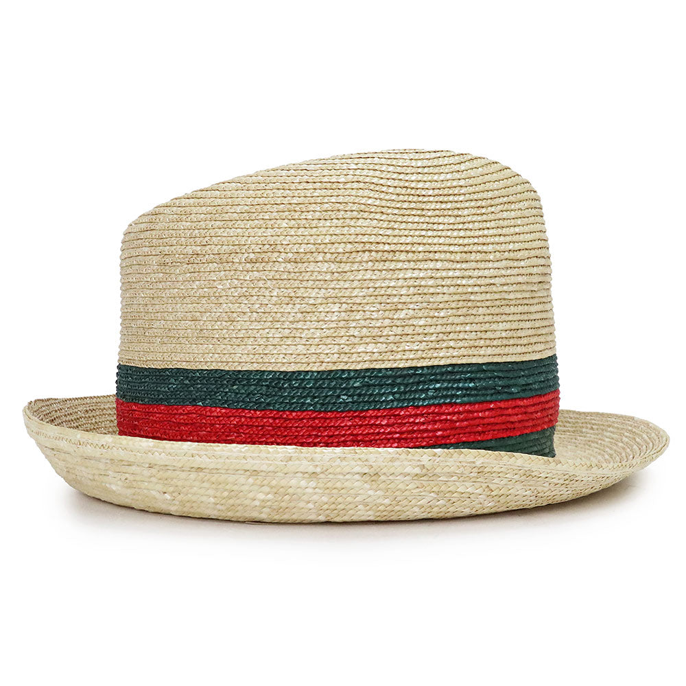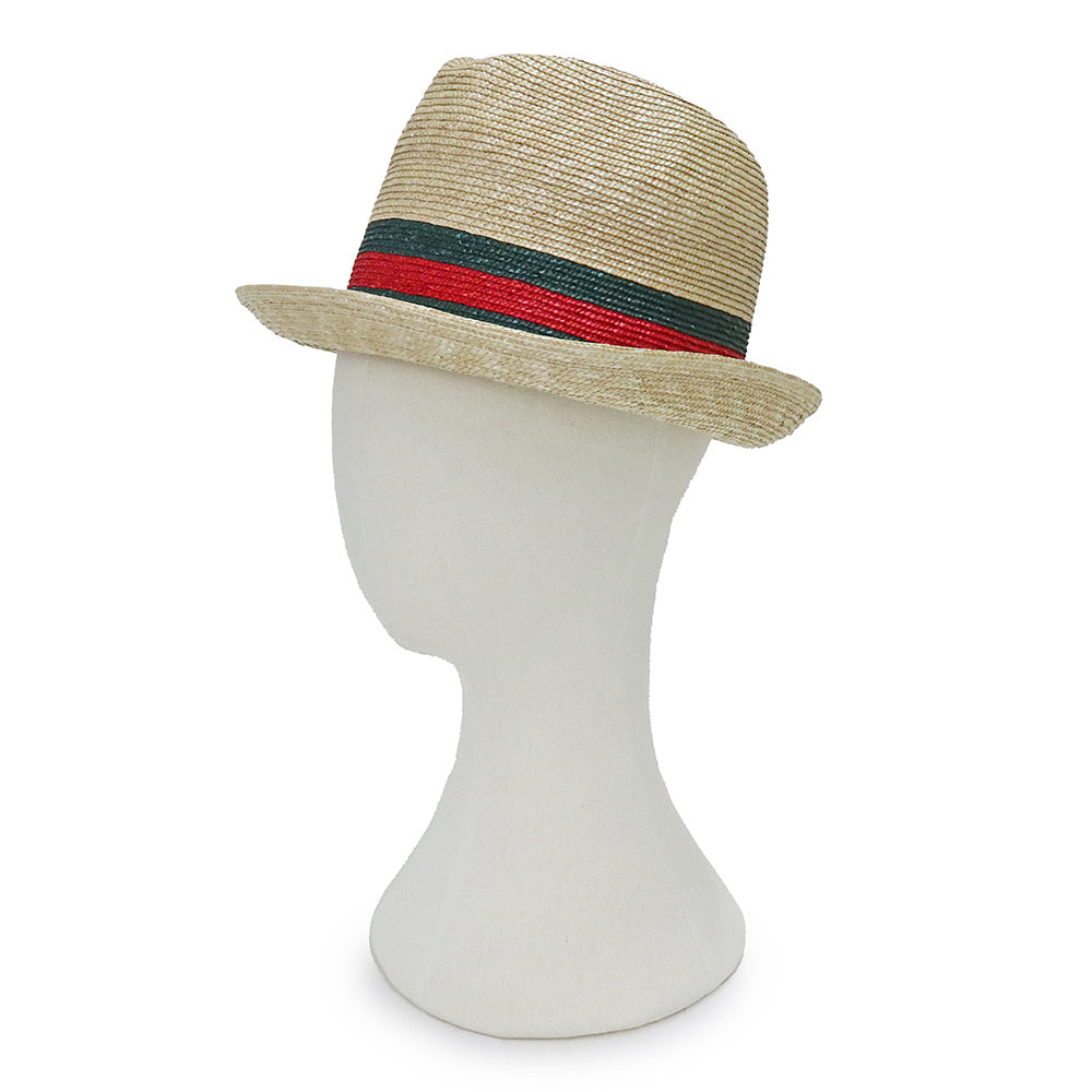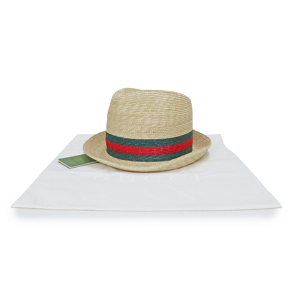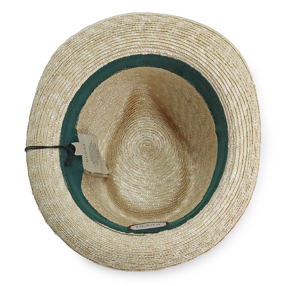 【新品・未使用品】グッチ GUCCI ウーブン ストロー ウェブストライプ ハット 麦わら 中折れ 帽子 #S 56cm コットン レーヨン ナチュラル ベージュ 434760