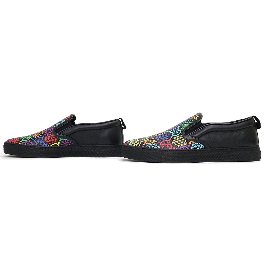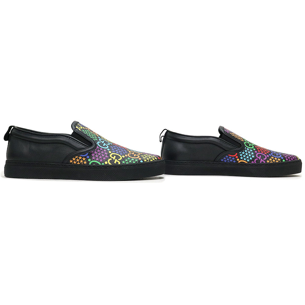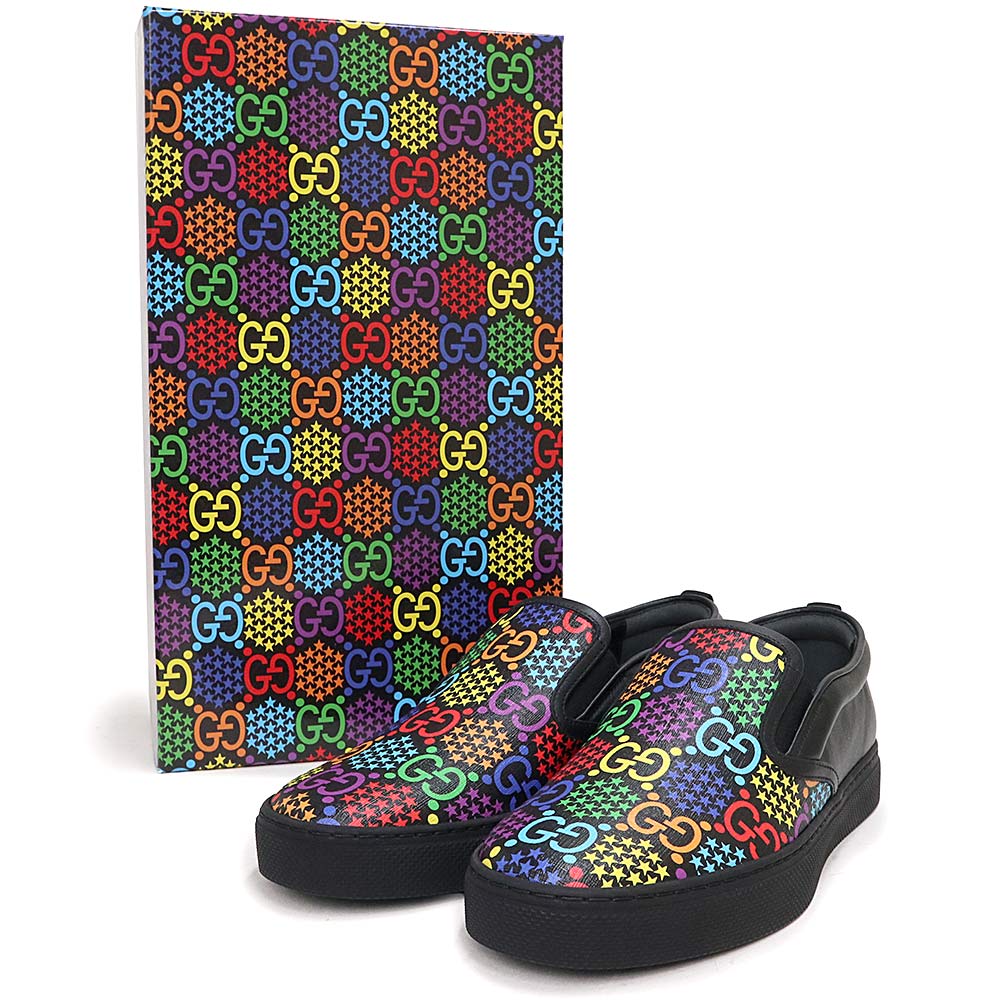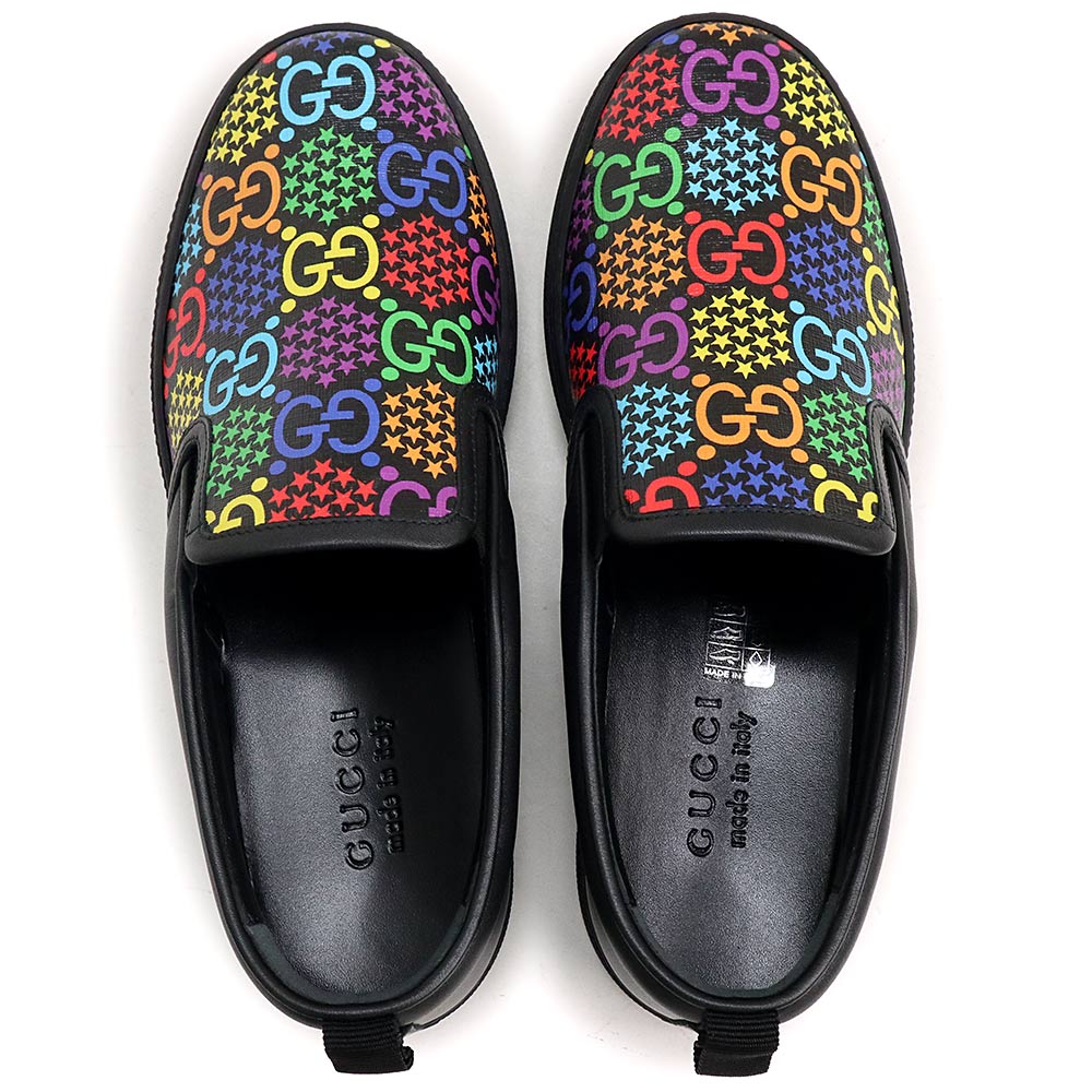 【新品・未使用品】グッチ GUCCI GGスプリーム サイケデリック スリッポン シューズ 靴 #6.5 25.5cm PVCコーティングキャンバス レザー マルチカラー ブラック 610080 箱付