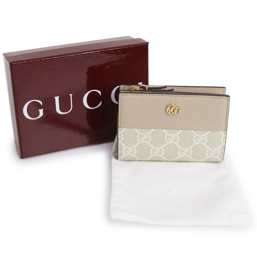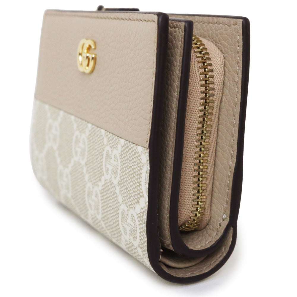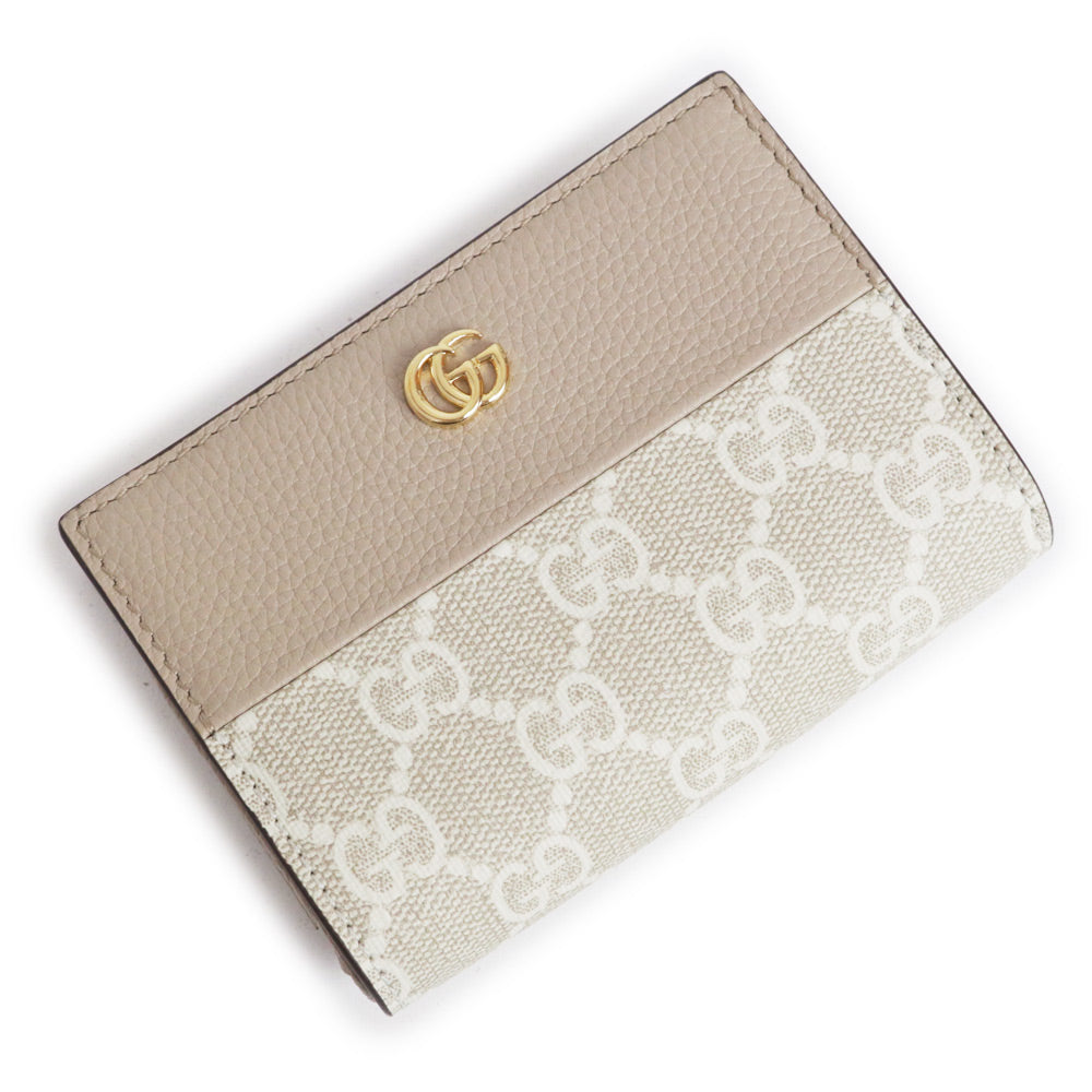 【新品・未使用品】グッチ GUCCI ダブルG バイカラー スモールウォレット 二つ折り財布 GGスプリームキャンバス カーフスキン レザー ベージュ ホワイト ゴールド金具 841360 箱付