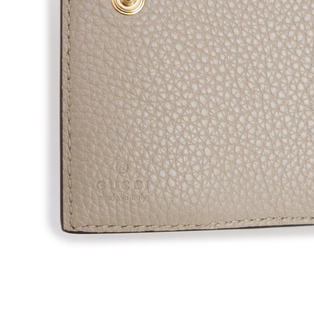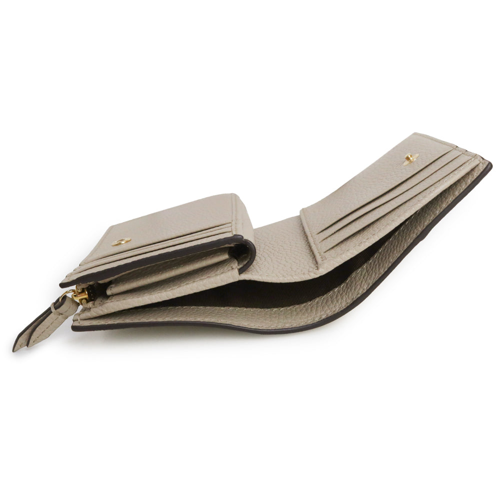 GGスプリームキャンバスとレザーを組み合わせ、グッチを象徴するダブルGの小さなハードウェアがポイントのスモールウォレット。内側には複数のカードスロットとポケットを備えており、スナップクロージャーで開閉するデザインです。 |