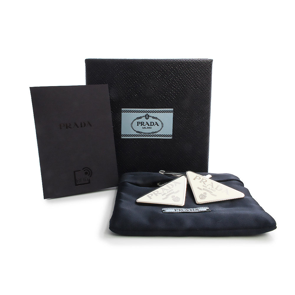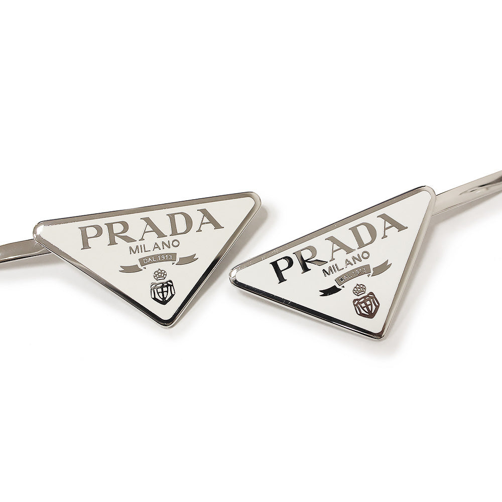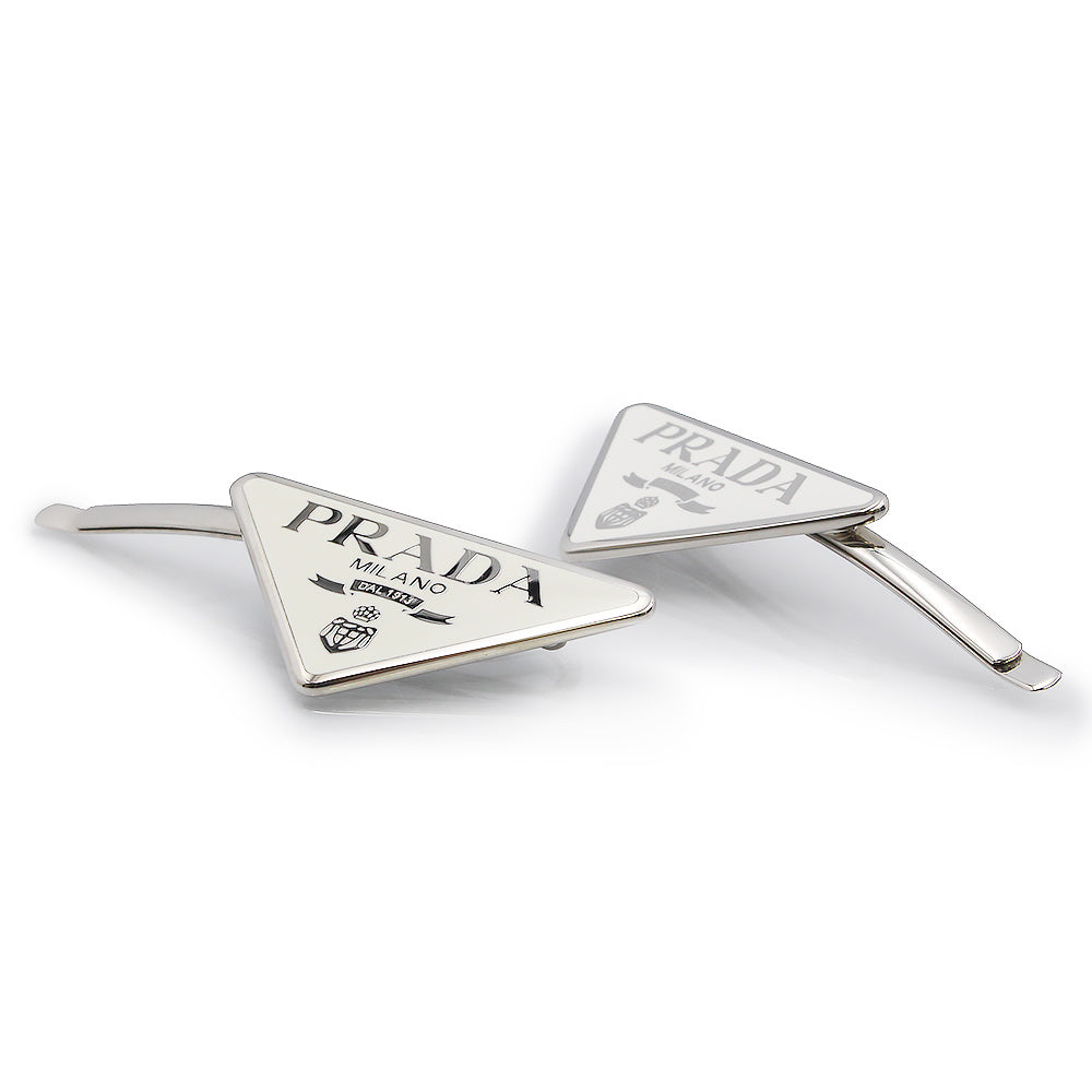 【中古】プラダ PRADA 三角ロゴプレート トライアングル 髪留め ヘアピン ヘアクリップ ヘアアクセサリー エナメルメタル ビアンコ ホワイト シルバー金具 1IF051 箱付