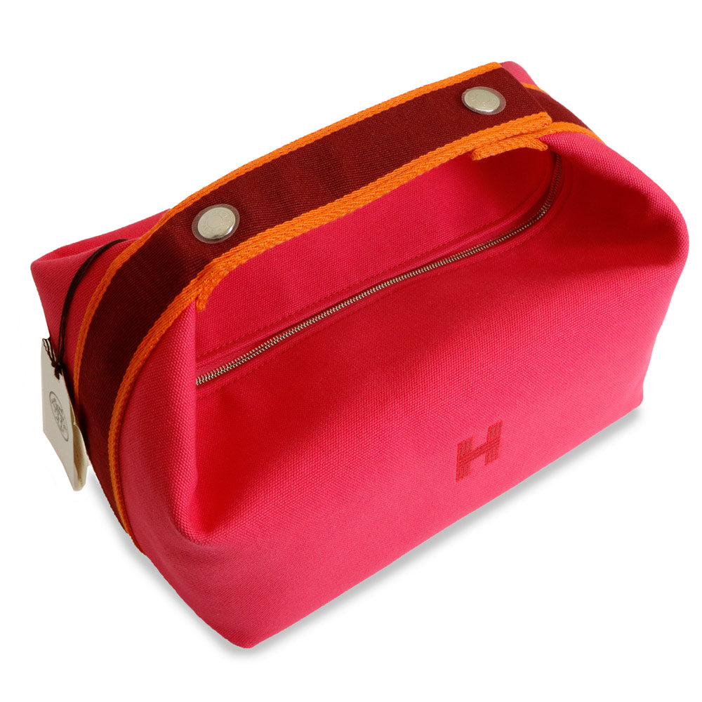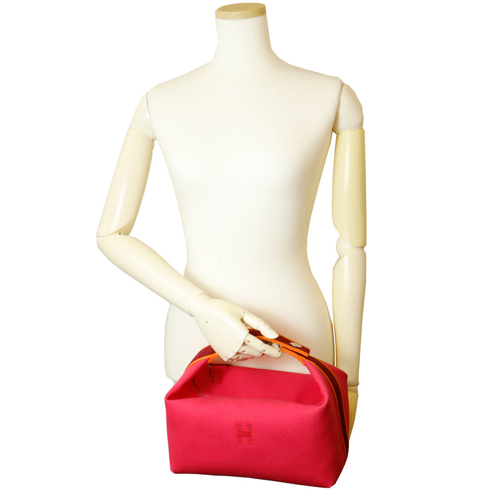 【新品・未使用品】エルメス HERMES ブリッド ア ブラック PM バニティ ポーチ セカンド ハンドバッグ コットンキャンバス Hibiscus ハイビスカス ピンク シルバー金具