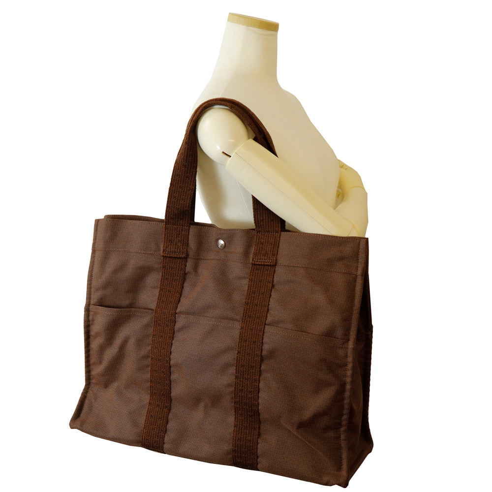 【美品】エルメス HERMES エールライン トート GM ハンドバッグ キャンバス ショコラ シルバー金具