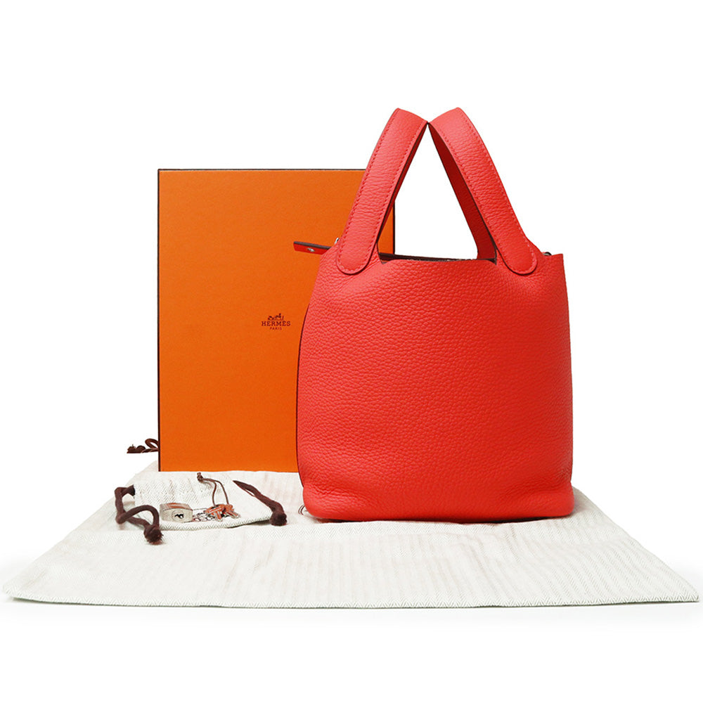 大人気「ピコタン ロックPM」。本来は飼葉入れ用の手提げバッグとして作られたため、非常にコンパクトなフォルムに仕上げられています。柔らかく、馴染みやすい「トリヨンクレマンス」の素材が使用されており、使うほどに味が出てくる贅沢なアイテムです。 |