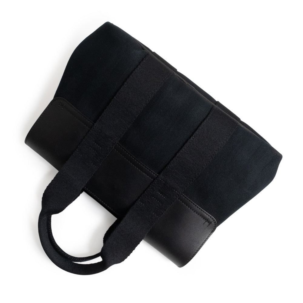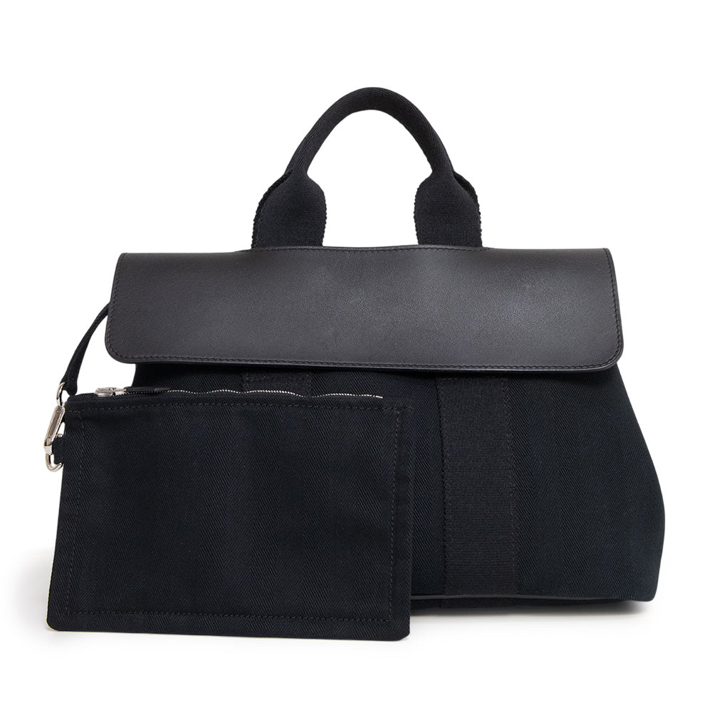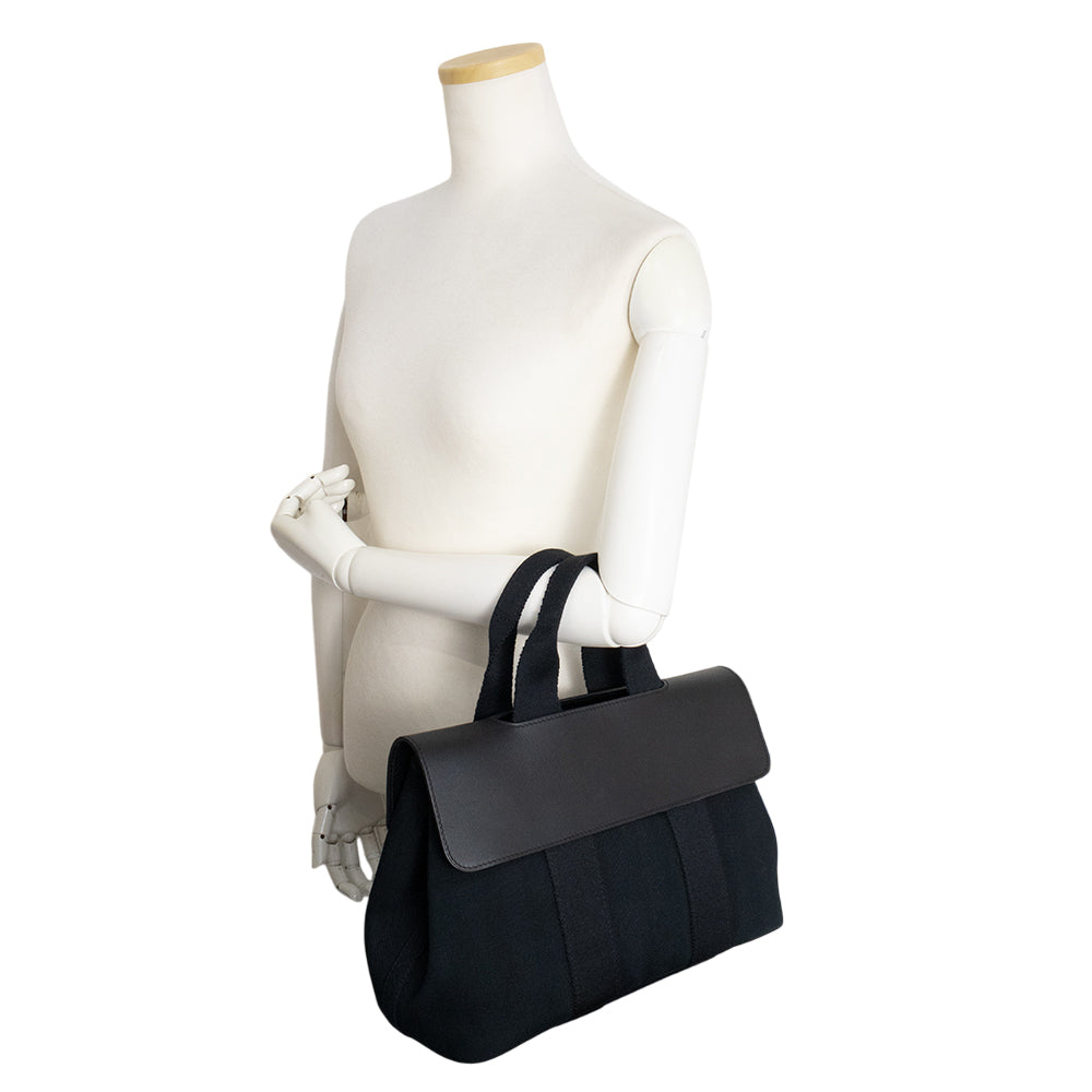 【美品】エルメス HERMES ヴァルパライソ PM ハンドバッグ トワルシェブロン キャンバス カーフスキン レザー ブラック シルバー金具 ポーチ付