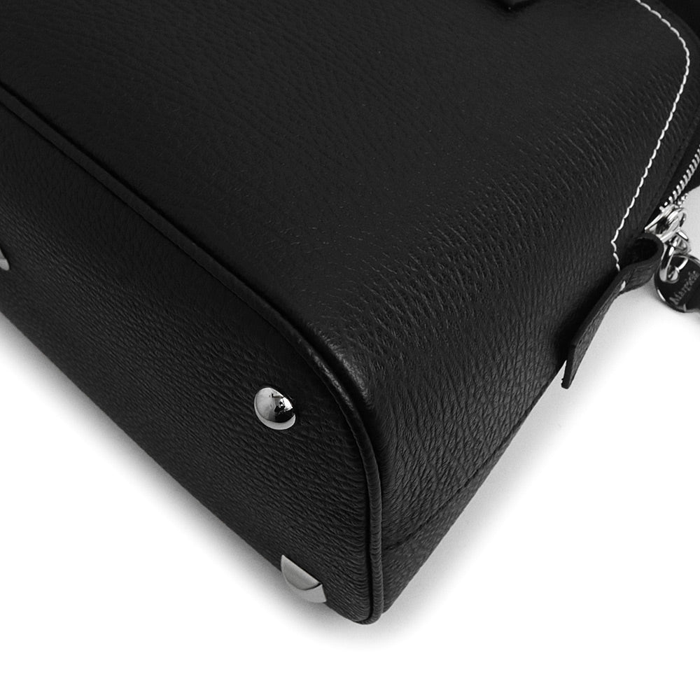 上質な2種類のレザーを使用し、シックに仕上げられた「5AC ミディアム」バッグ。センターにあしらわれたナンバーロゴプレートが、さりげなくブランドをアピールするポイントになっており、付属のストラップを取り付ければ、ショルダーやクロスボディとしてもお使いいただけます。 |