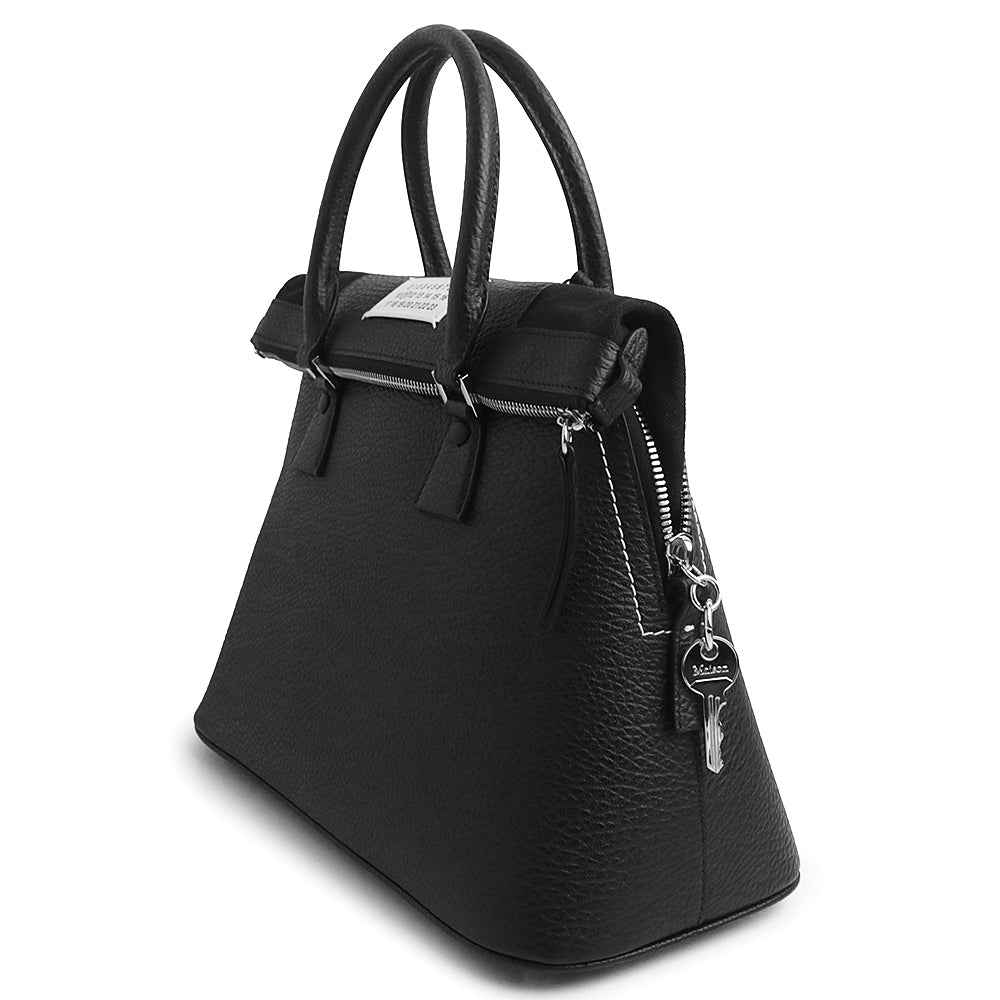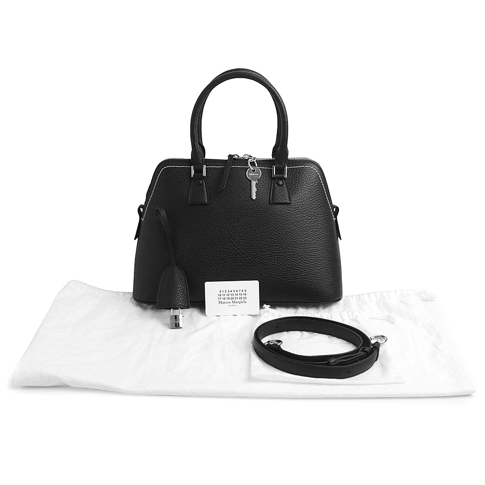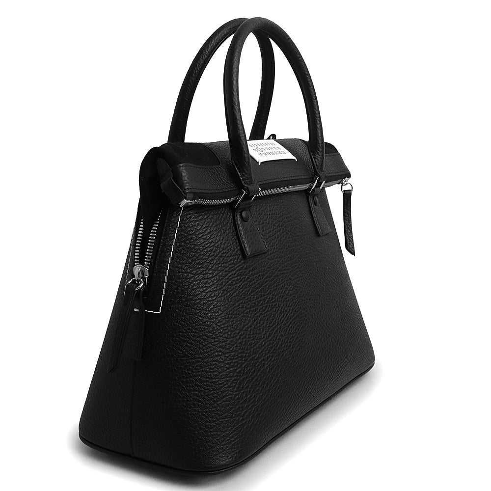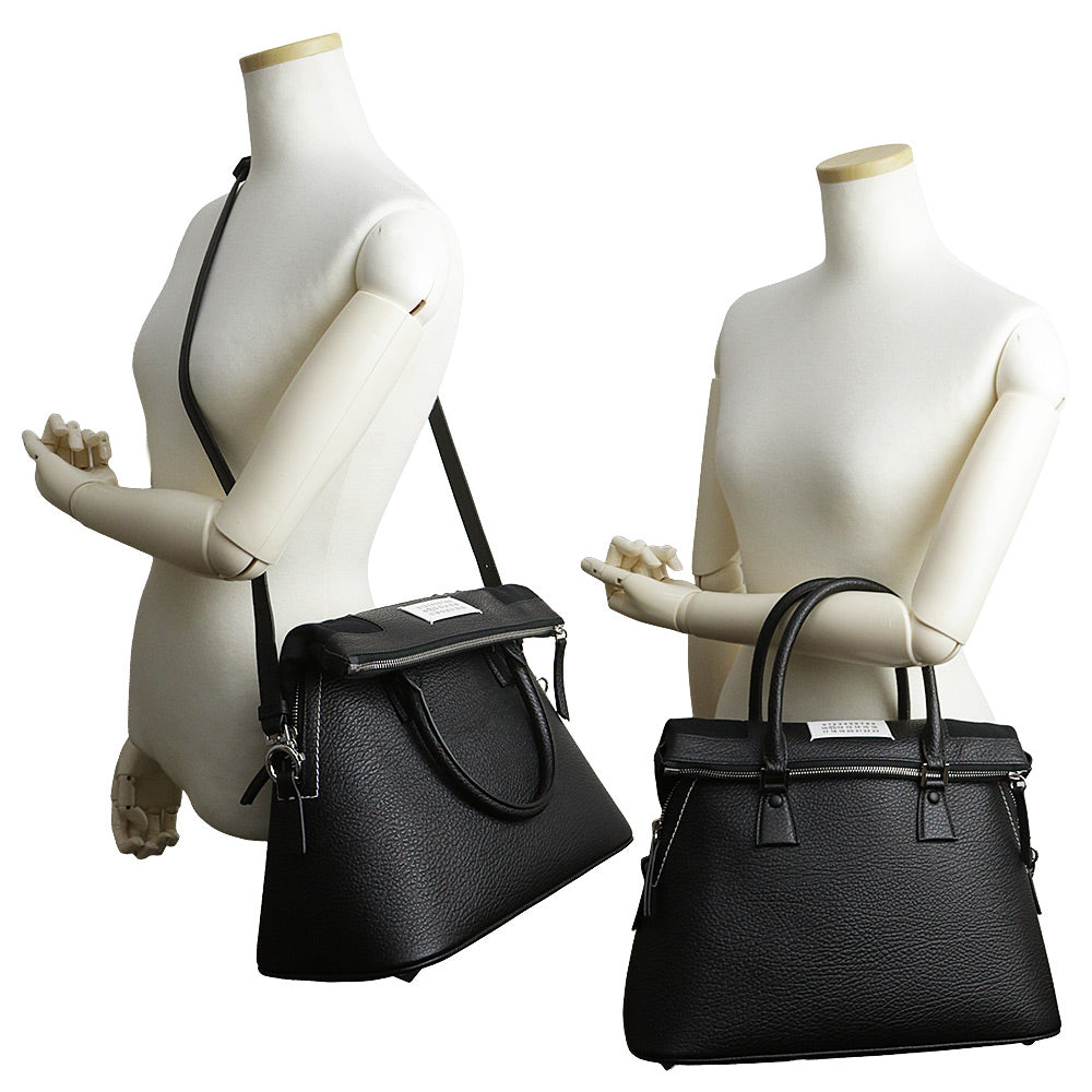 【未使用 展示品】メゾン マルジェラ Maison Margiela 5AC ミディアム 2WAY ショルダー ハンドバッグ 斜め掛け ディアスキン カーフスキン レザー ブラック シルバー金具 S56WG0093