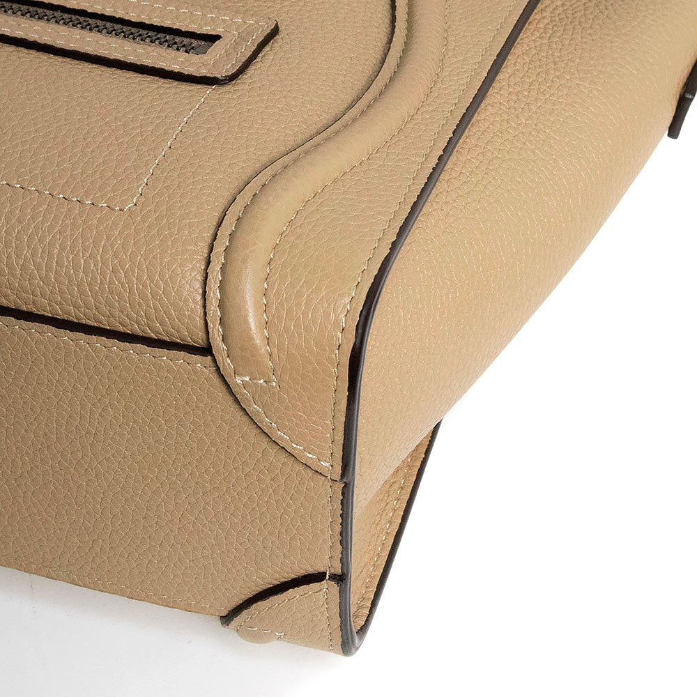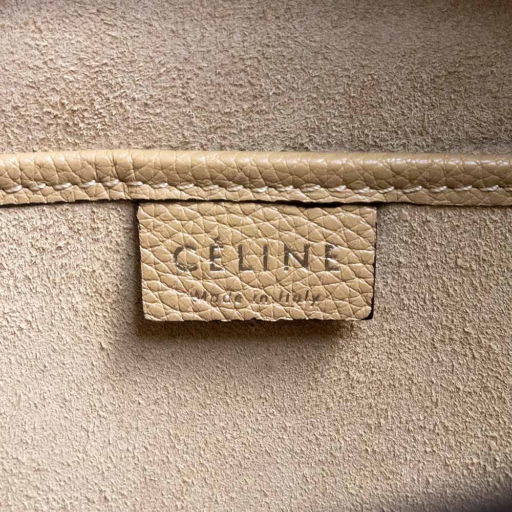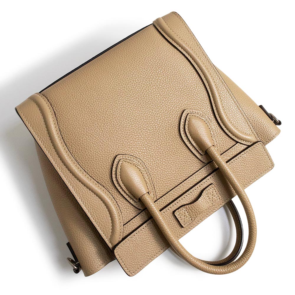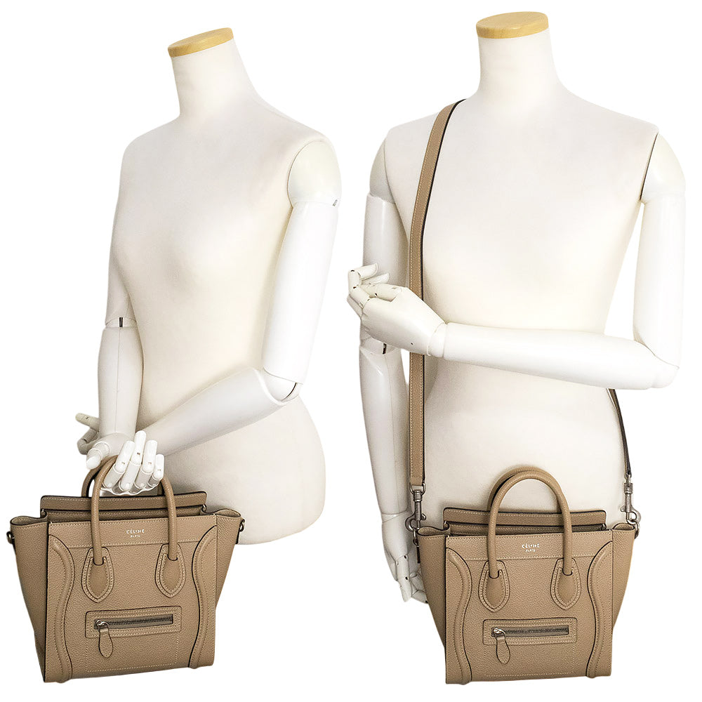 【未使用 展示品】セリーヌ CELINE ラゲージ ナノ ショッパー 2Way ショルダー ハンドバッグ 斜め掛け ドラムドカーフ レザー デューン ベージュ アンティークシルバー金具 189243DRU