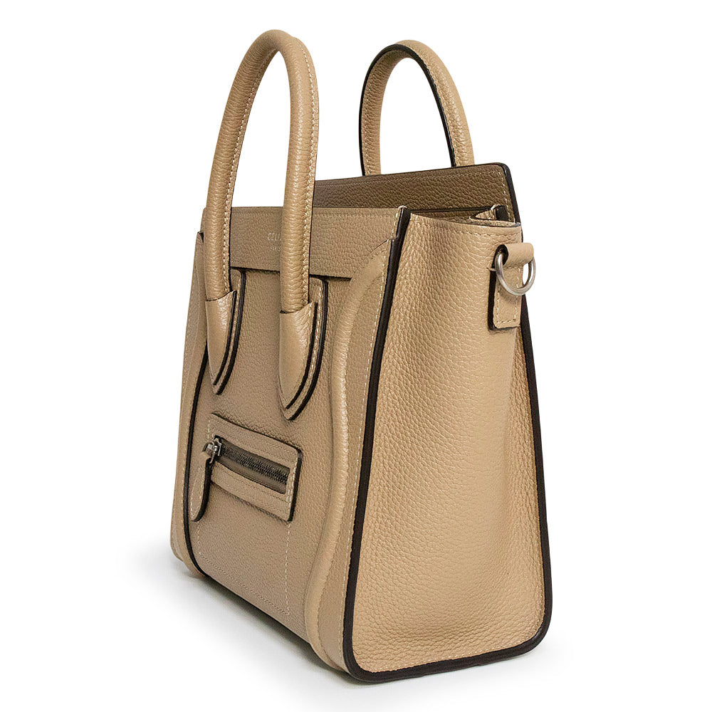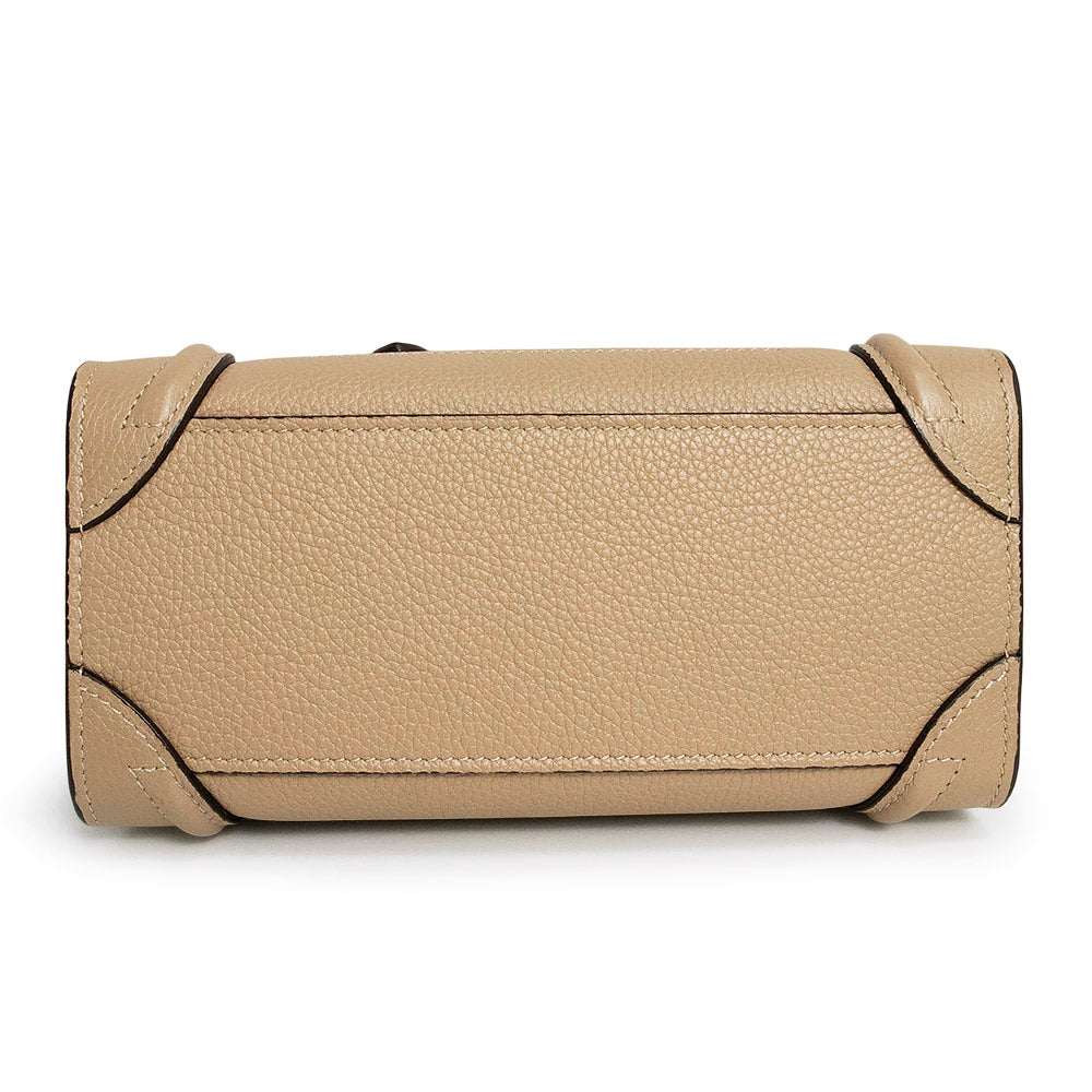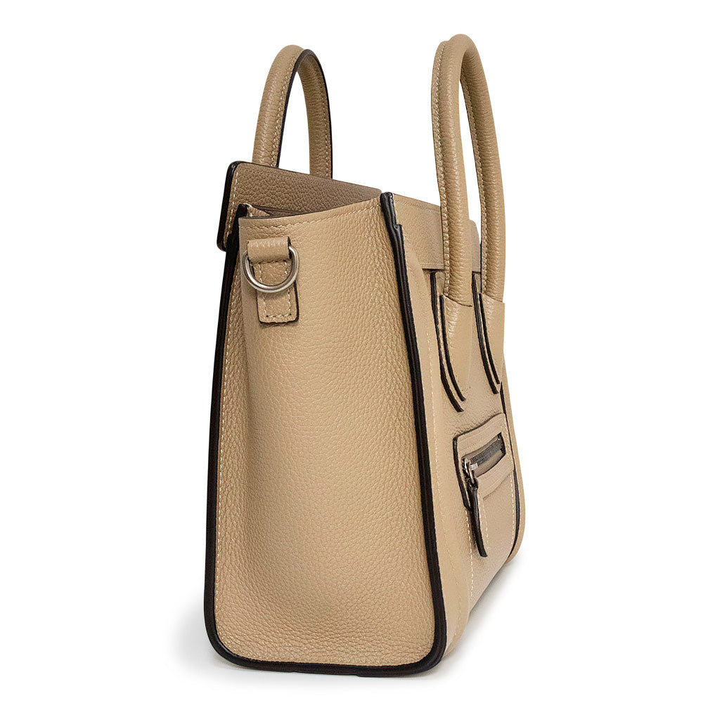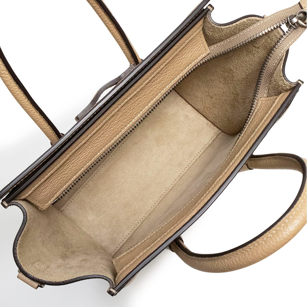 【未使用 展示品】セリーヌ CELINE ラゲージ ナノ ショッパー 2Way ショルダー ハンドバッグ 斜め掛け ドラムドカーフ レザー デューン ベージュ アンティークシルバー金具 189243DRU