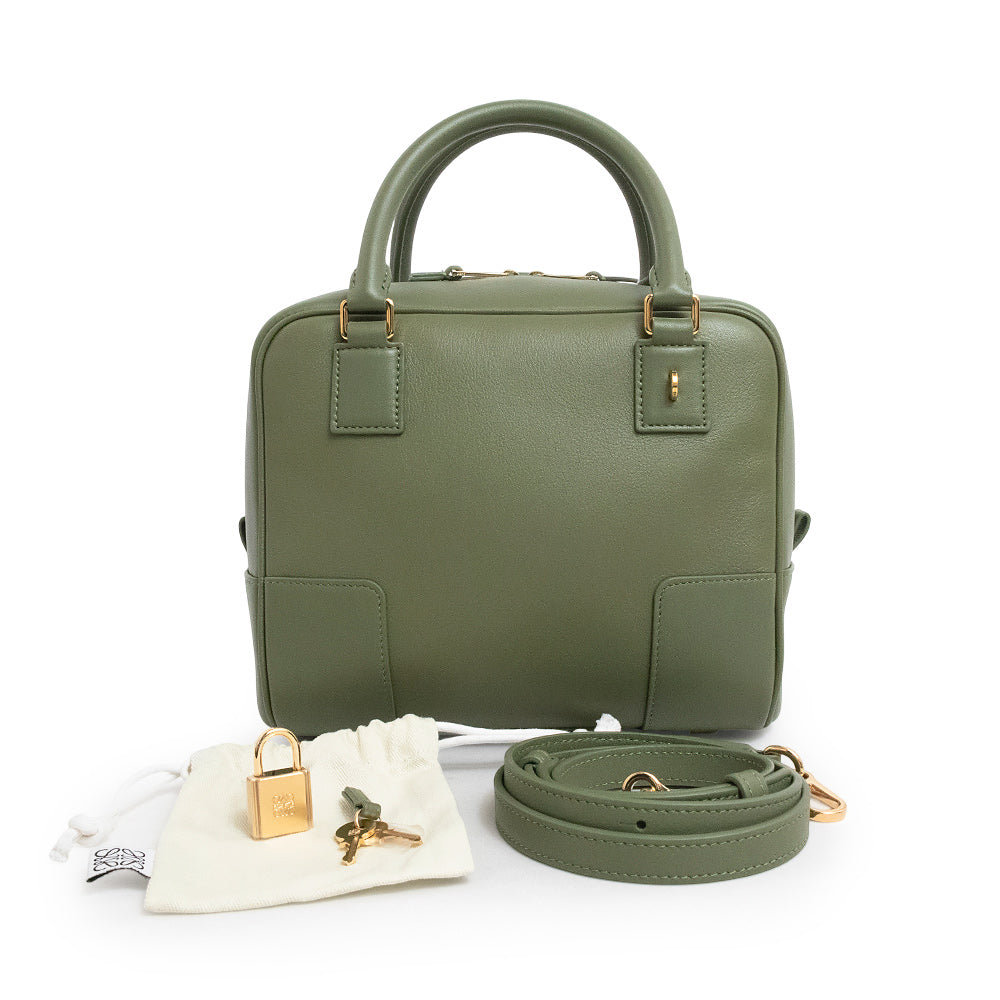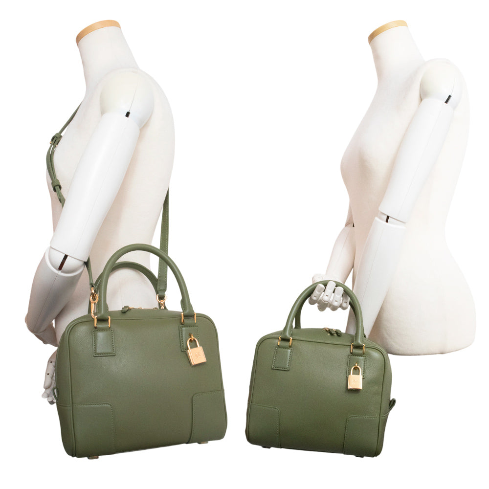 【未使用 展示品】ロエベ LOEWE アマソナ 19 スクエア 2Way ショルダー ハンドバッグ カーフスキン レザー アボカドグリーン ゴールド金具 A039N10X03