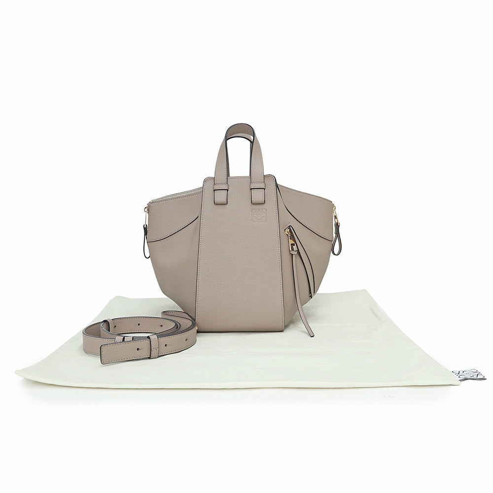 【未使用保管品】ロエベ LOEWE ハンモック スモール 2WAY ショルダー ハンドバッグ 斜め掛け クラシックカーフ レザー サンド ベージュ ゴールド金具 387.30.S35