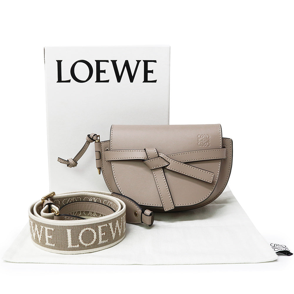 【未使用 展示品】ロエベ LOEWE ゲートデュアル バッグ ミニ ショルダーバッグ 斜め掛け ソフトカーフレザー ジャガード サンド ベージュ ゴールド金具 A650N46X13