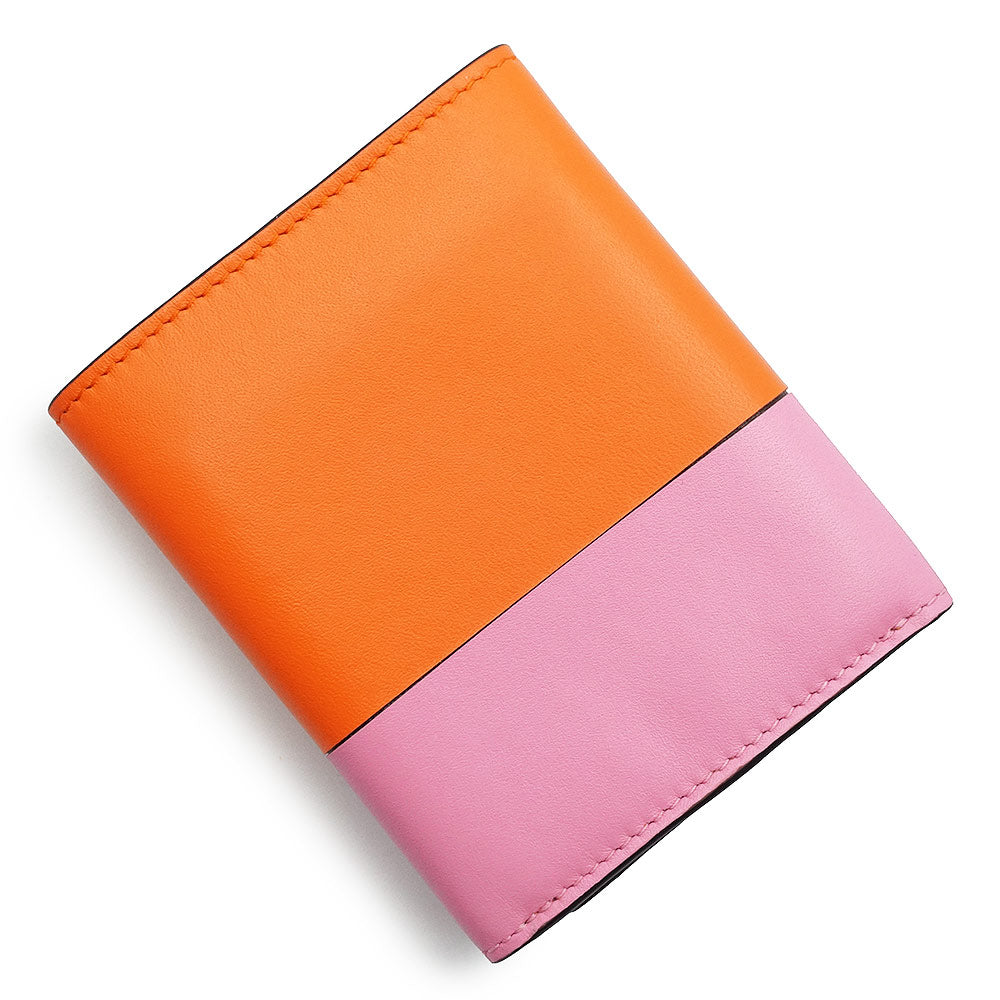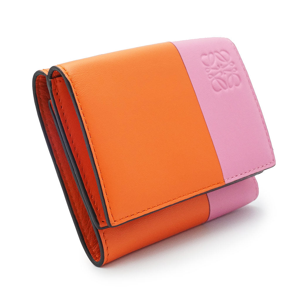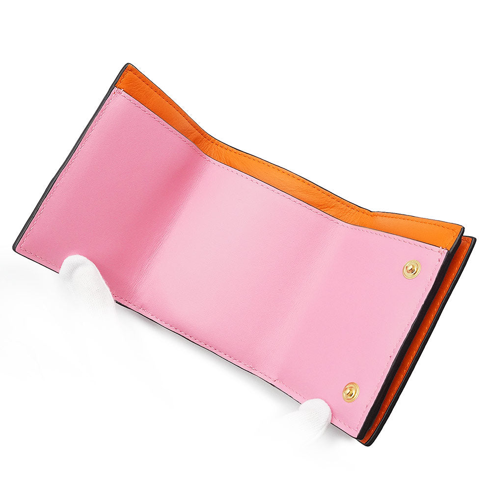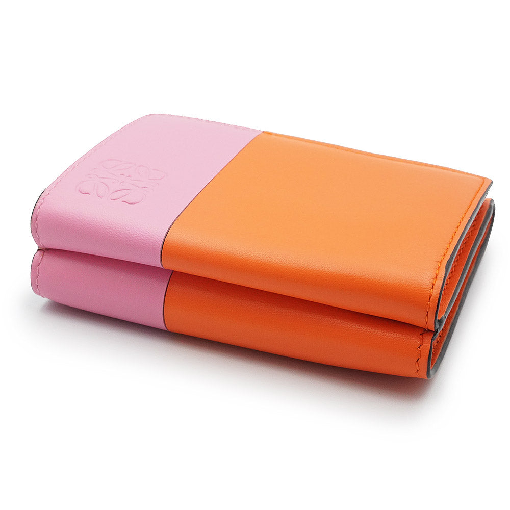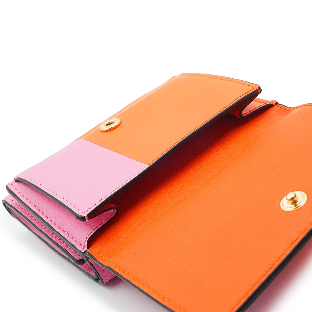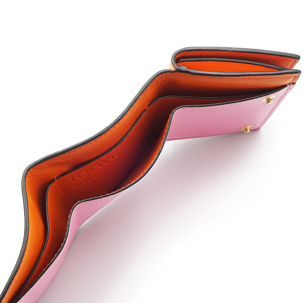 【未使用保管品】ロエベ LOEWE カラーブロック トライフォールド ウォレット コンパクト 三つ折り財布 カーフスキン レザー バイカラー オレンジ キャンディー ピンク ゴールド金具 109.10.S26
