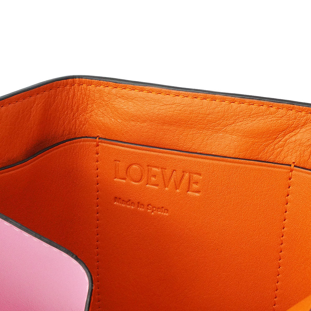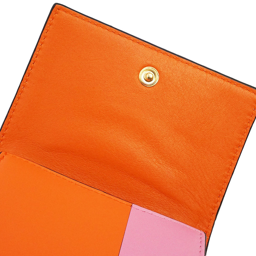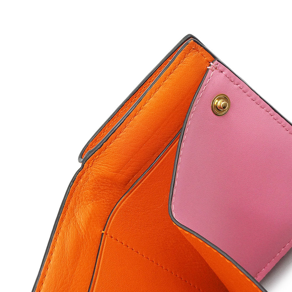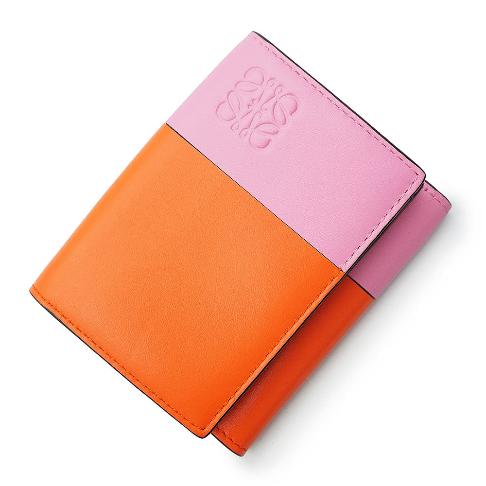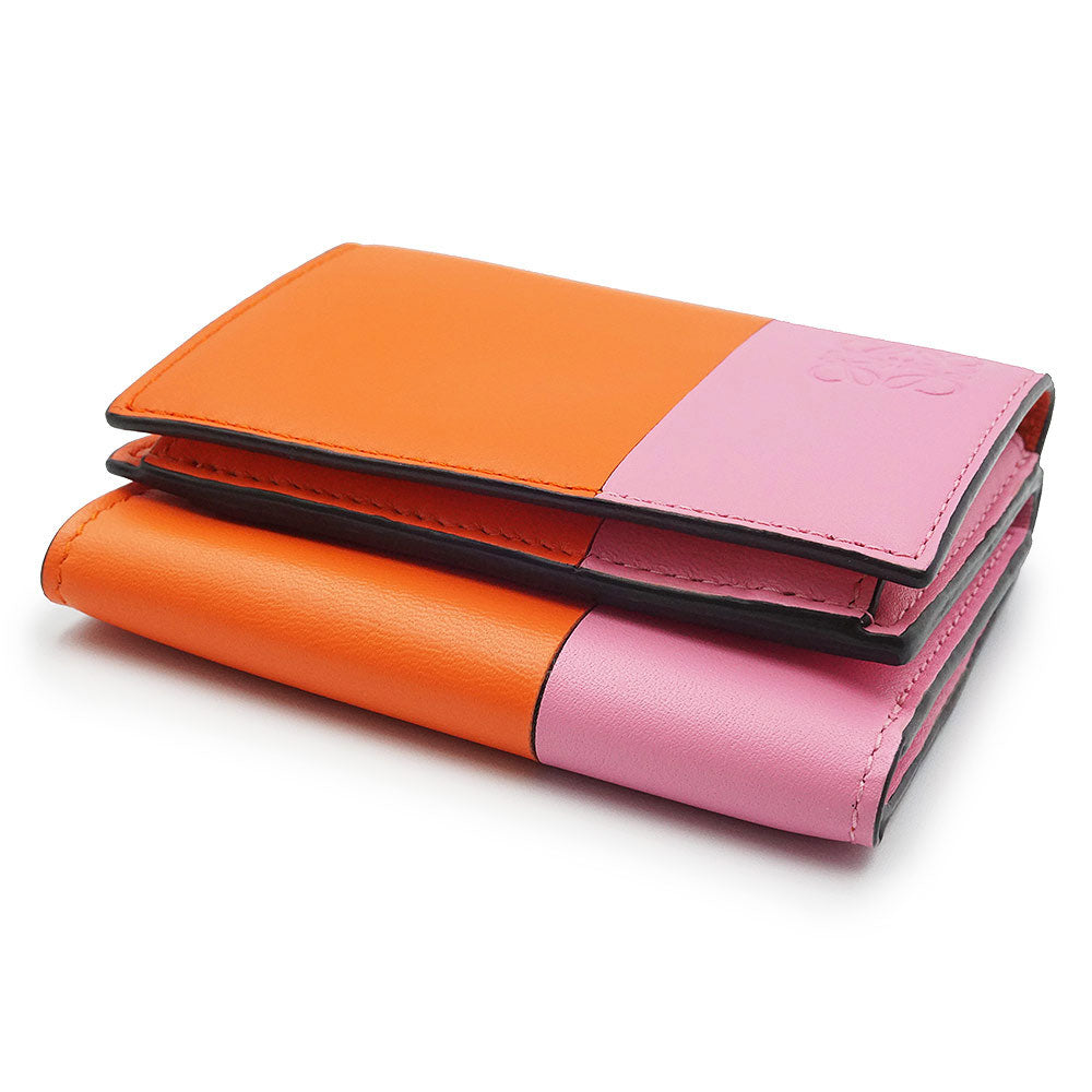 【未使用保管品】ロエベ LOEWE カラーブロック トライフォールド ウォレット コンパクト 三つ折り財布 カーフスキン レザー バイカラー オレンジ キャンディー ピンク ゴールド金具 109.10.S26