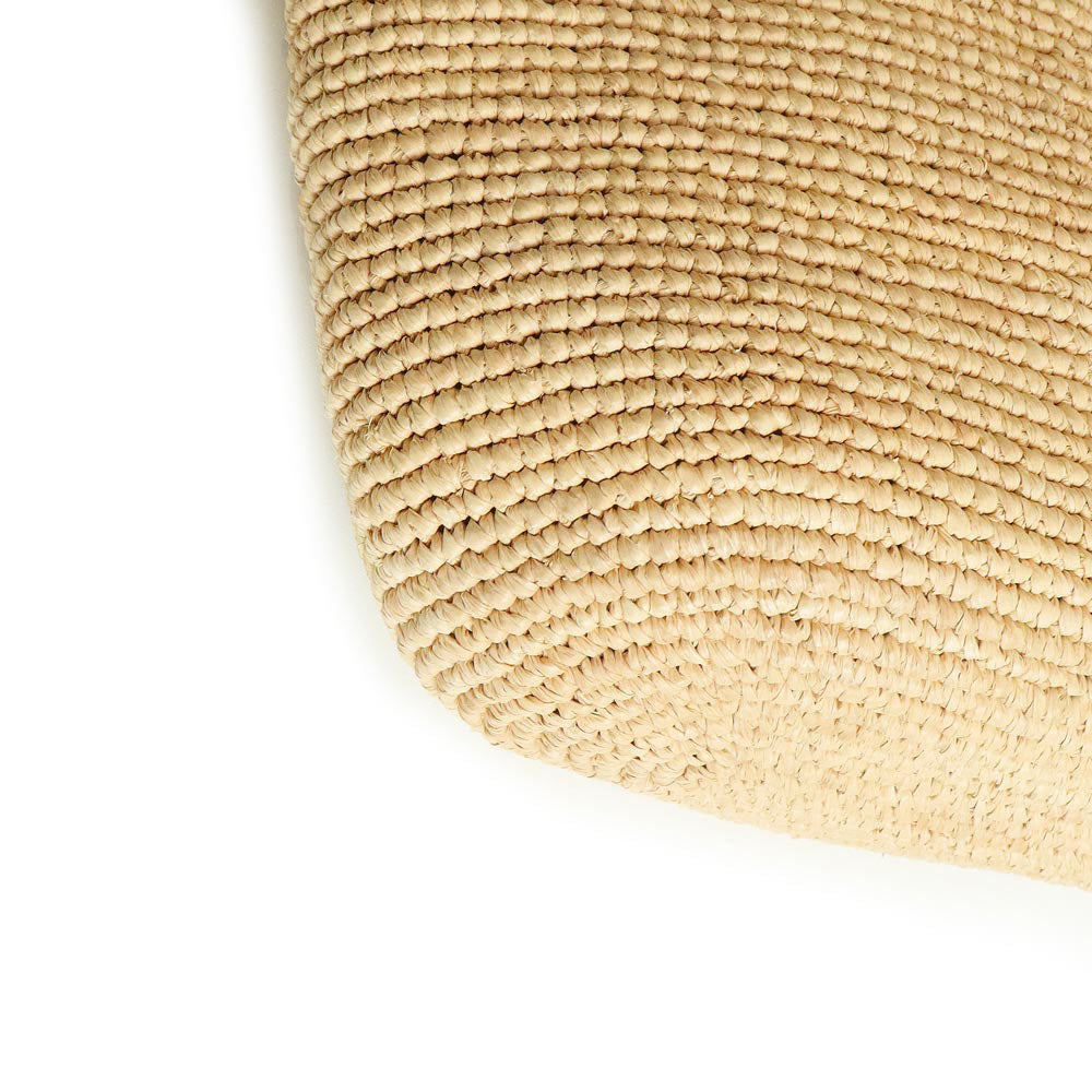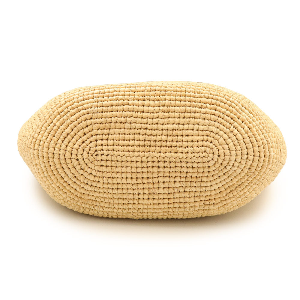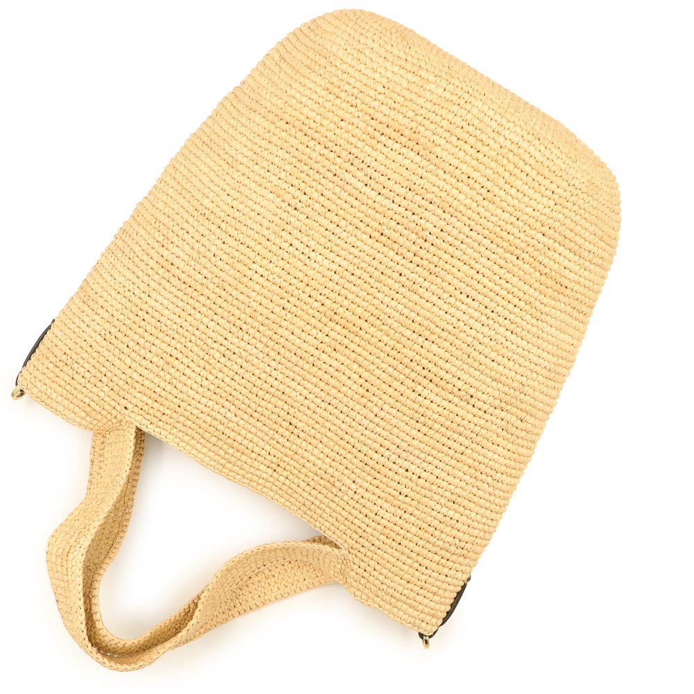 ソフトなラフィア素材で作られた「スリットバッグ ミニ」。ロゴの入ったジャガード織りのストラップやワンポイントのレザーのアナグラムロゴが目を引きます。