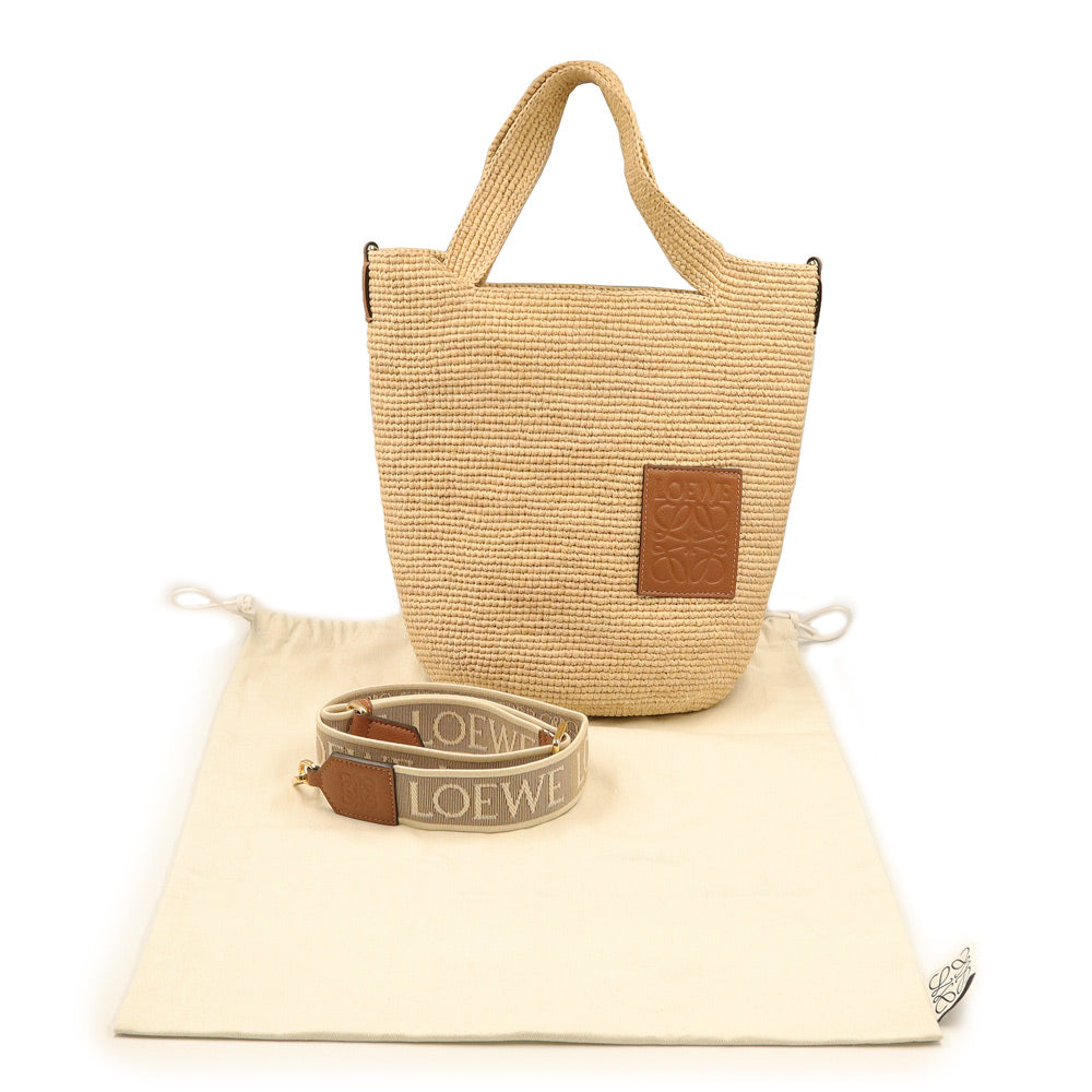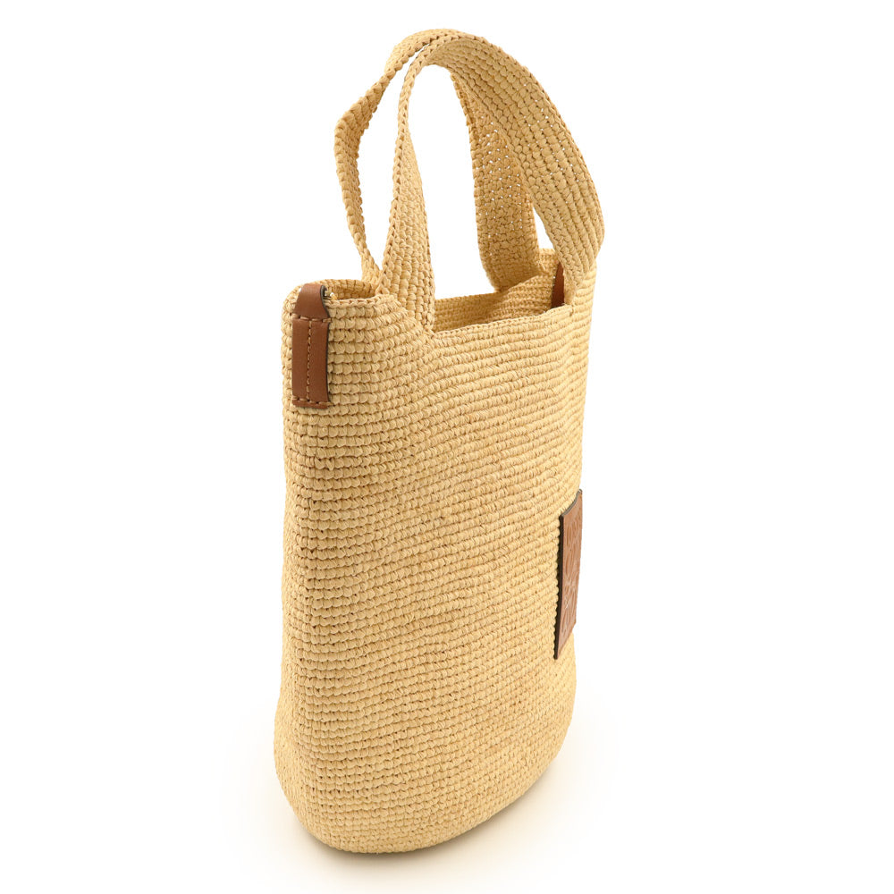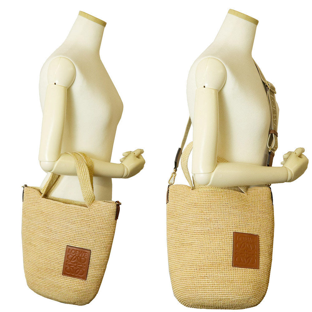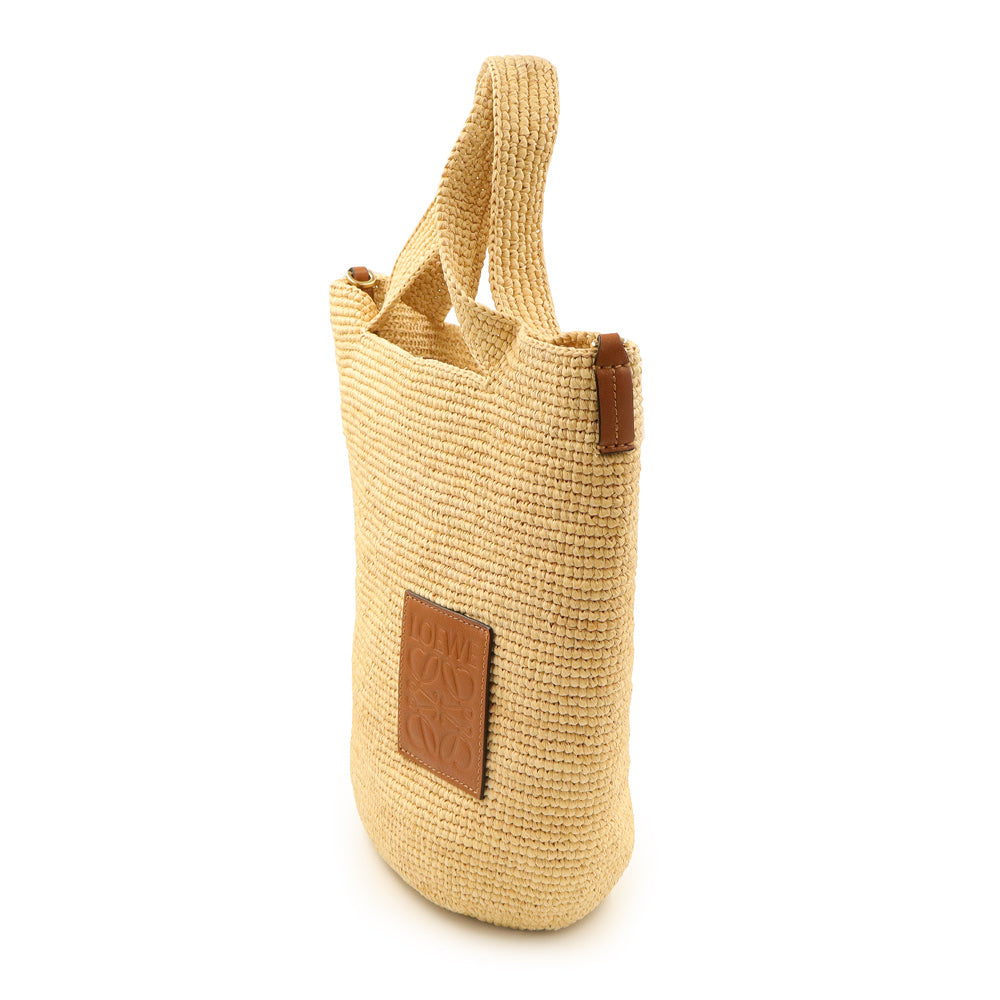 【未使用 展示品】ロエベ LOEWE スリットバッグ ミニ 2way 斜め掛け ショルダー ハンドバッグ ラフィア カーフスキン レザー タン ブラウン ナチュラル ゴールド金具 A685453X07