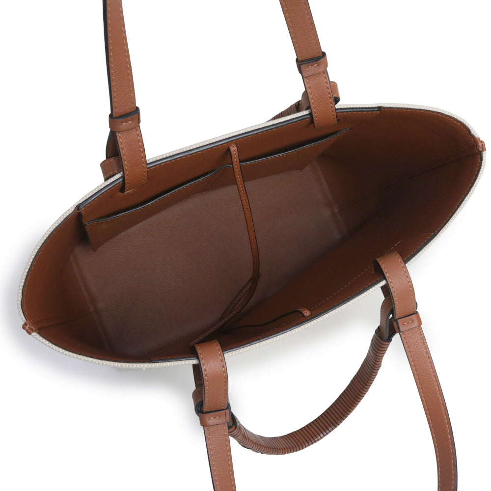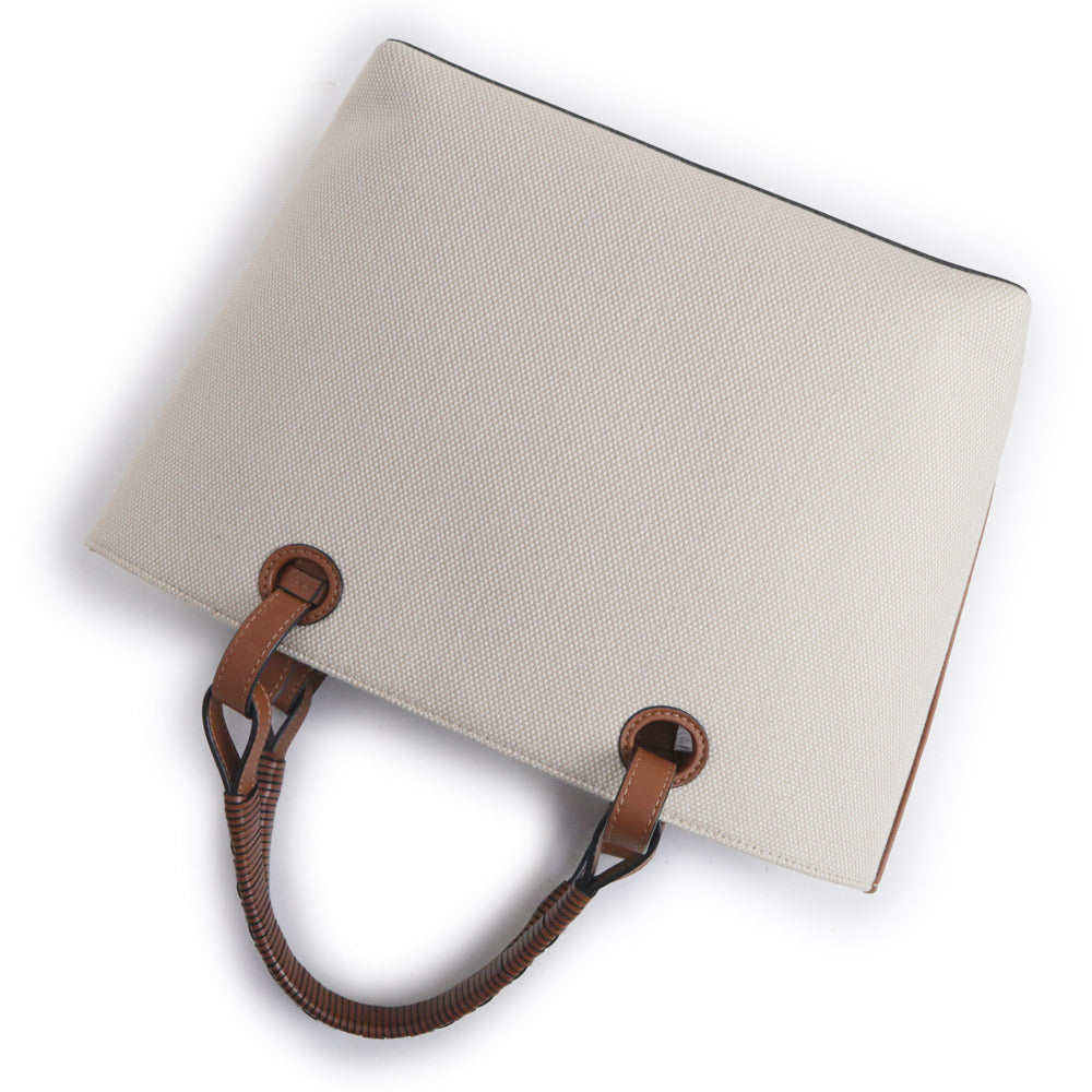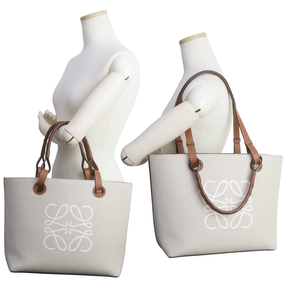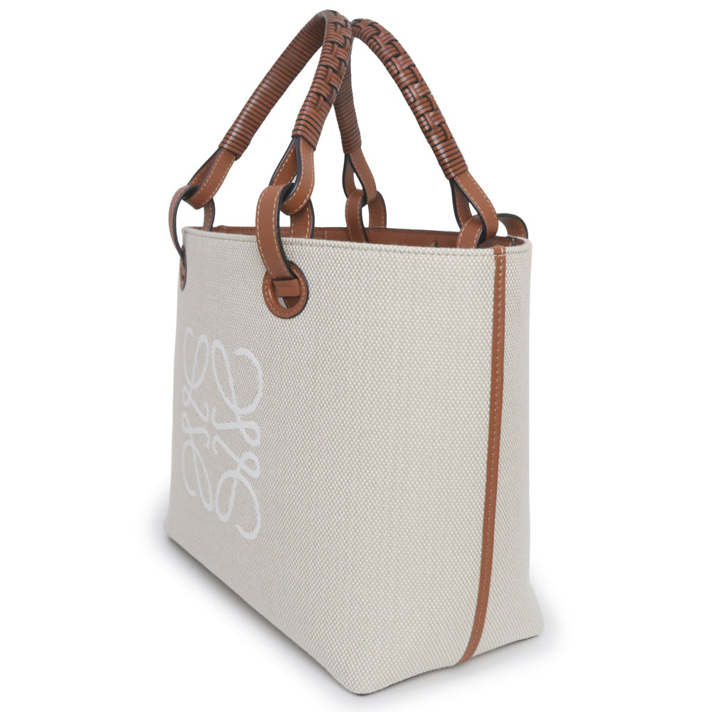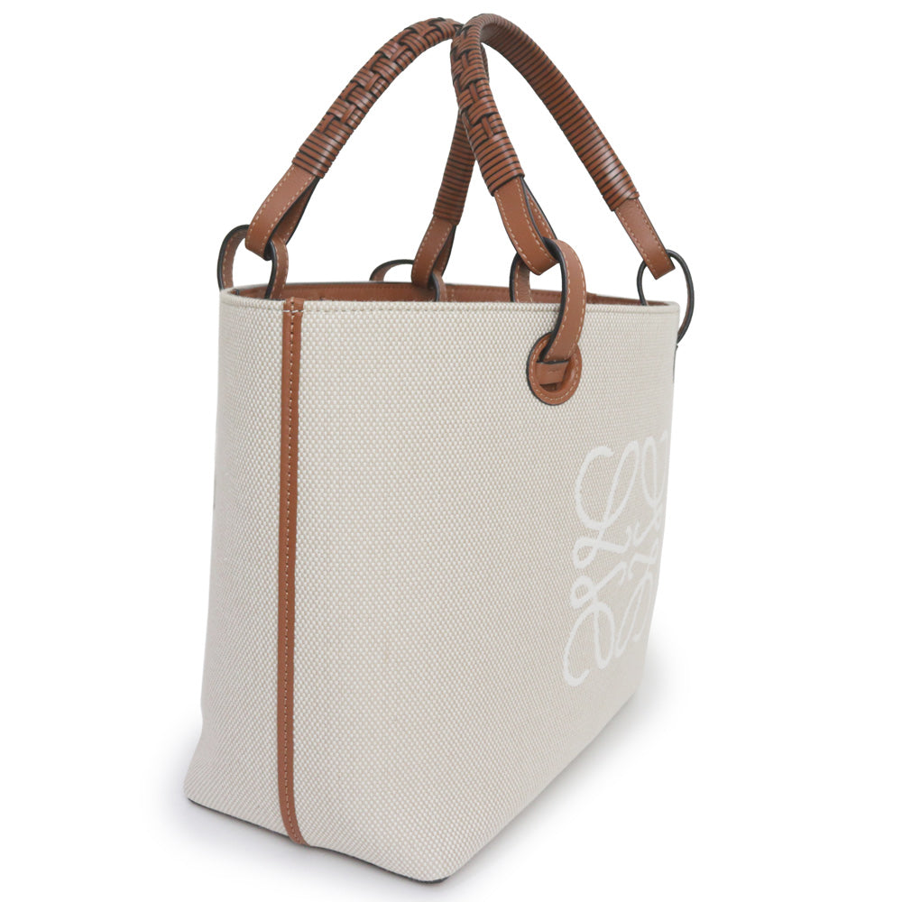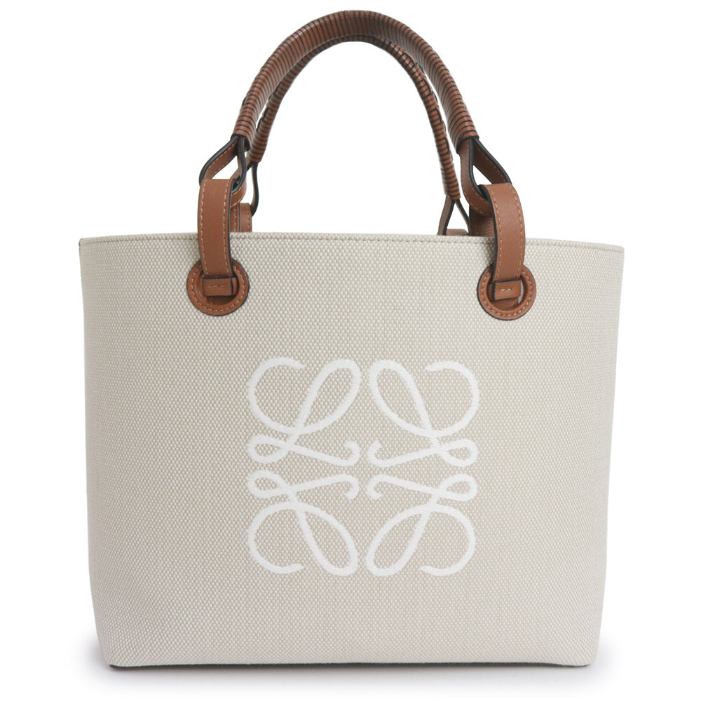【未使用 展示品】ロエベ LOEWE アナグラム トートバッグ スモール 2way ショルダー ハンドバッグ カーフスキン レザー ジャカード エクリュ タン ベージュ ブラウン A717S72X06
