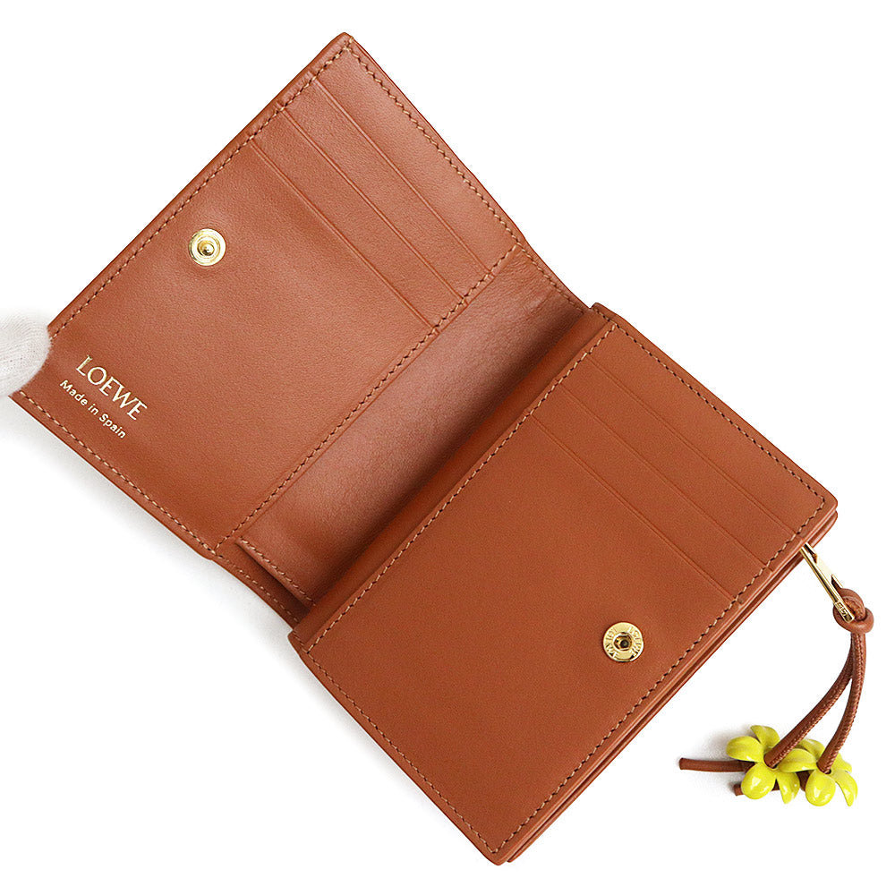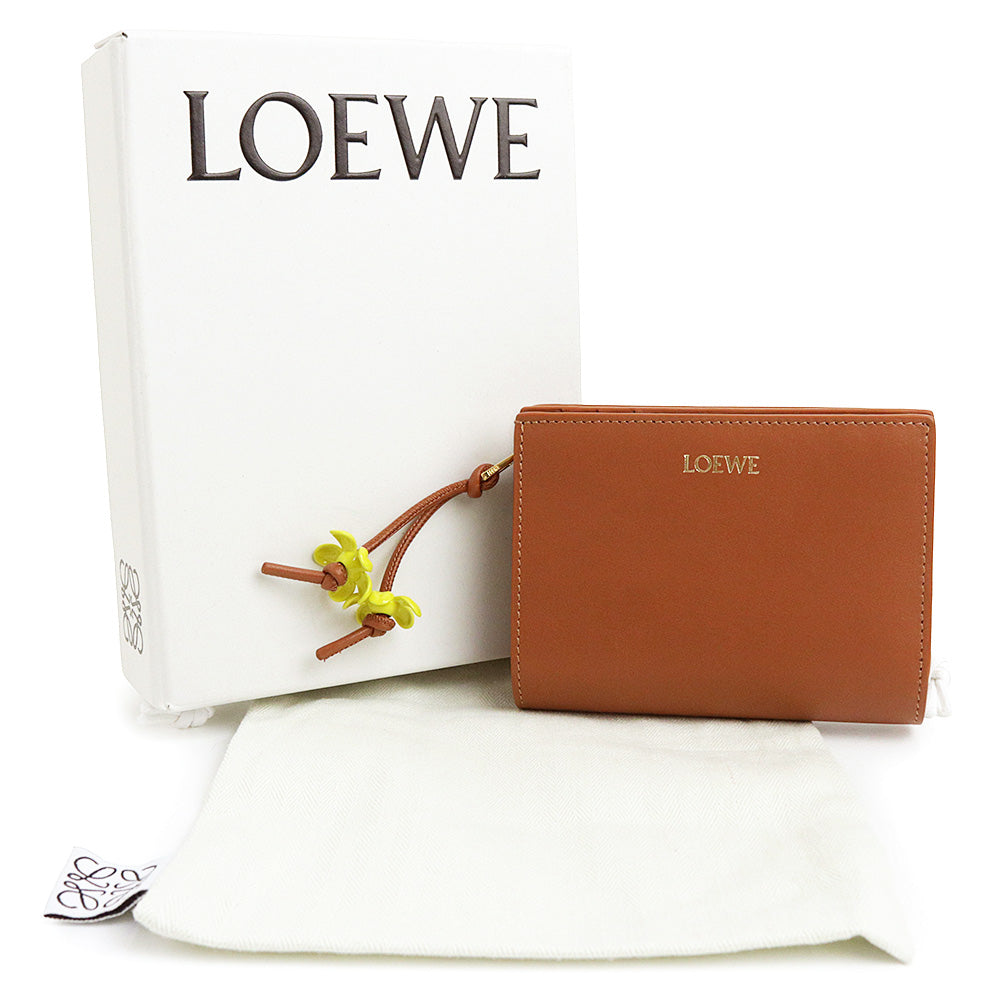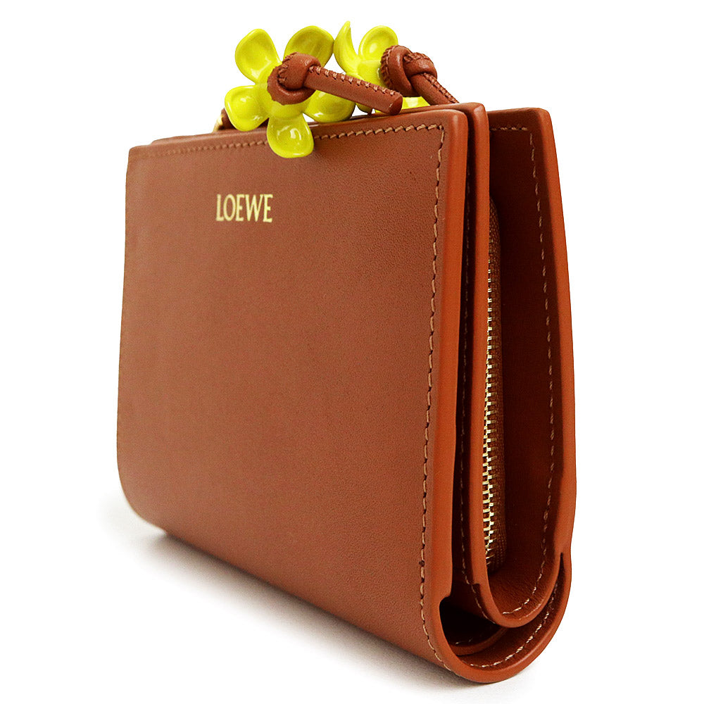【未使用 展示品】ロエベ LOEWE コンパクト ウォレット 二つ折り財布 シャイニーナパカーフ レザー タン ブラウン サニー イエロー ゴールド金具 C643NCWX02