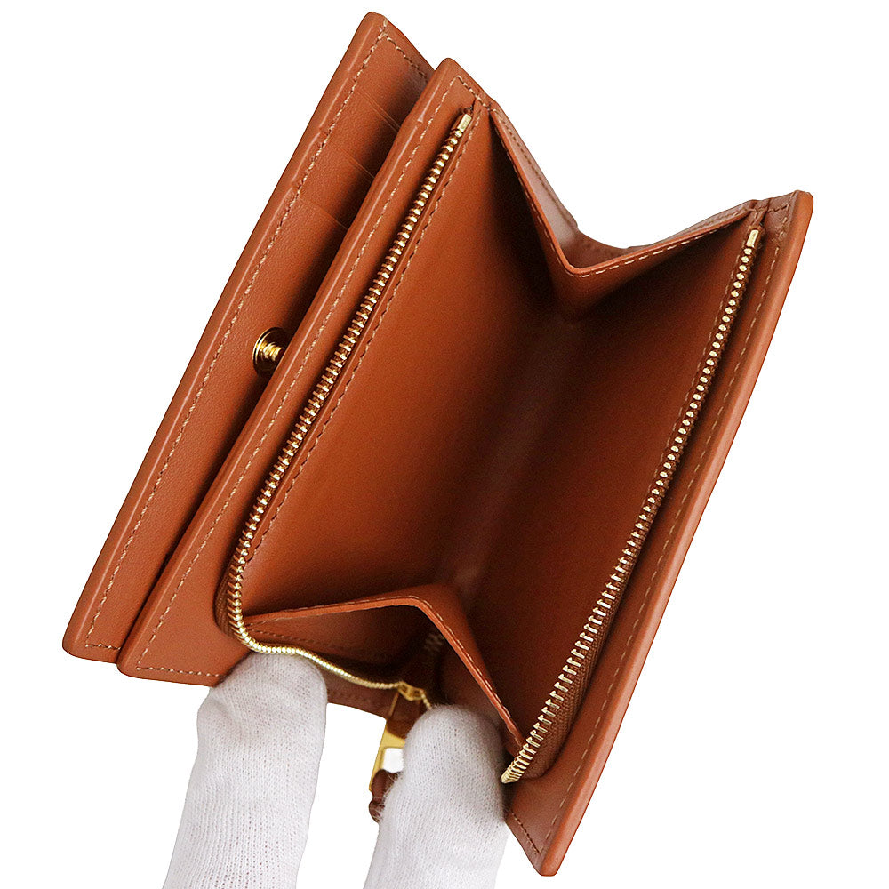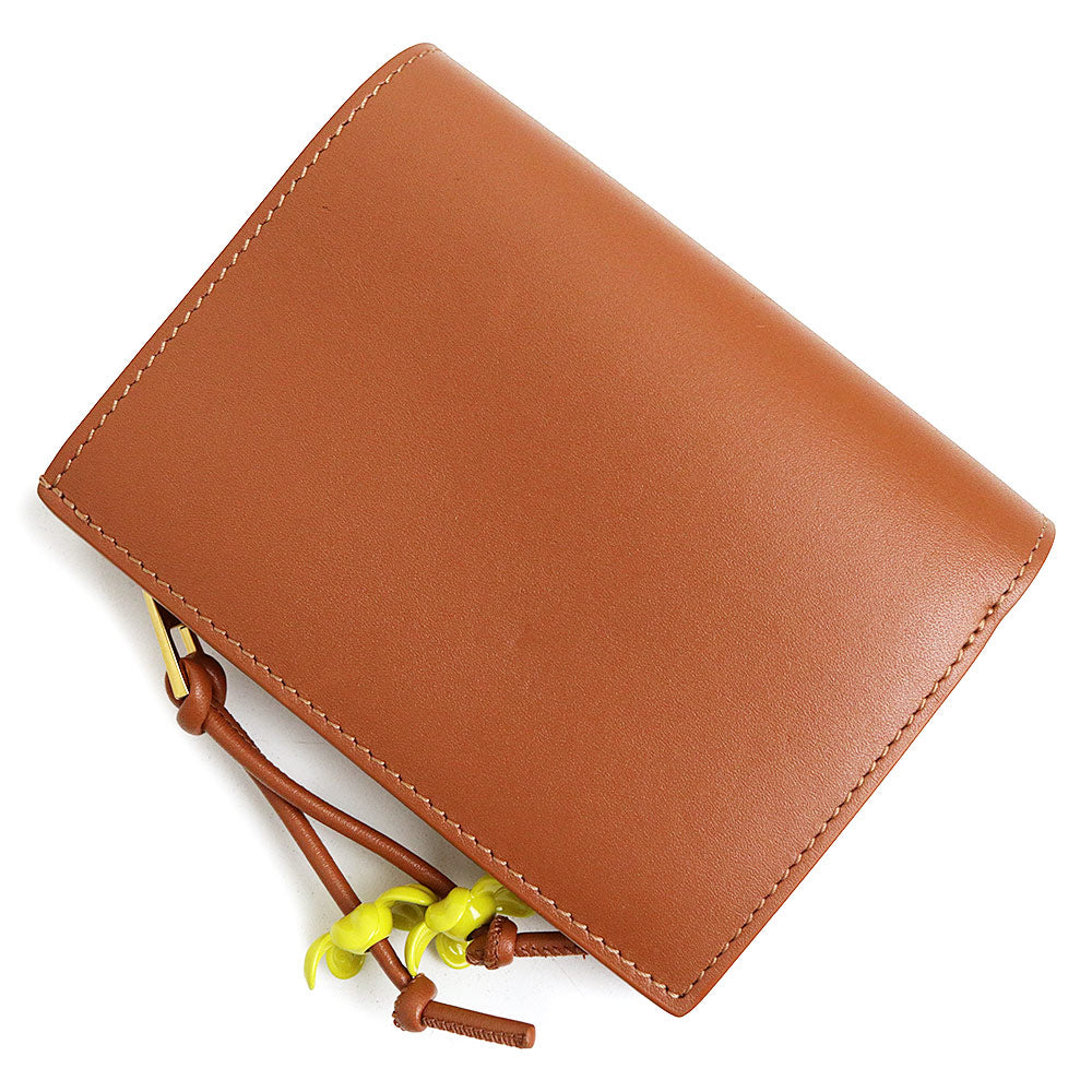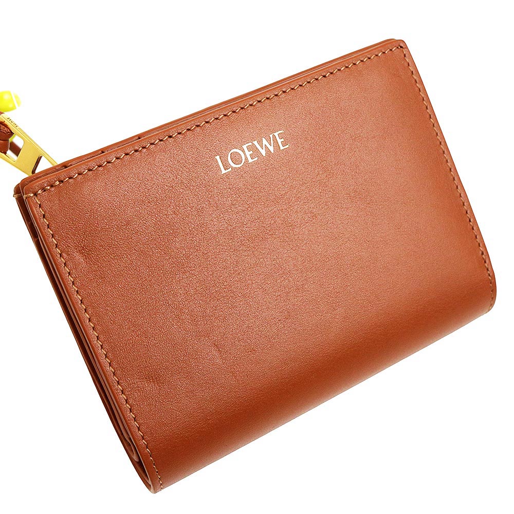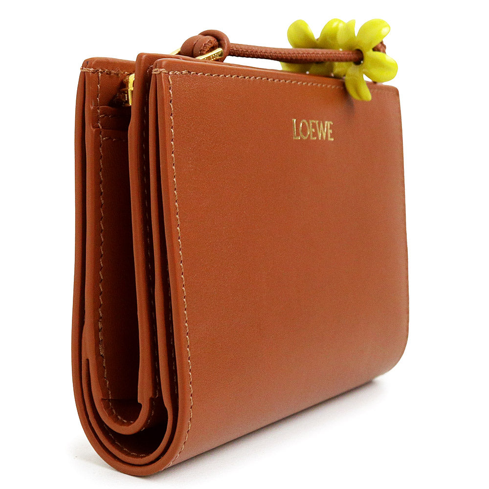 【未使用 展示品】ロエベ LOEWE コンパクト ウォレット 二つ折り財布 シャイニーナパカーフ レザー タン ブラウン サニー イエロー ゴールド金具 C643NCWX02