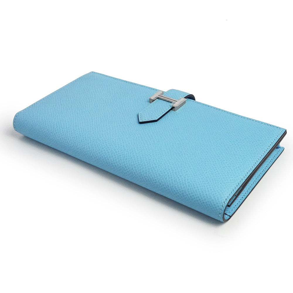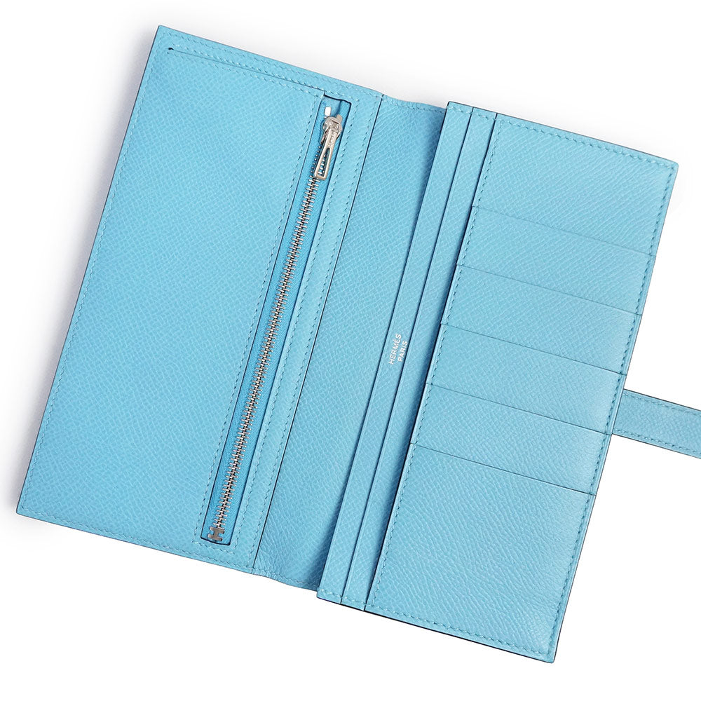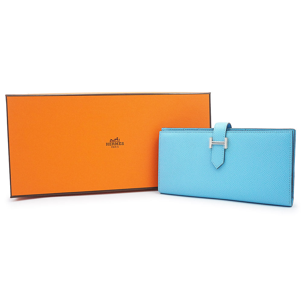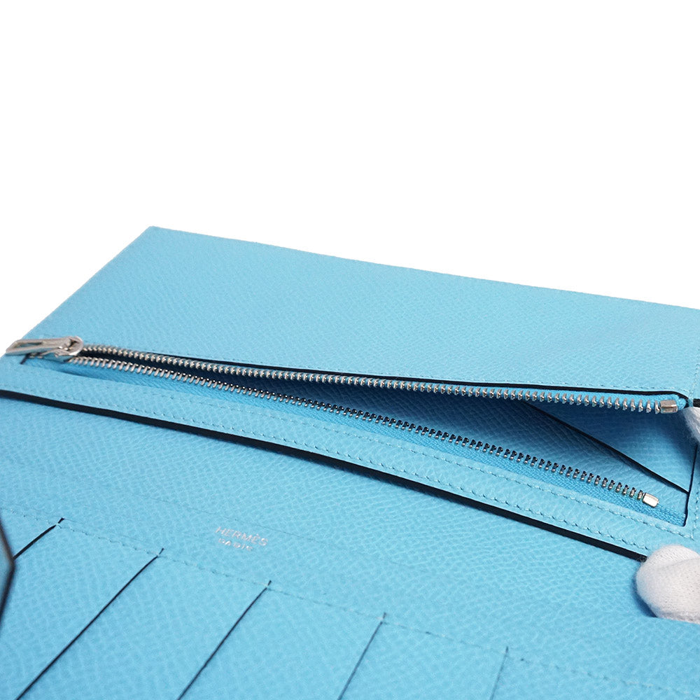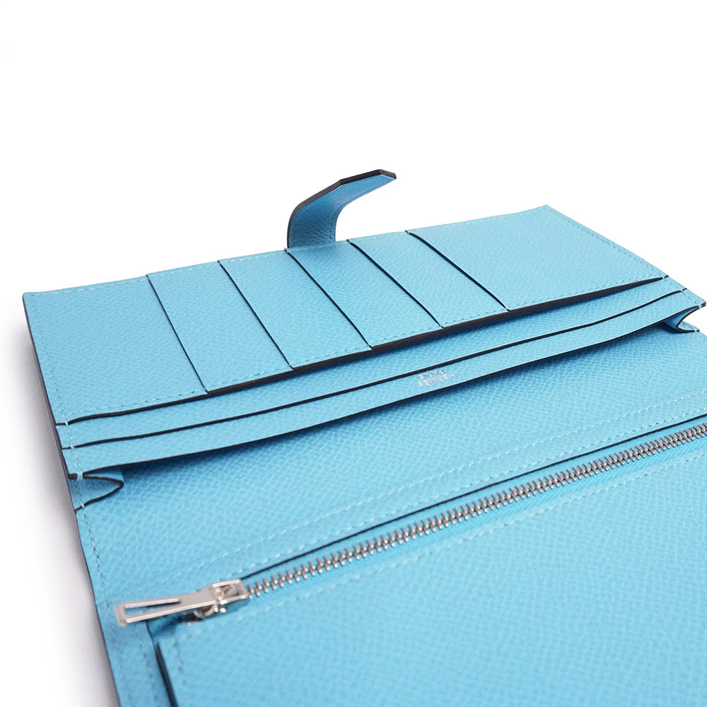 【新品・未使用品】エルメス HERMES ベアン スフレ 二つ折り長財布 ヴォーエプソン レザー セレスト セレステ ライトブルー シルバー金具 B刻印 箱付