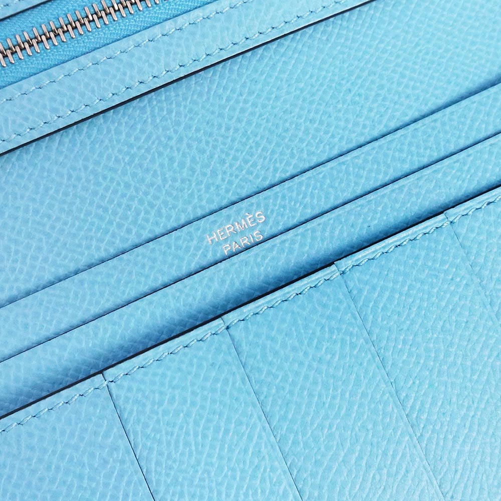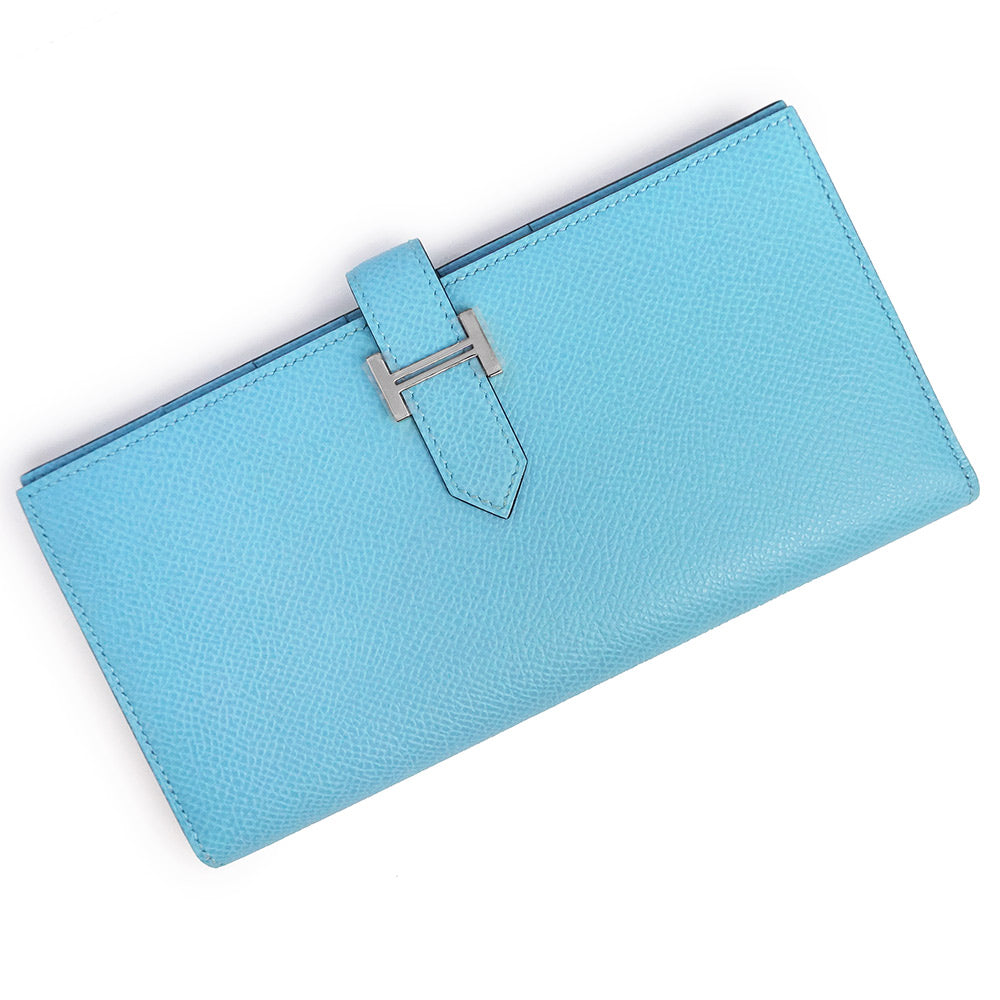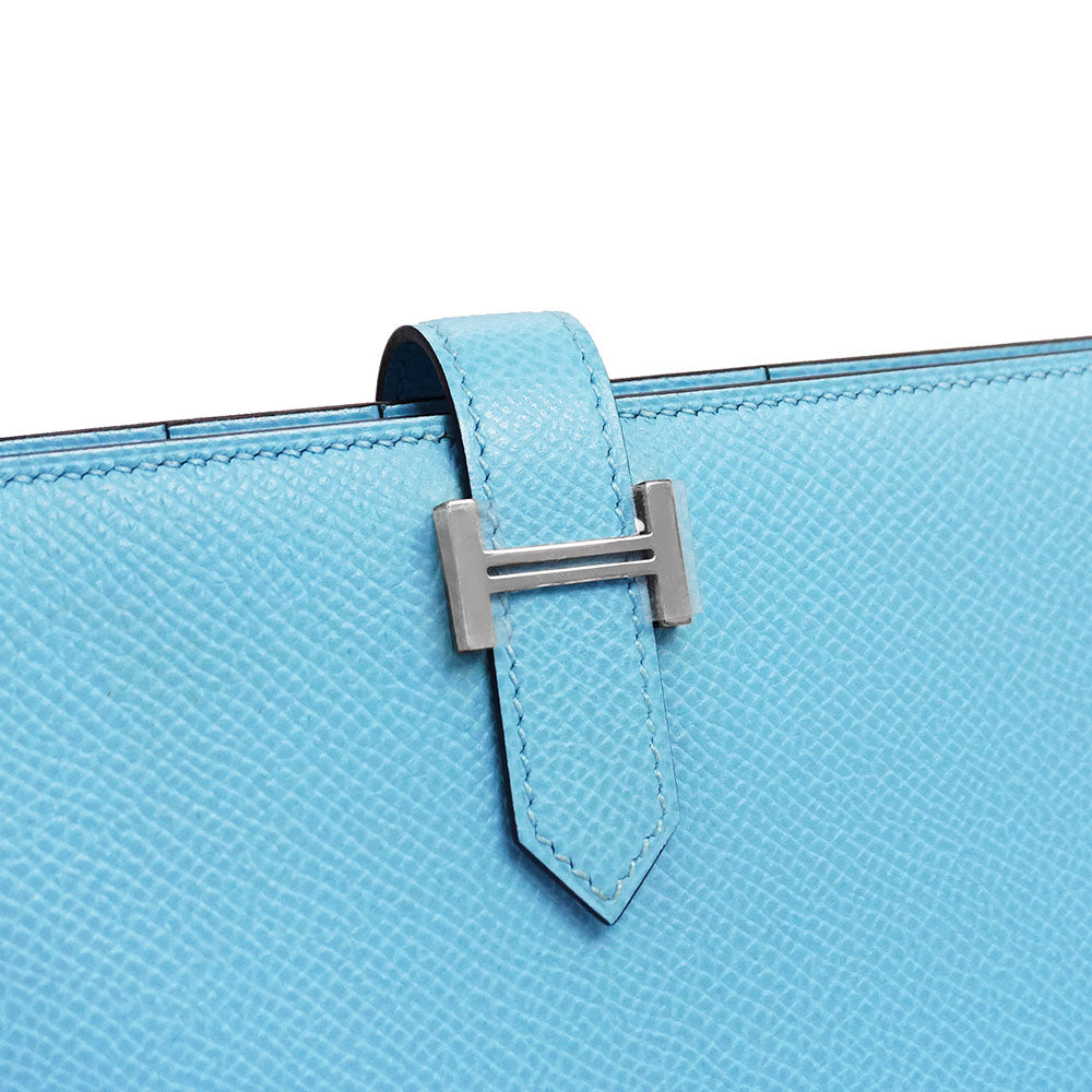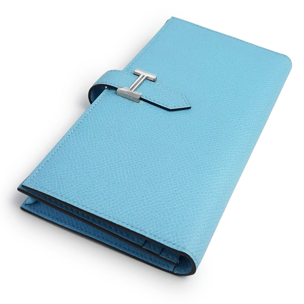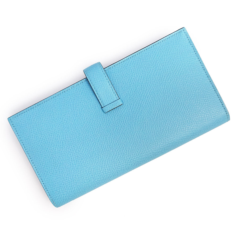 【新品・未使用品】エルメス HERMES ベアン スフレ 二つ折り長財布 ヴォーエプソン レザー セレスト セレステ ライトブルー シルバー金具 B刻印 箱付