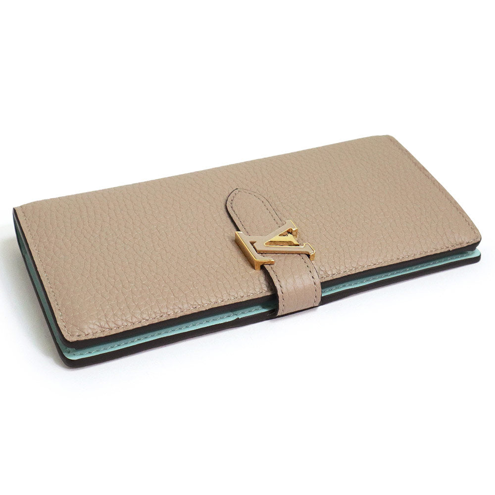 【新品・未使用品】ルイ ヴィトン LOUIS VUITTON LV ヴェルティカル ウォレット カプシーヌ 二つ折り長財布 トリヨンレザー バイカラー ガレ ミントブルー ベージュ ゴールド金具 M81367 箱付