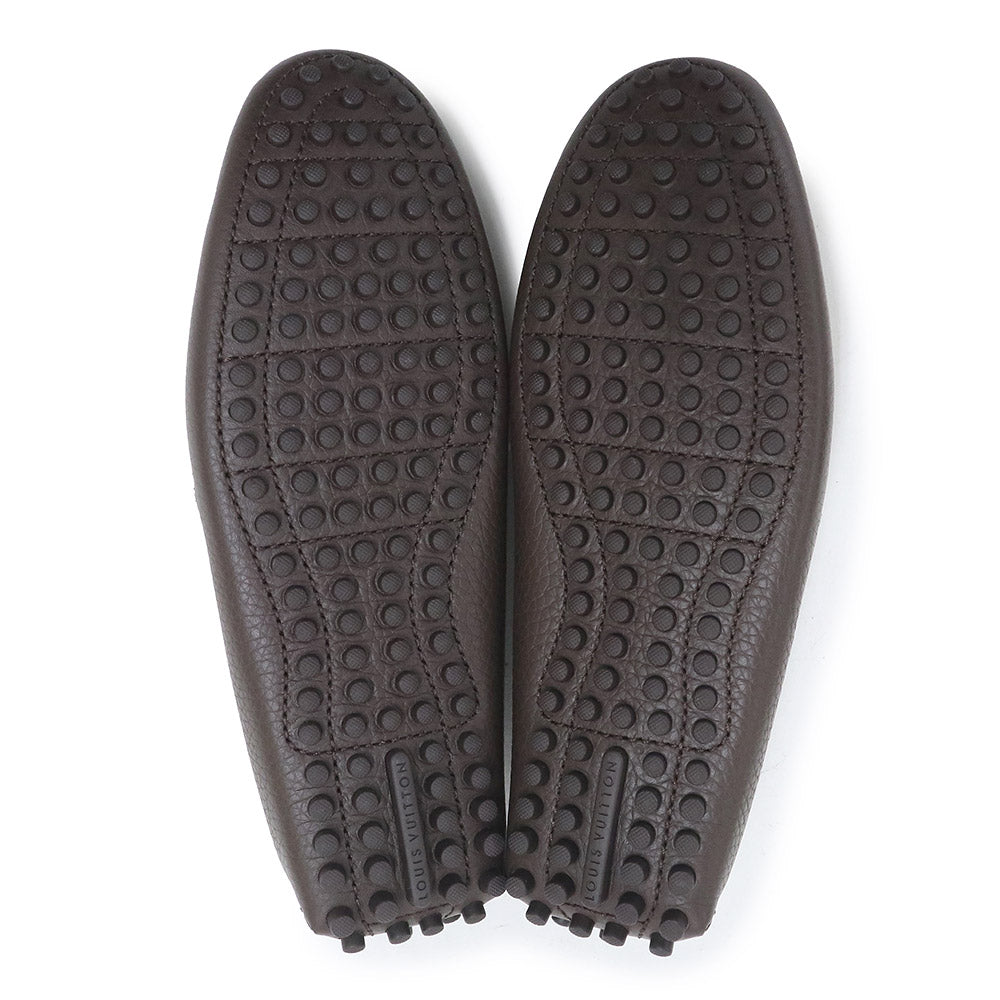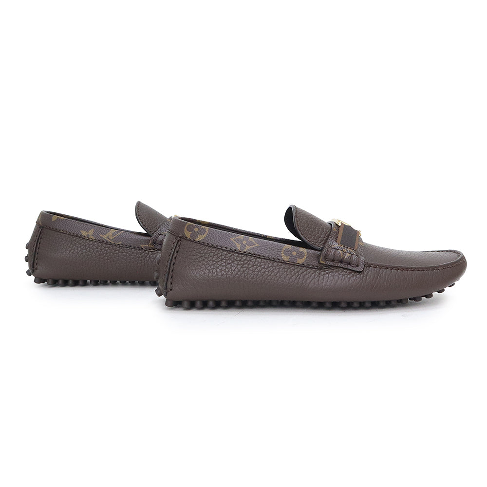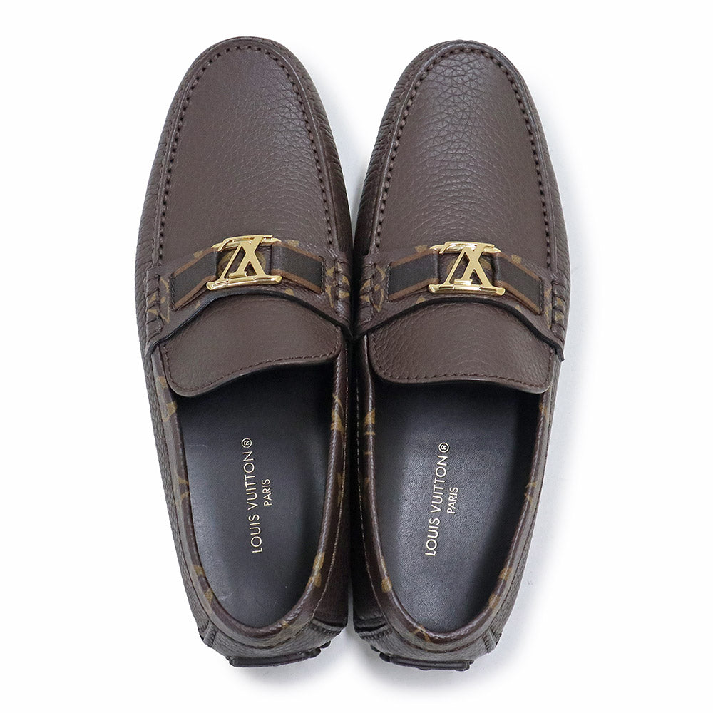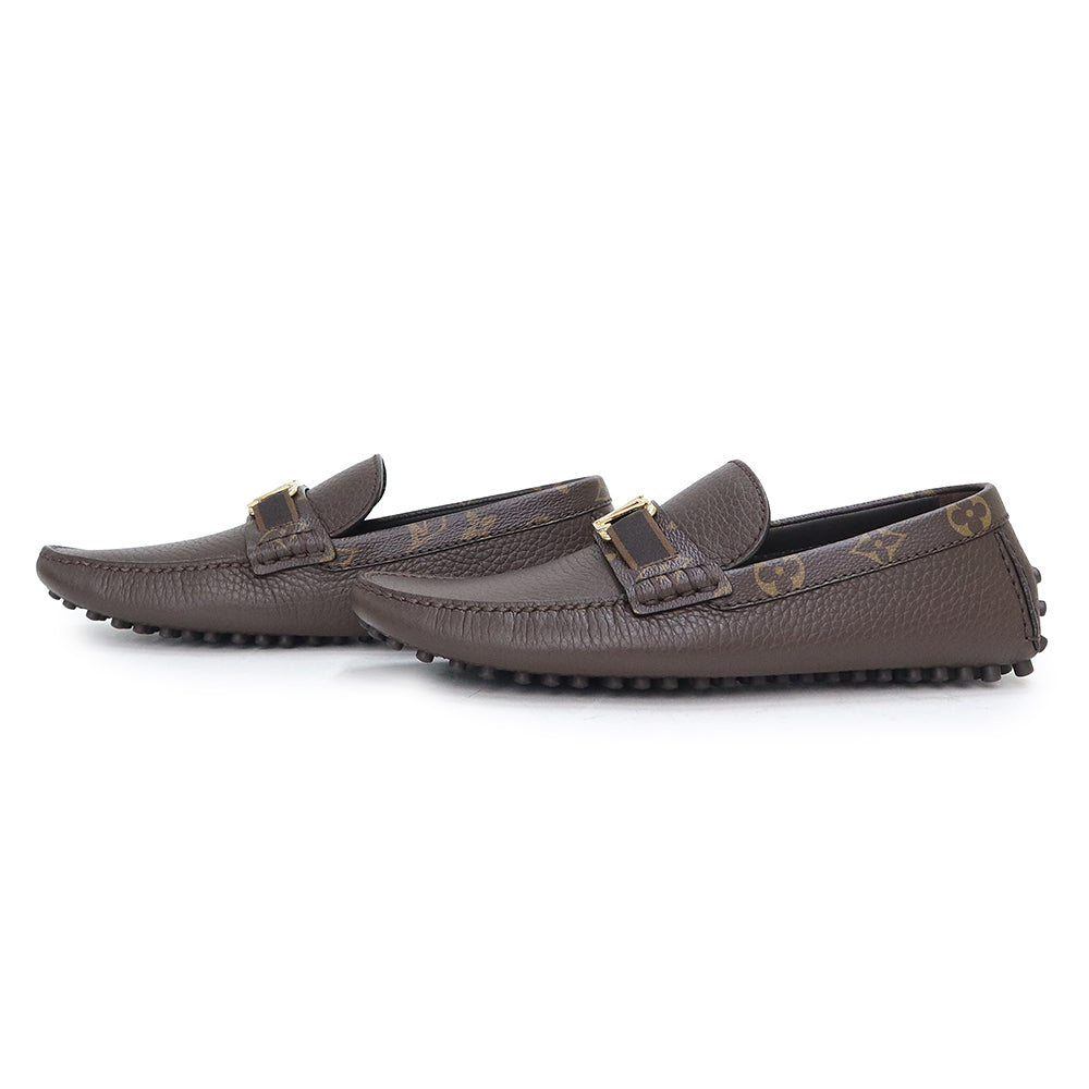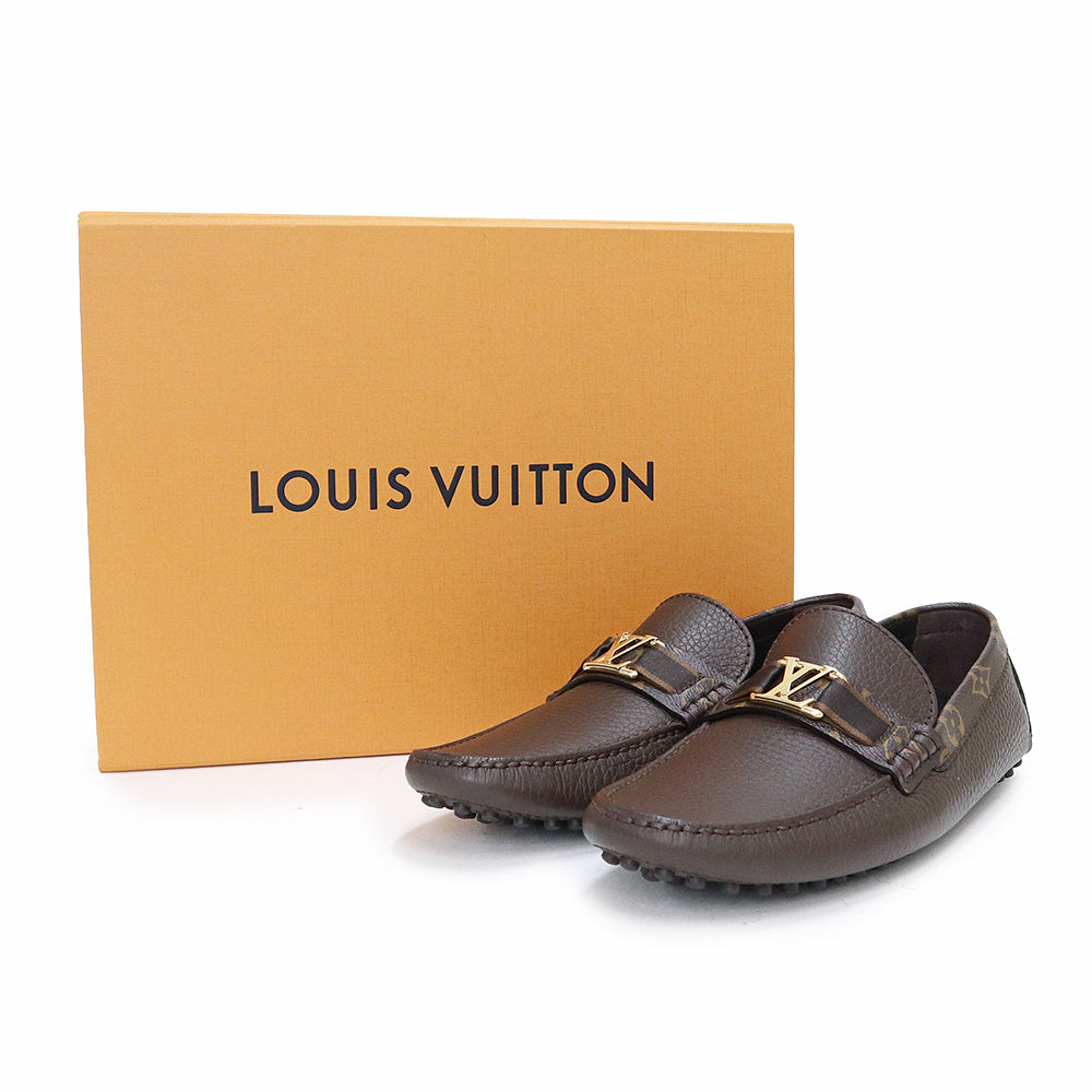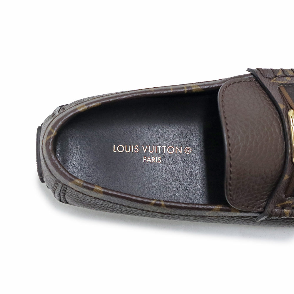 【未使用保管品】ルイ ヴィトン LOUIS VUITTON ホッケンハイム ライン モカシン ドライビングシューズ ローファー 靴 #5 24.5cm レザー モノグラム ブラウン ゴールド金具