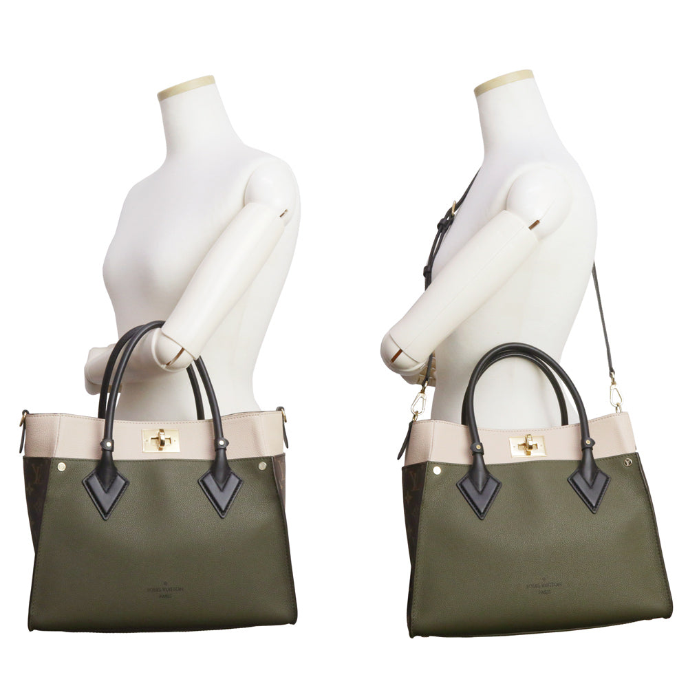 【未使用 展示品】ルイ ヴィトン LOUIS VUITTON オンマイサイド MM 2way ショルダー ハンドバッグ 斜め掛け グレインカーフレザー モノグラム ローリエ グリーン ブラウン ゴールド金具 M55302
