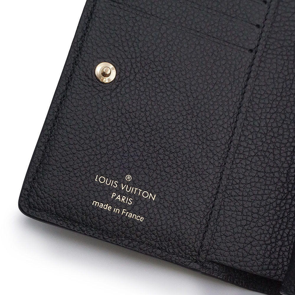 モノグラム・アンプラント レザーの「ポルトフォイユ・クレア」。紙幣用コンパートメントやファスナー付きコインポケット、6つのカードスロットなど、小ぶりながら実用的な機能を多数備えたアイテムです。