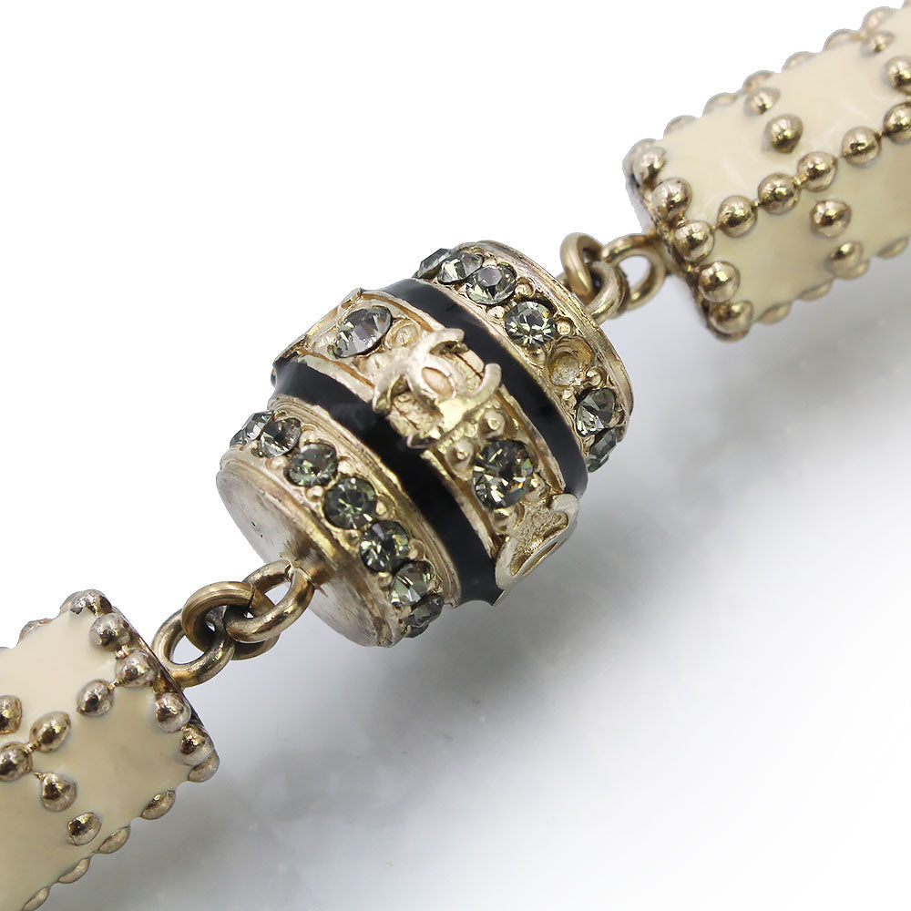 シャネルのチェーンネックレス。ビーズメッシュに、アジア風の黒と白のエナメルモチーフとラインストーンが散りばめられています。大人の雰囲気を醸し出しながら、かわいらしさも兼ね備えた高級感あふれるアイテムです。 |