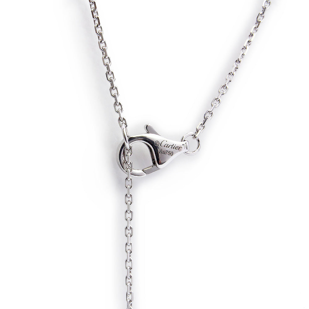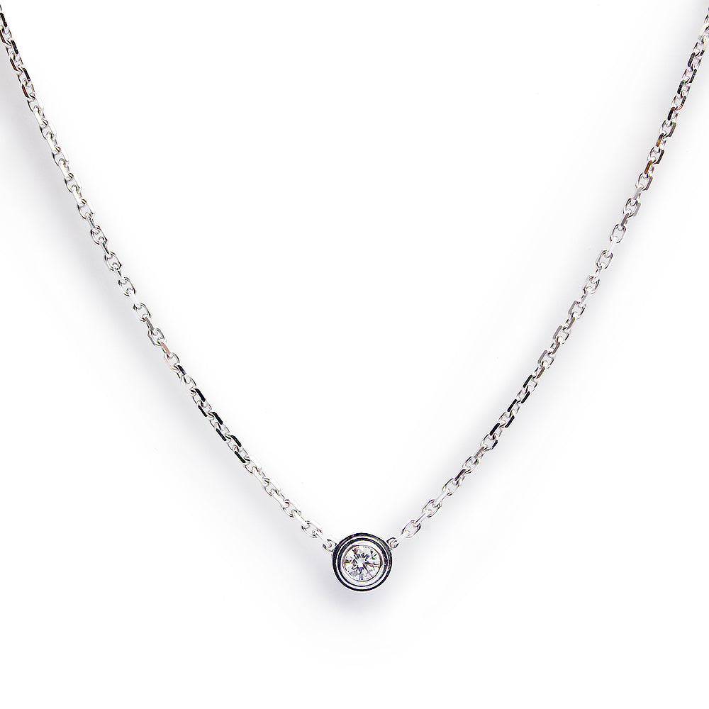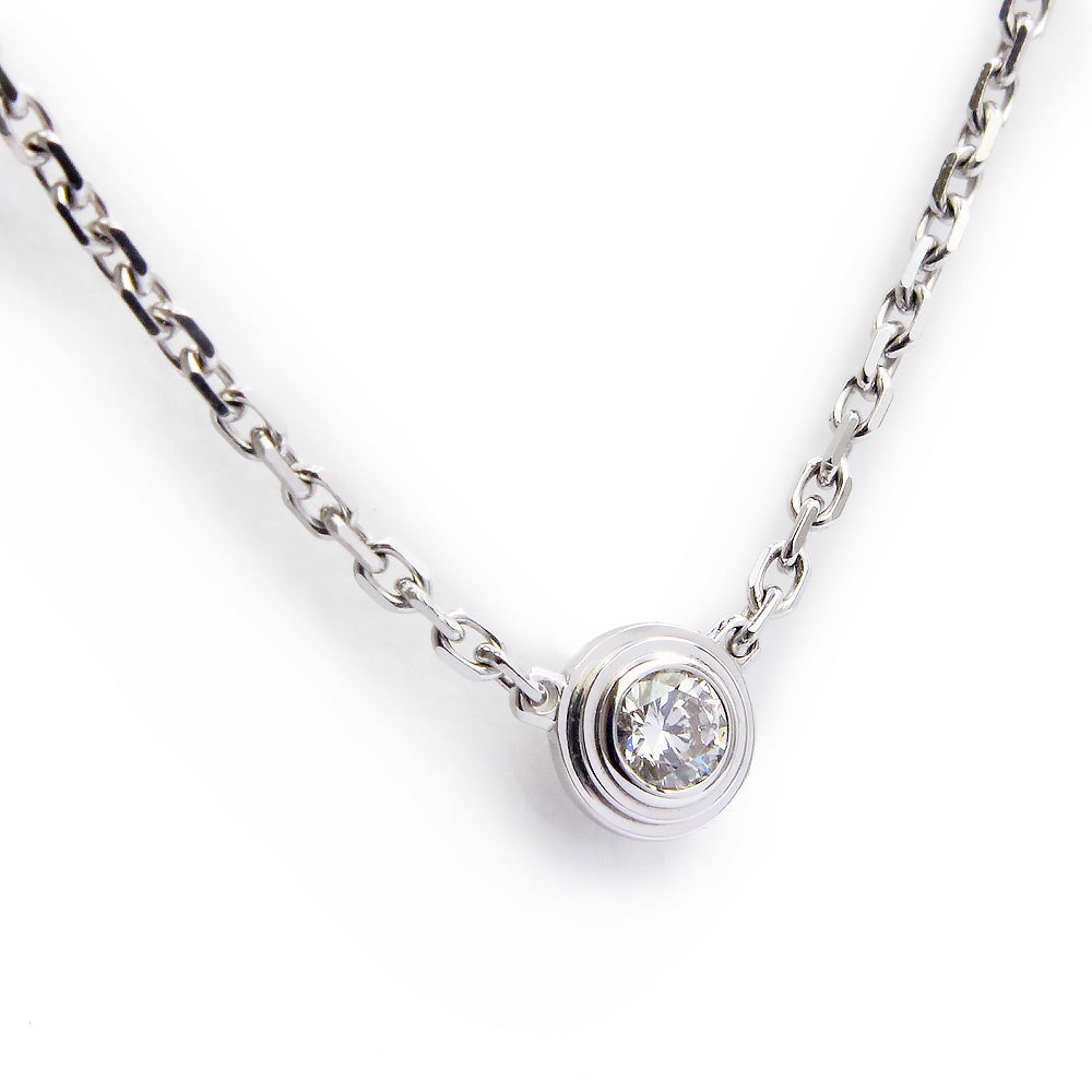 カルティエの「ダムール (ディアマン)」ネックレス。シンプルかつ優美で繊細なコレクション。カルティエの宝石職人が厳選したダイヤモンドが、優美なホワイトゴールドチェーンにあしらわれています。 |