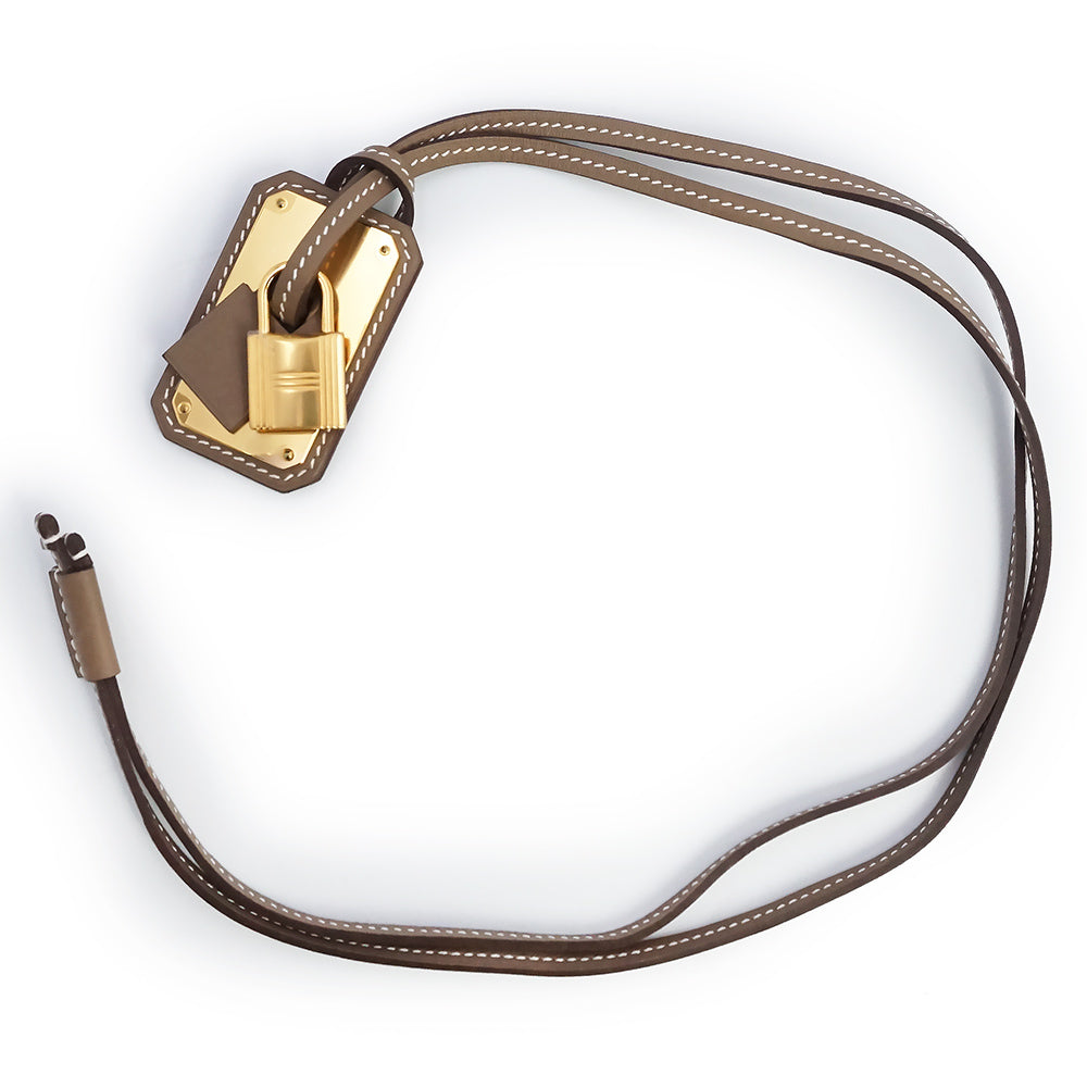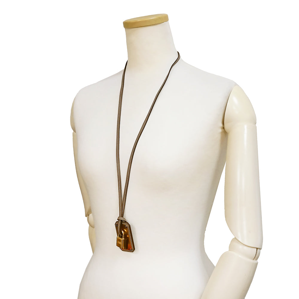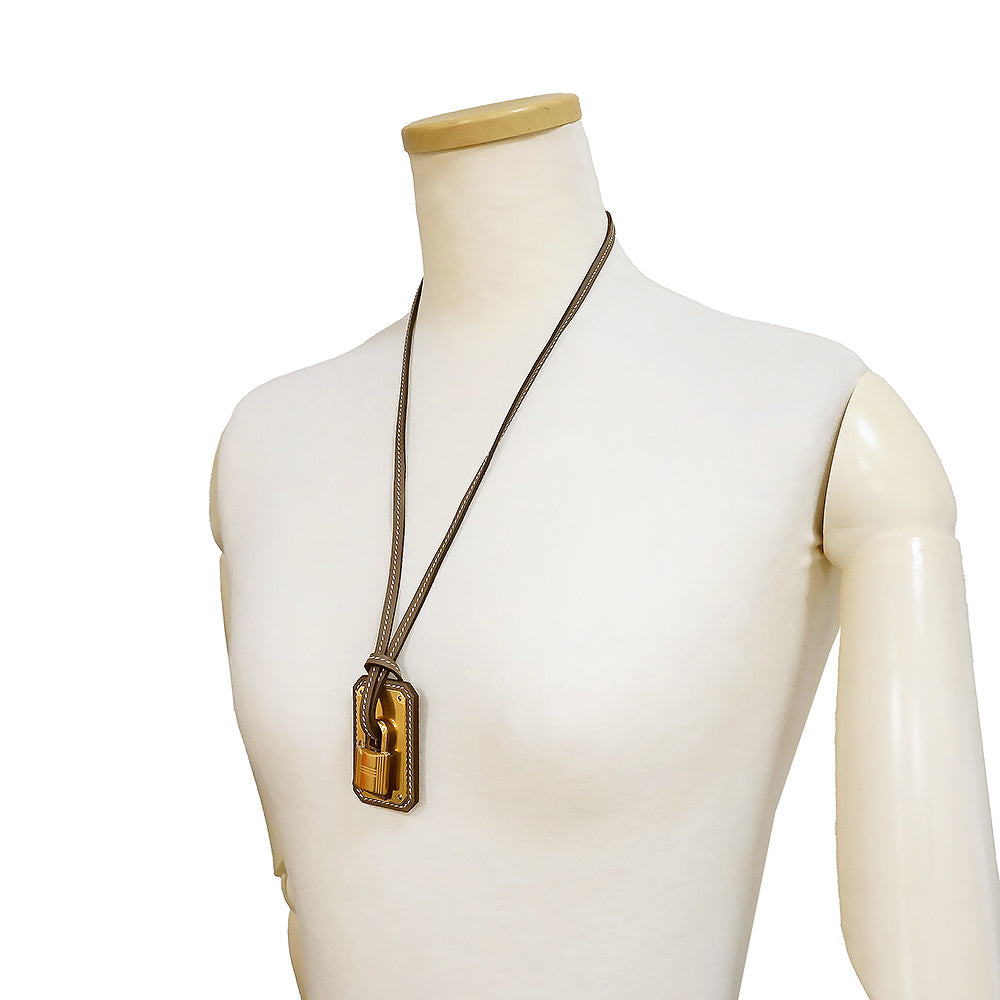 【新品・未使用品】エルメス HERMES オーケリー GM カデナ ペンダント ネックレス ヴォースイフト レザー エトゥープ エトープ グレージュ ゴールド金具 D刻印 箱付