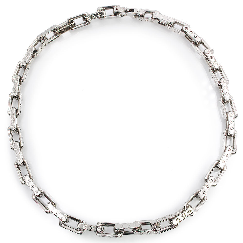 【美品】ルイ ヴィトン LOUIS VUITTON コリエ チェーン モノグラム ネックレス シルバー M64196