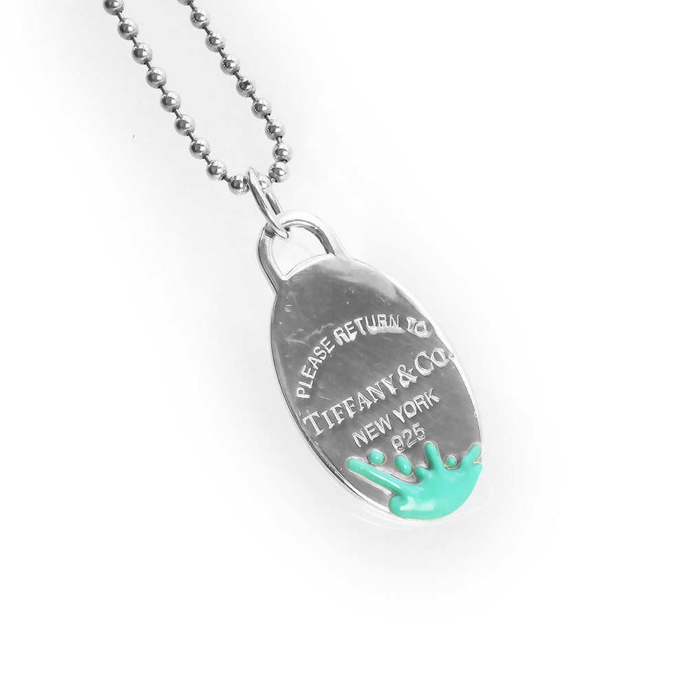 【中古】ティファニー TIFFANY&Co. リターン トゥ カラースプラッシュ タグ チャーム ペンダント ネックレス SV925 スターリングシルバー エナメル ティファニーブルー