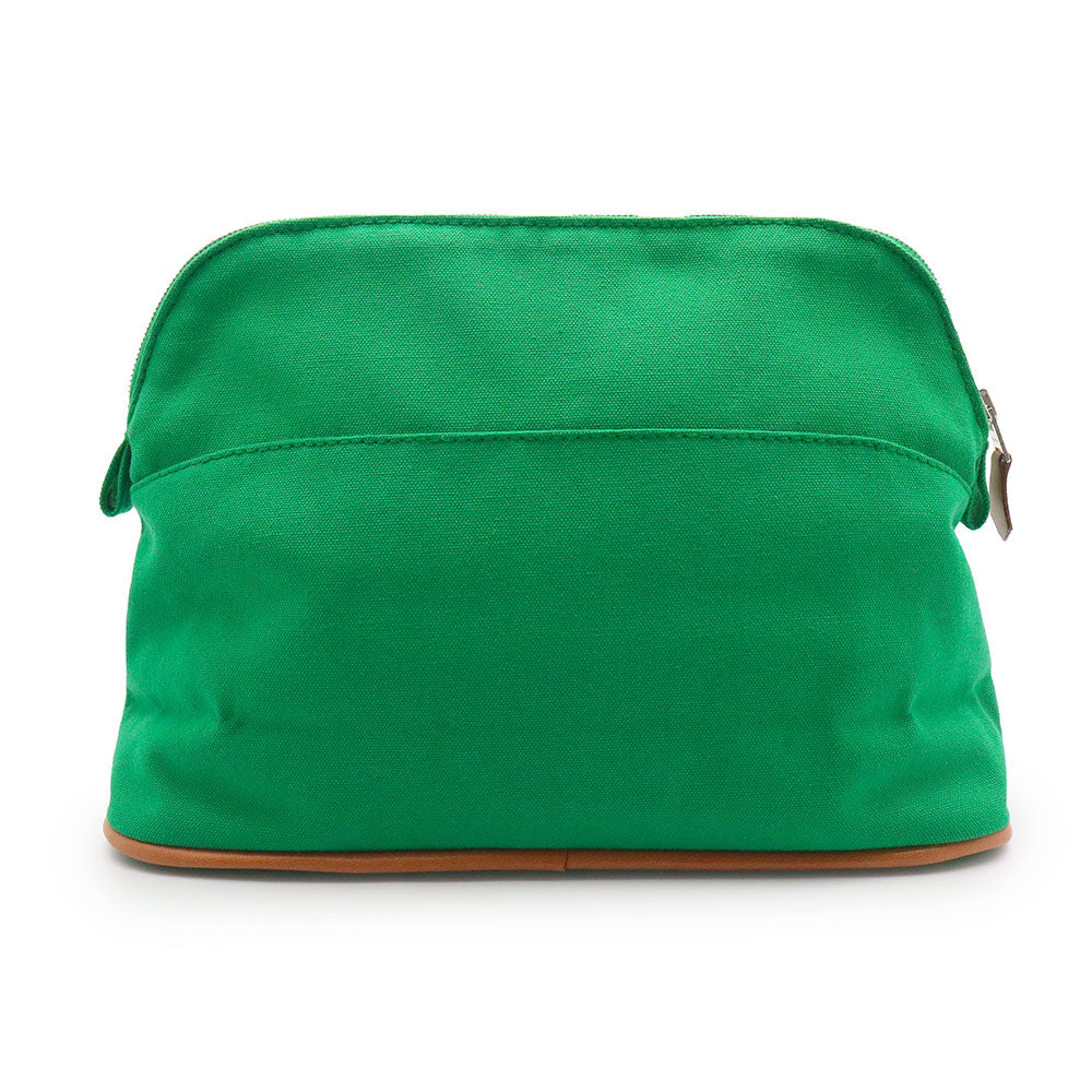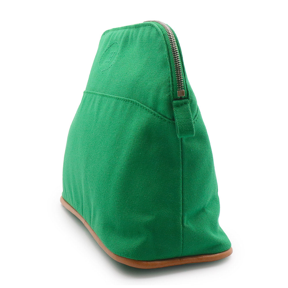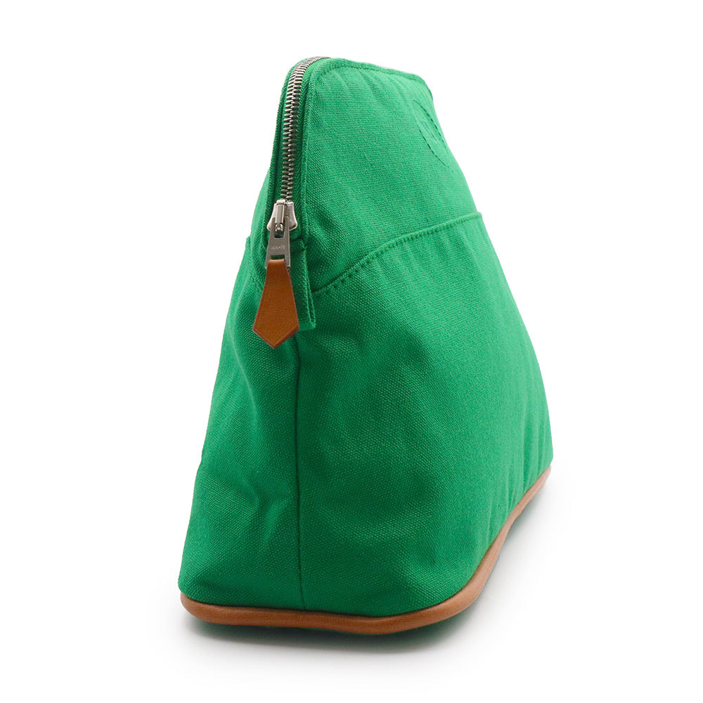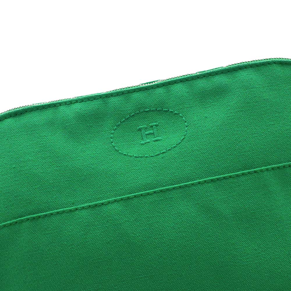 【未使用 展示品】エルメス HERMES ボリード MM 25 コスメ 化粧 ポーチ コットン100% キャンバス グリーン シルバー金具