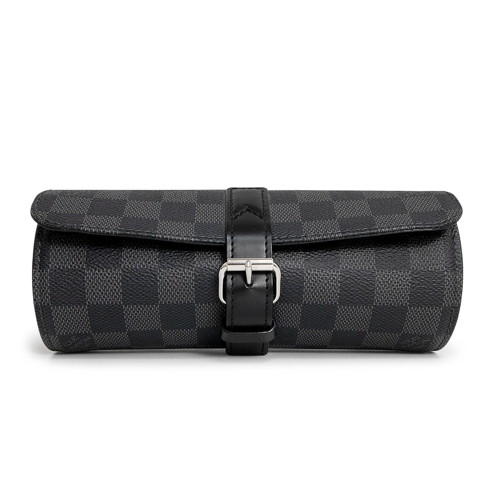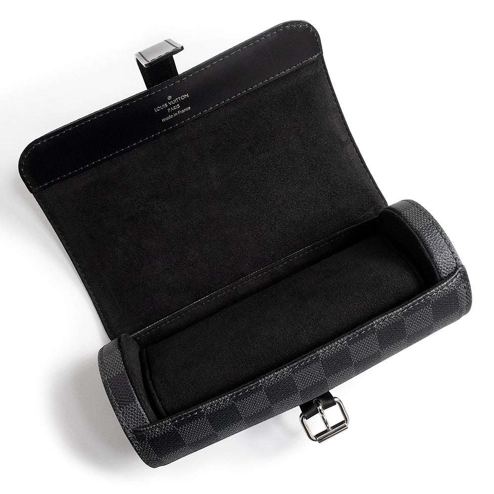 【美品】ルイ ヴィトン LOUIS VUITTON エテュイ 3 モントル ウォッチケース 腕時計 ポーチ ダミエグラフィット ブラック シルバー金具 N41137
