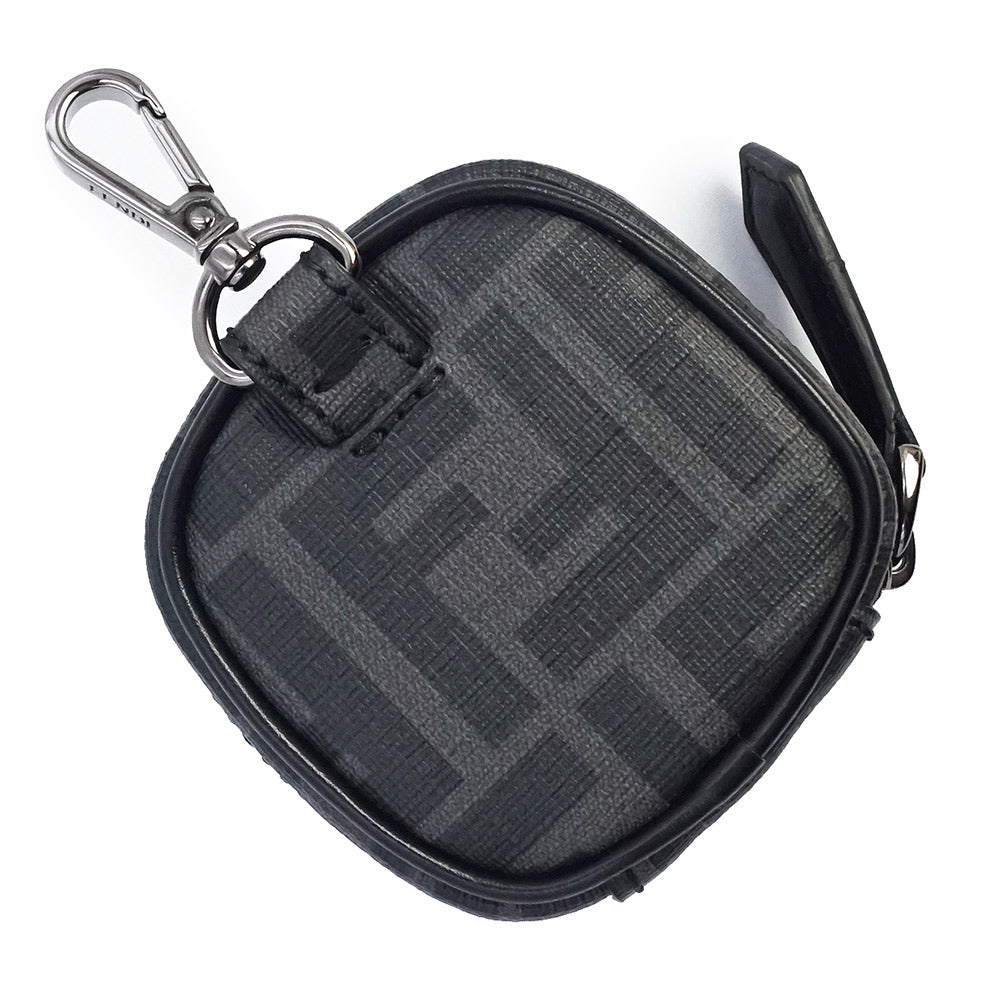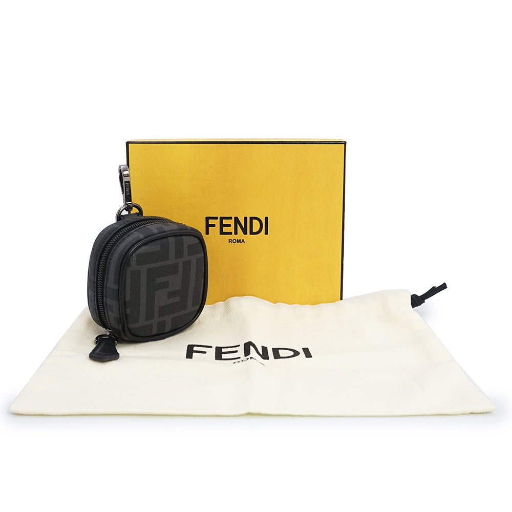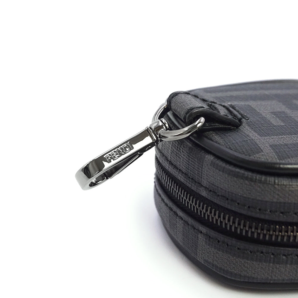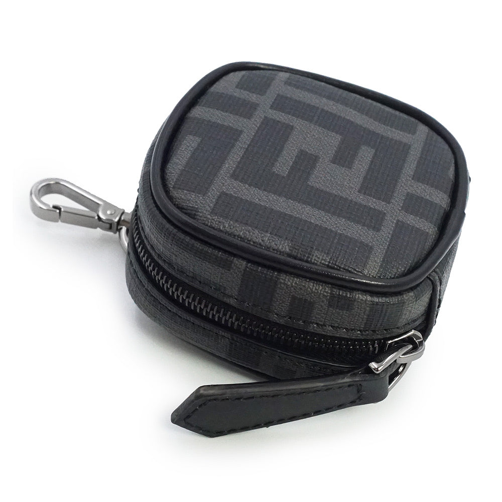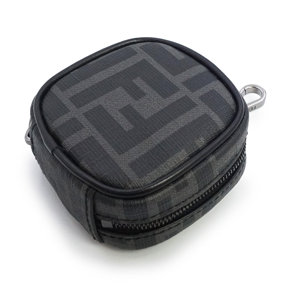 【新品・未使用品】フェンディ FENDI ズッカ ミニポーチ AirPods イヤホンケース ポーチ PVCコーティングキャンバス カーフスキン レザー グレー ブラック ダークシルバー金具 7AS121 箱付
