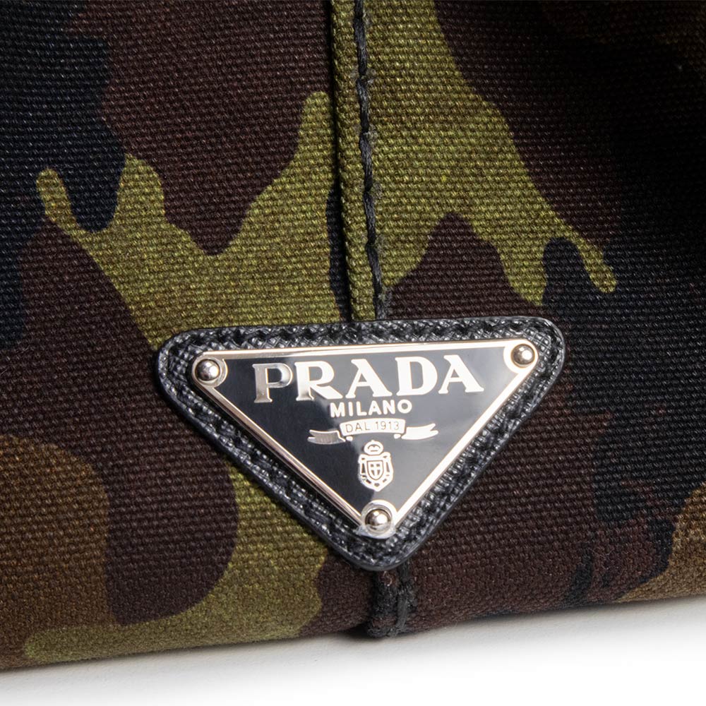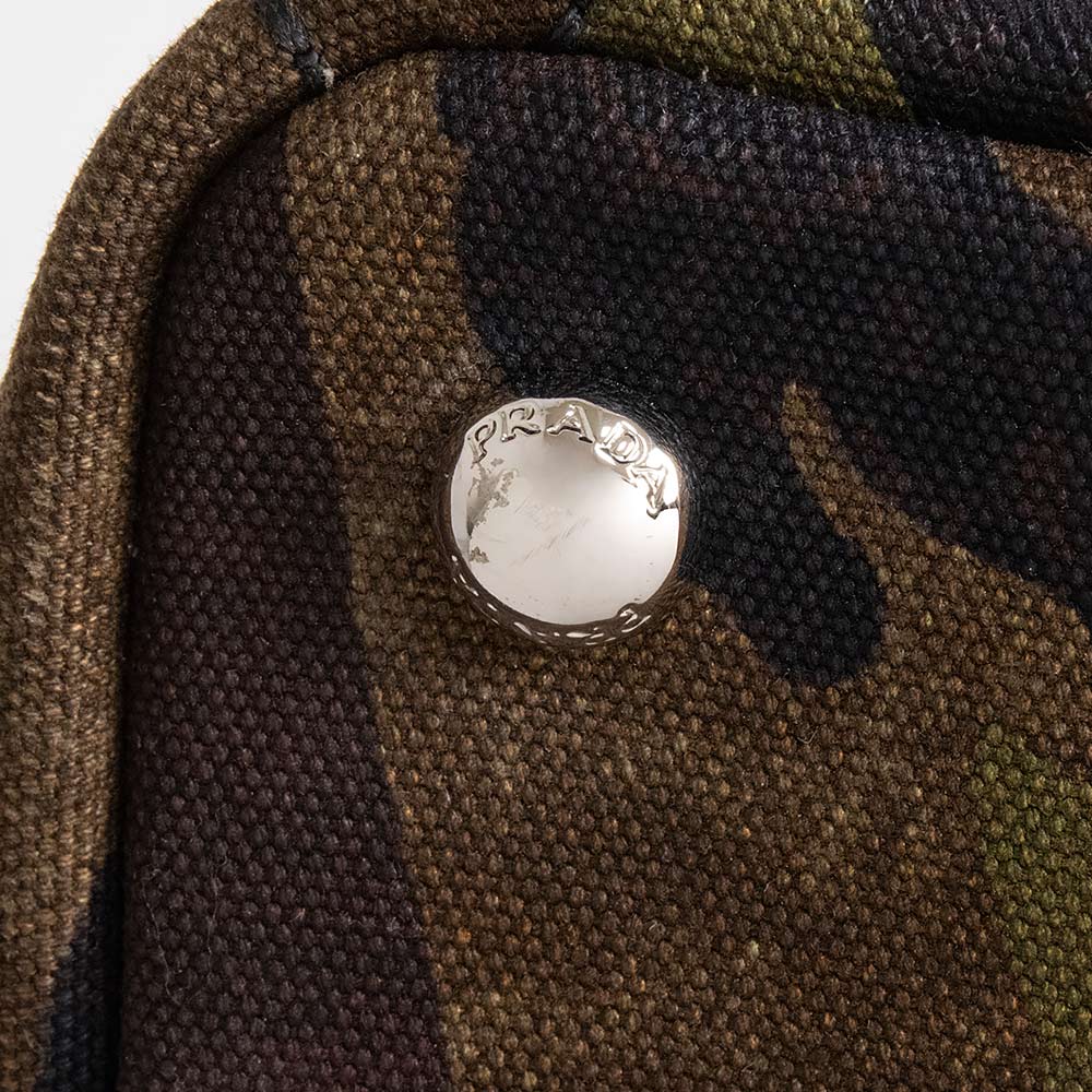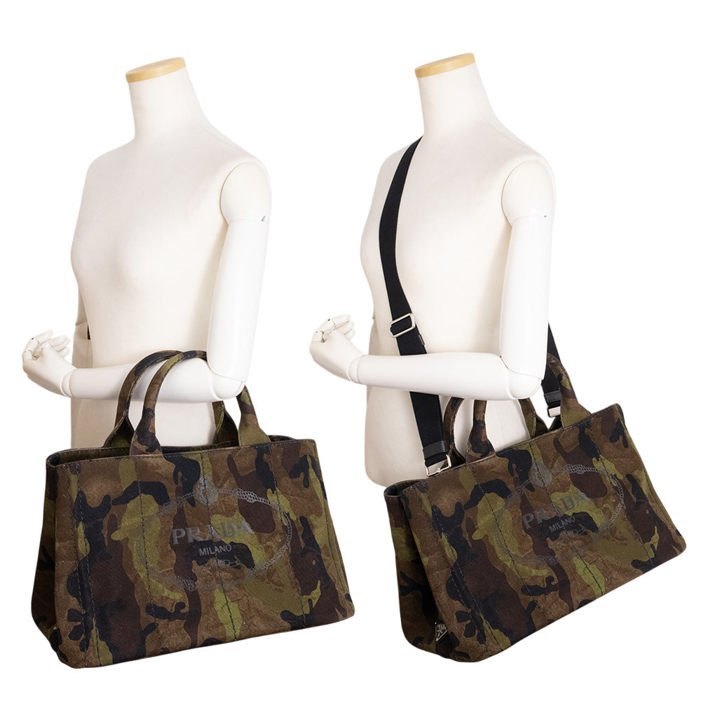 【未使用 展示品】プラダ PRADA CANAPA CAMOUFLA カナパ カモフラージュ 迷彩 2WAY 斜め掛け ショルダー ハンドバッグ コットンデニム MIMETICO カーキ シルバー金具 B2642B