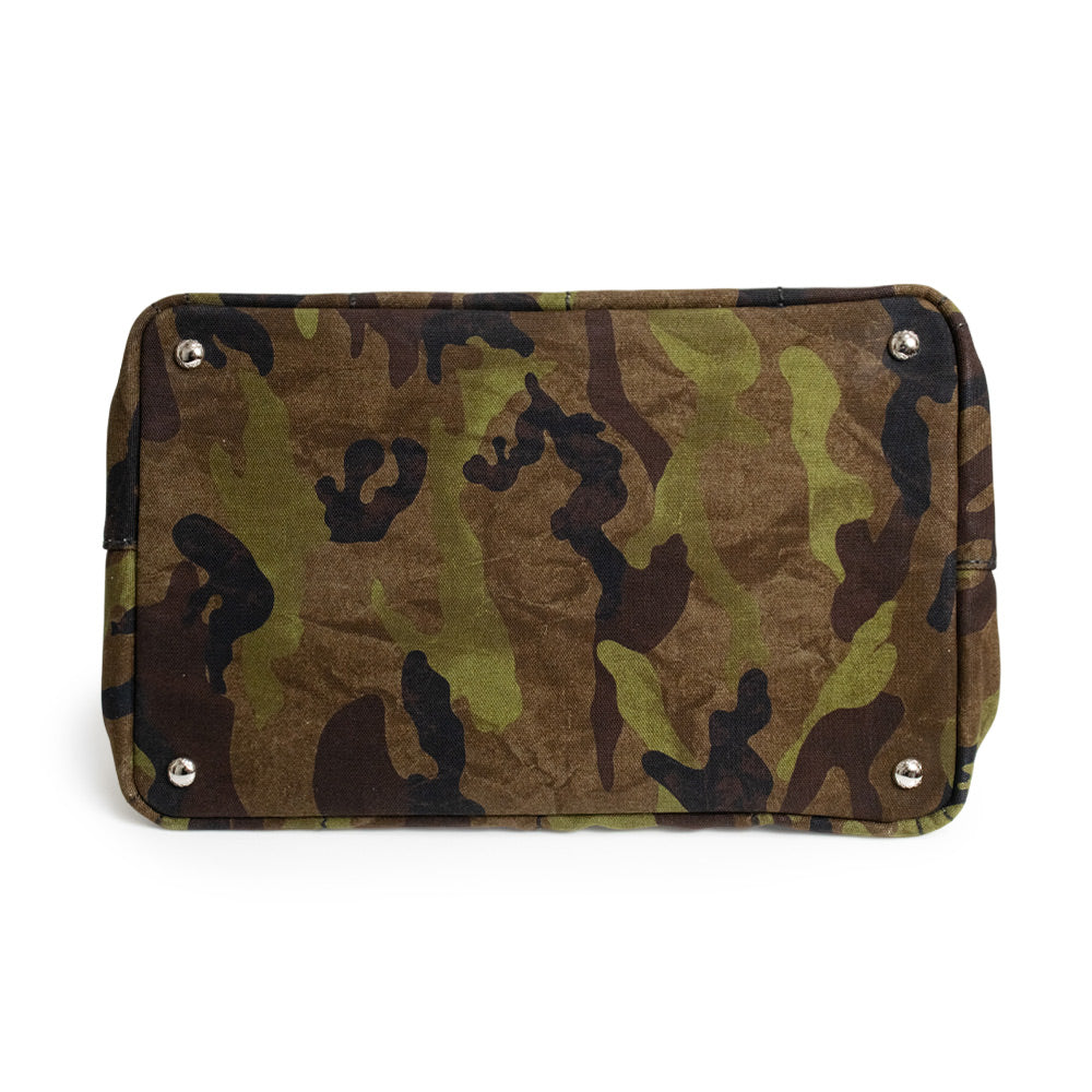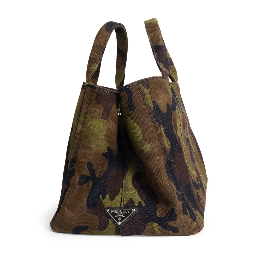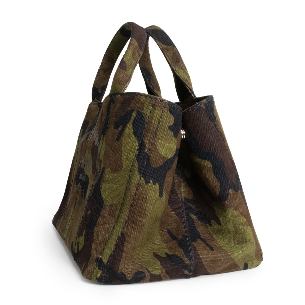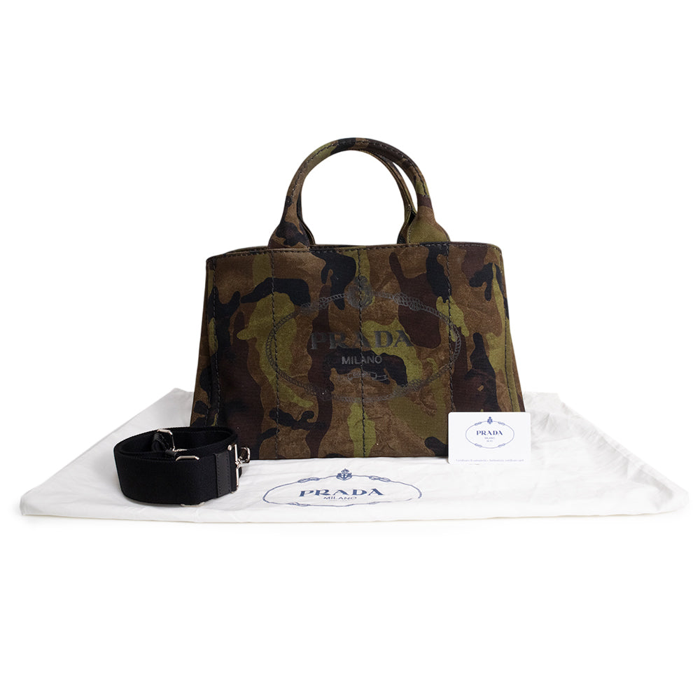 【未使用 展示品】プラダ PRADA CANAPA CAMOUFLA カナパ カモフラージュ 迷彩 2WAY 斜め掛け ショルダー ハンドバッグ コットンデニム MIMETICO カーキ シルバー金具 B2642B