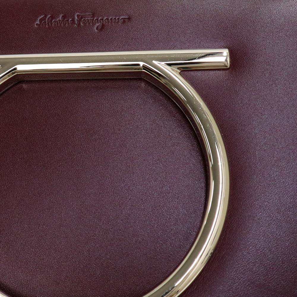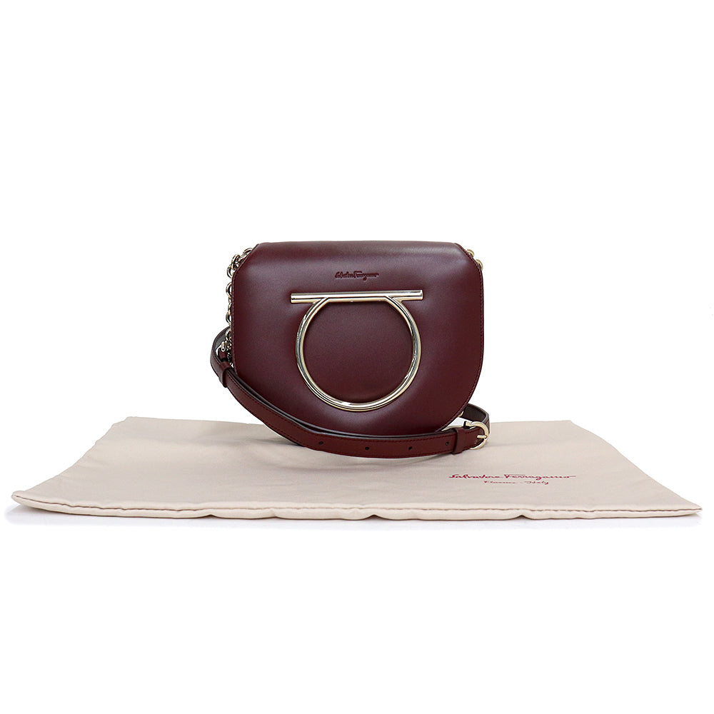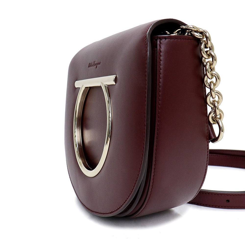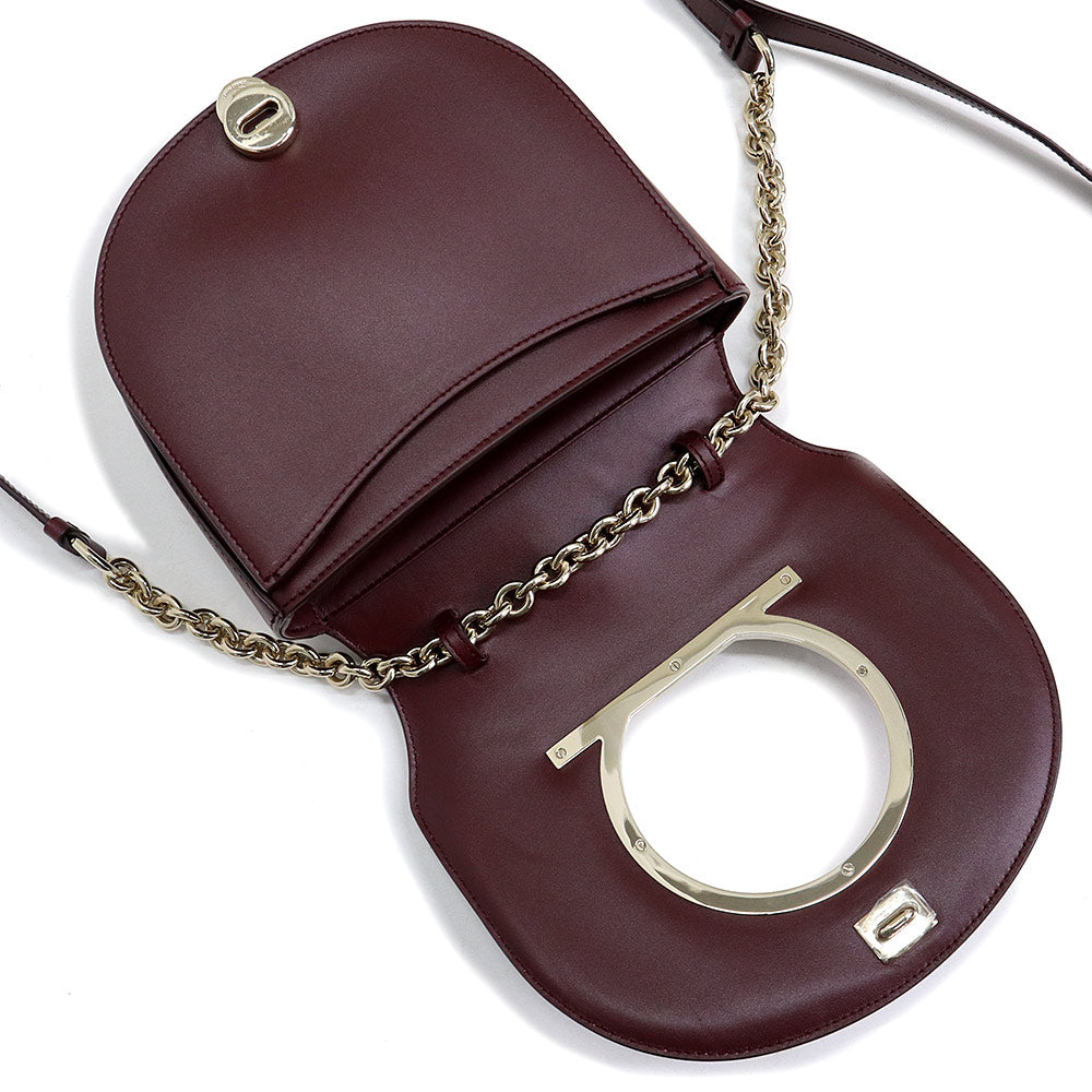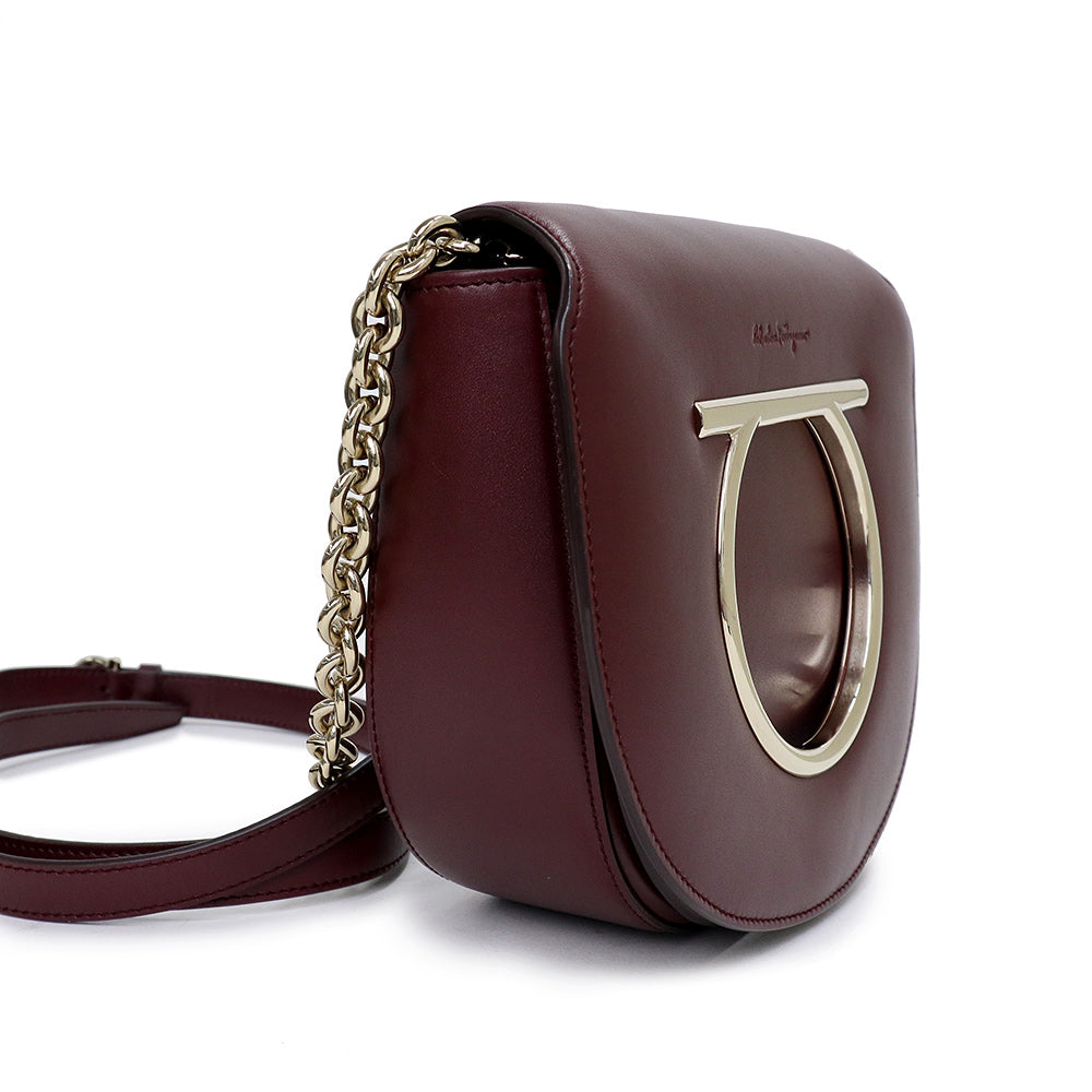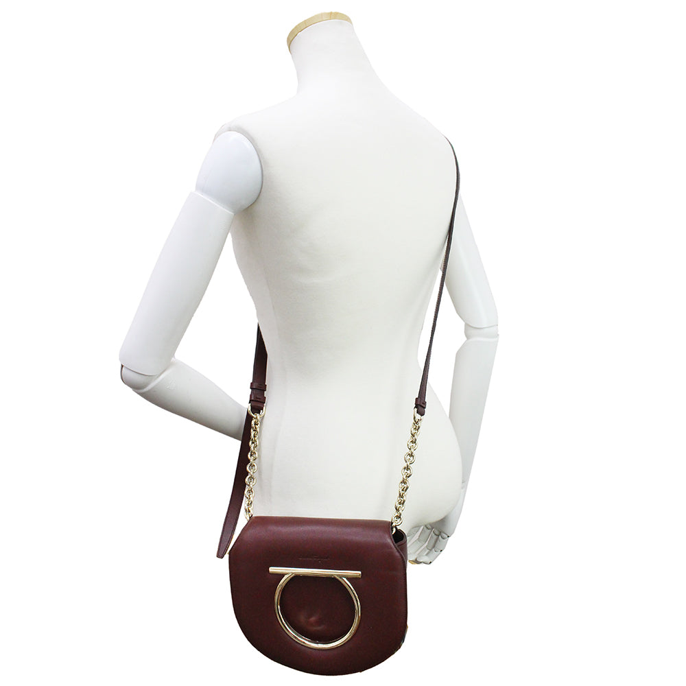 【未使用 展示品】サルヴァトーレフェラガモ Salvatore Ferragamo ガンチーニ チェーン ショルダー クロスボディ バッグ 斜め掛け カーフスキン レザー ワインレッド 赤 ゴールド金具 AU 21 G998 694631