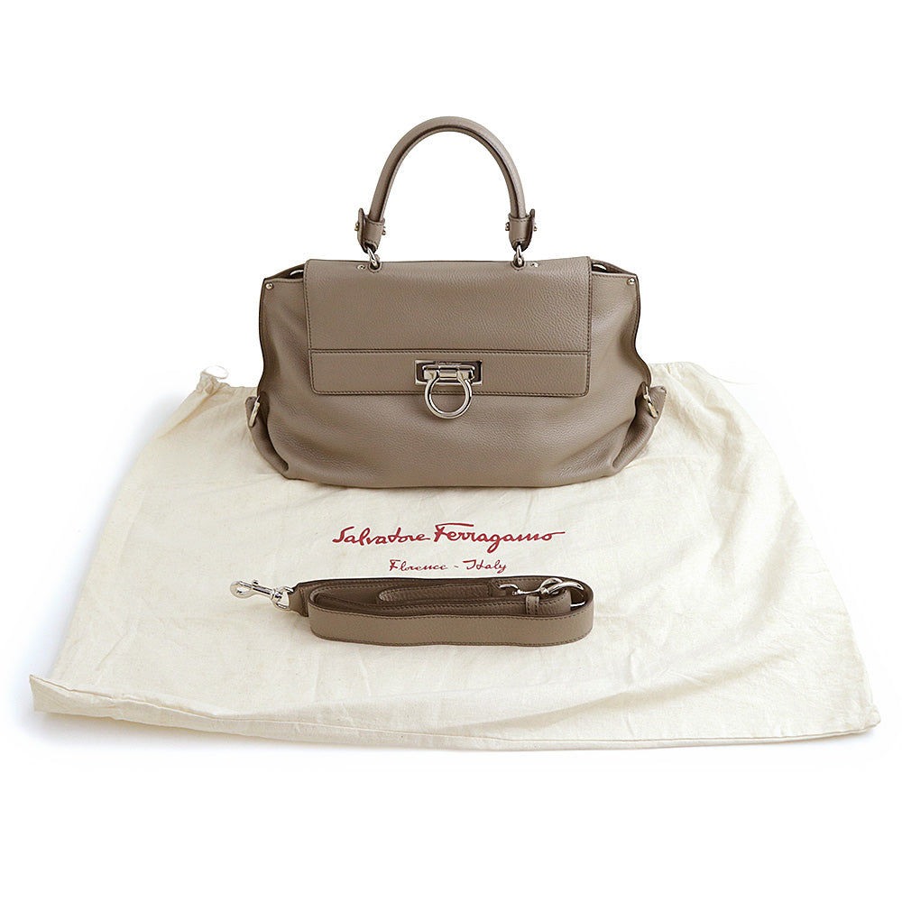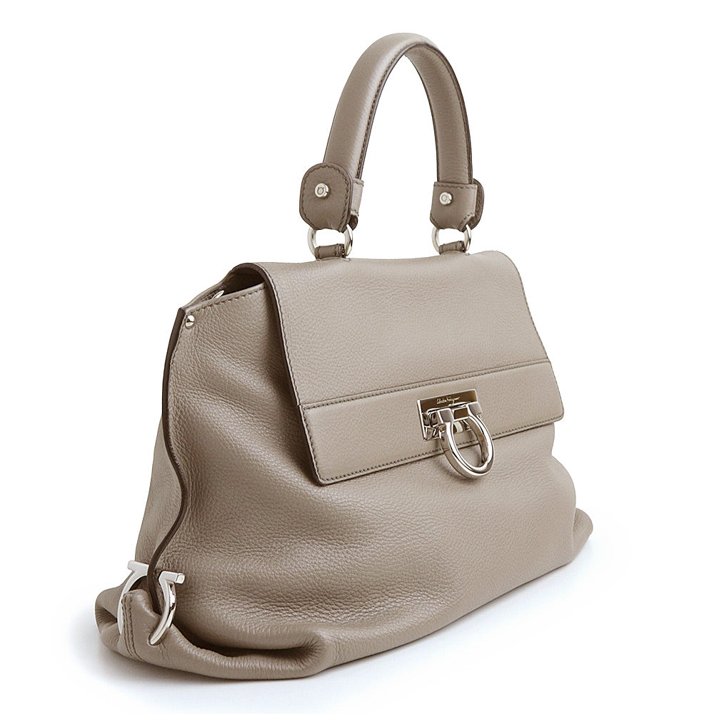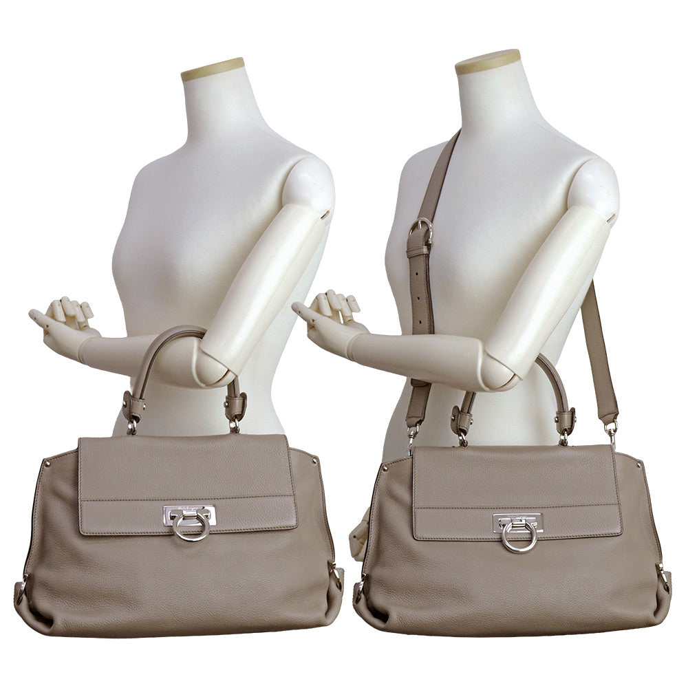 【未使用 展示品】サルヴァトーレフェラガモ Salvatore Ferragamo ソフィア 2way ショルダー ハンドバッグ 斜め掛け レザー グレー シルバー金具 BW-21